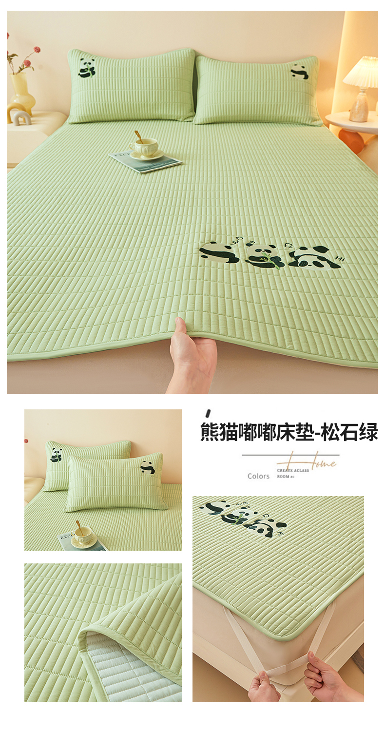 当前位置: 91家纺网 > 商品网购 > 床垫/床褥 > 普通床垫 > 2025春夏新款A类亲肤大豆床垫-刺绣系列 防水款熊猫嘟嘟床垫-松石绿