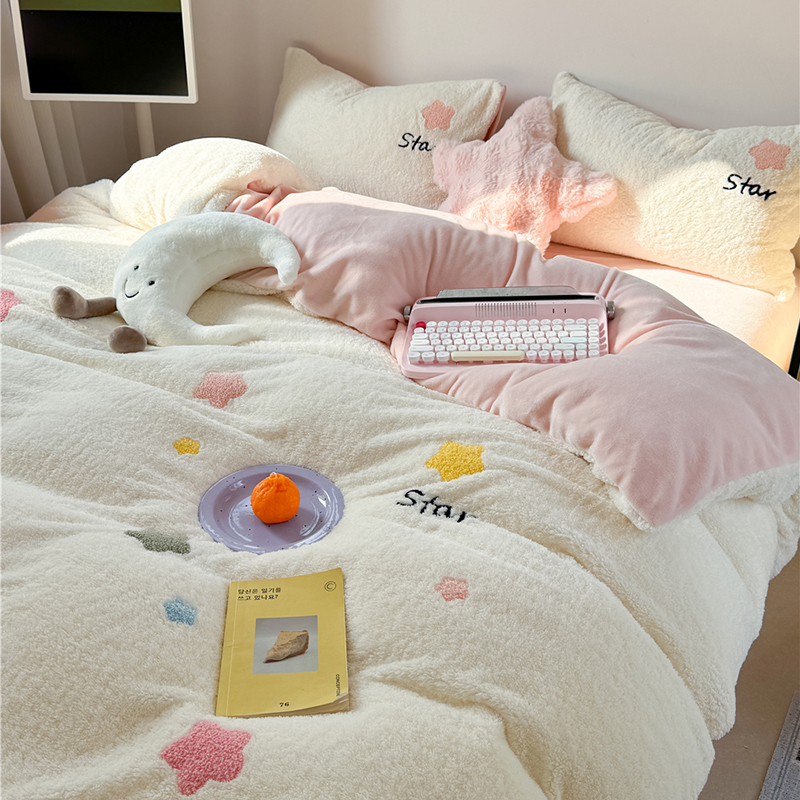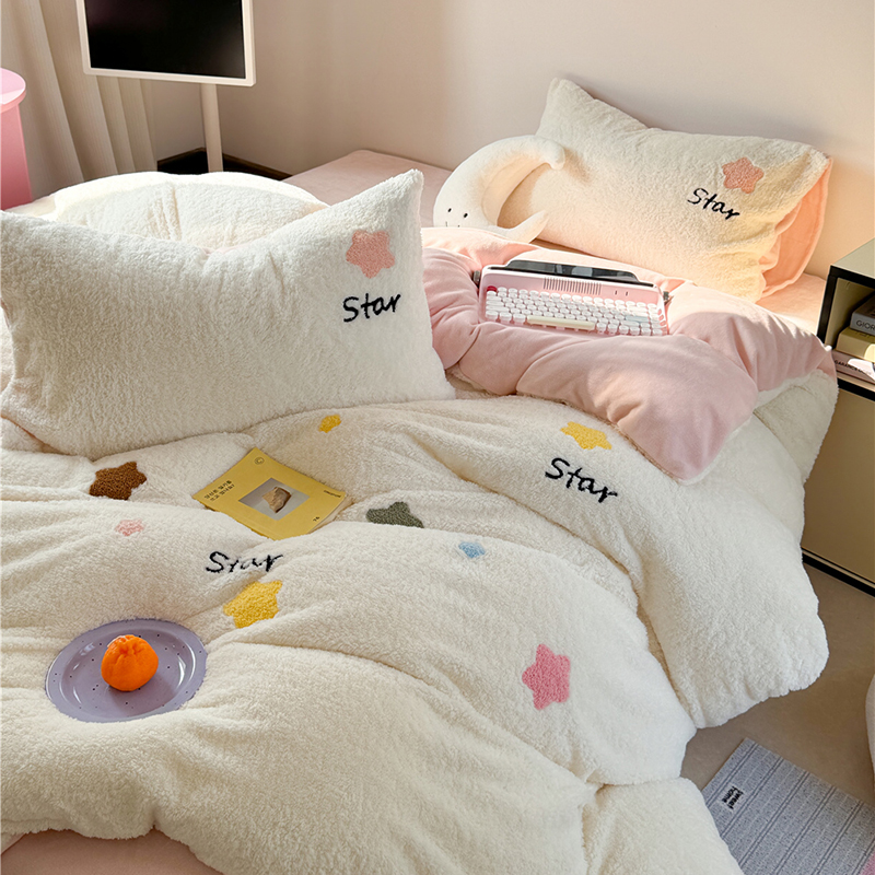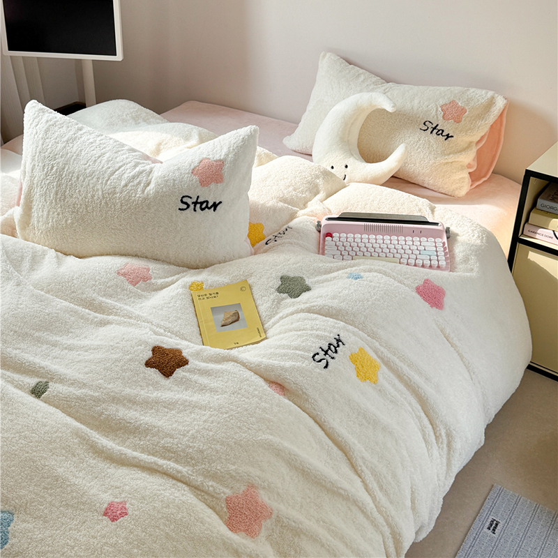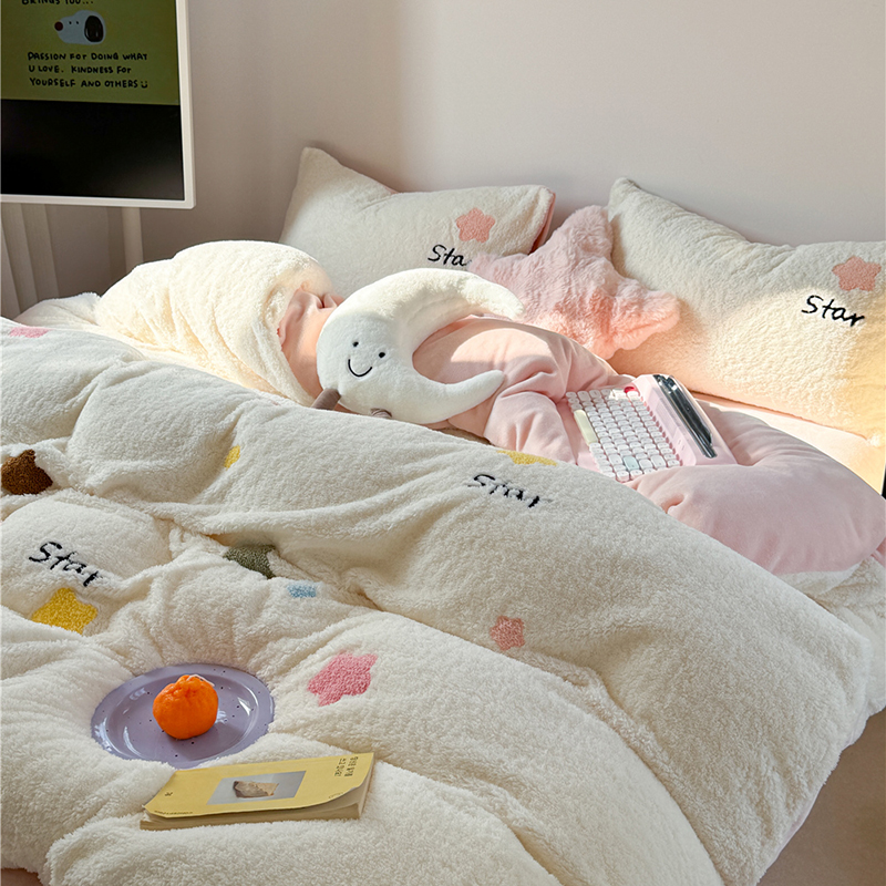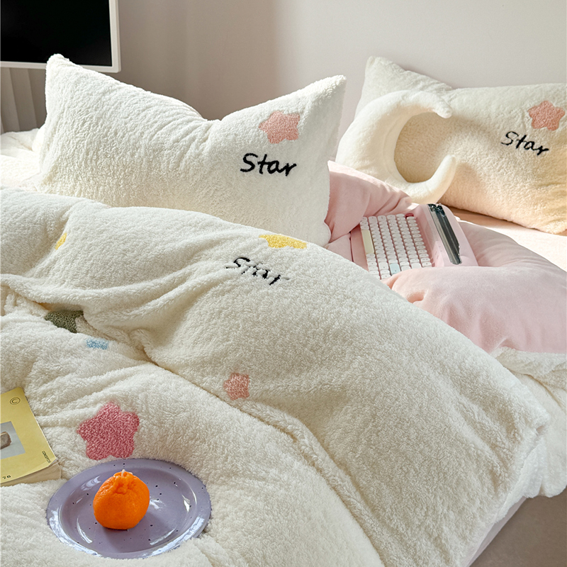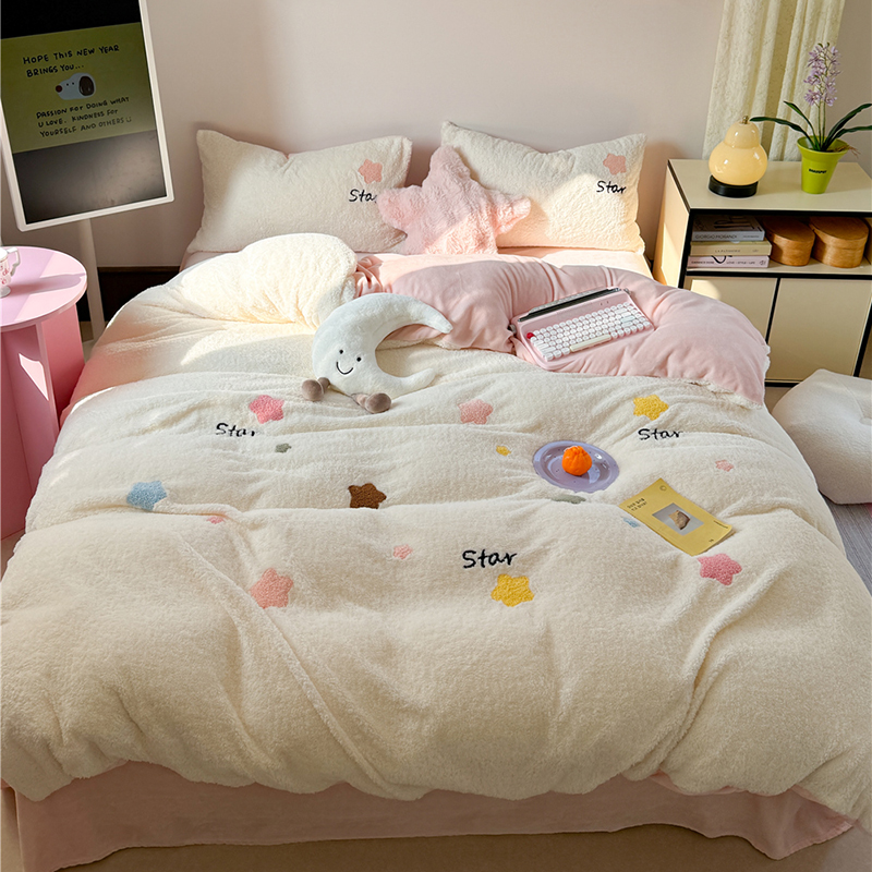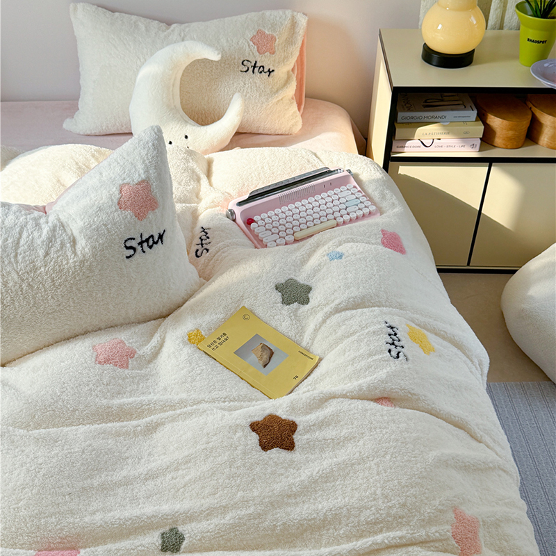 当前位置: 91家纺网 > 商品网购 > 床品套件 > 四件套 > 其它四件套 > 佰亿莱 2025新款泰迪绒蚂蚁绒刺绣四件套 五角星