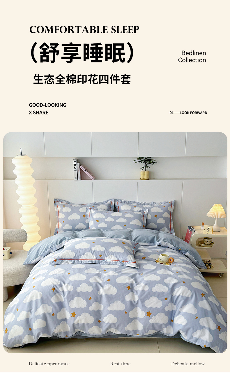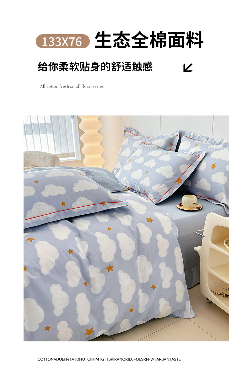 当前位置: 91家纺网 > 商品网购 > 床品套件 > 四件套 > 全棉普通四件套 > 2025新款133X76宽幅全棉纯棉印花系列四件套 踏浪-蓝