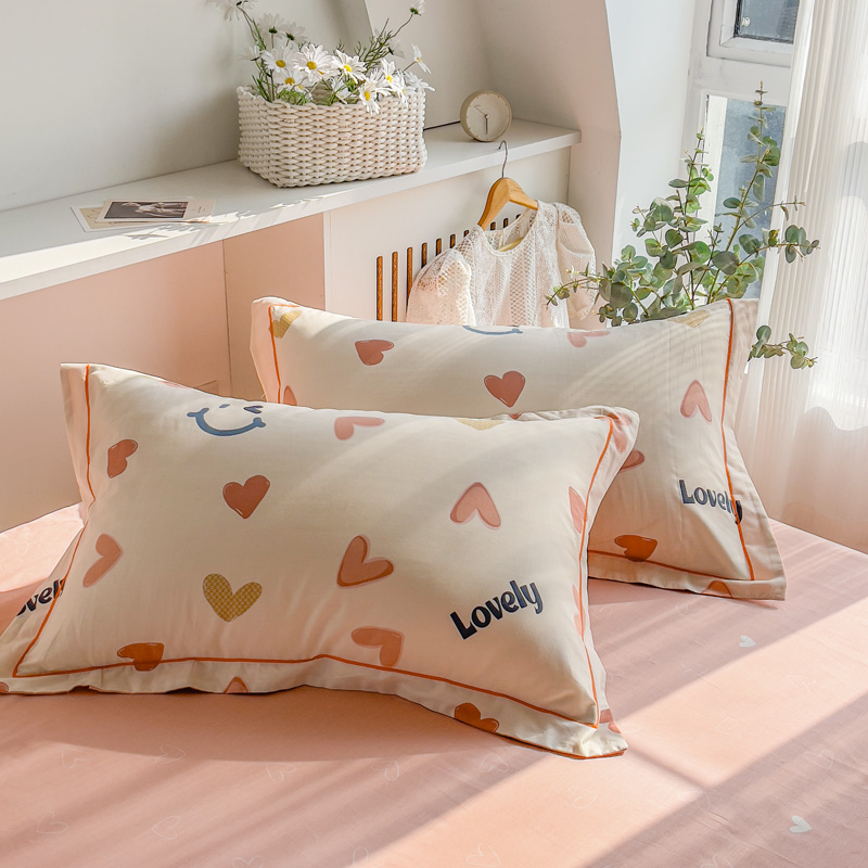 商品名称:2025新款13376宽幅全棉印花单枕套系列(有单品可定制) 初恋心语-粉