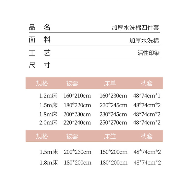 1.8m床笠款四件套 | ¥110.00 |