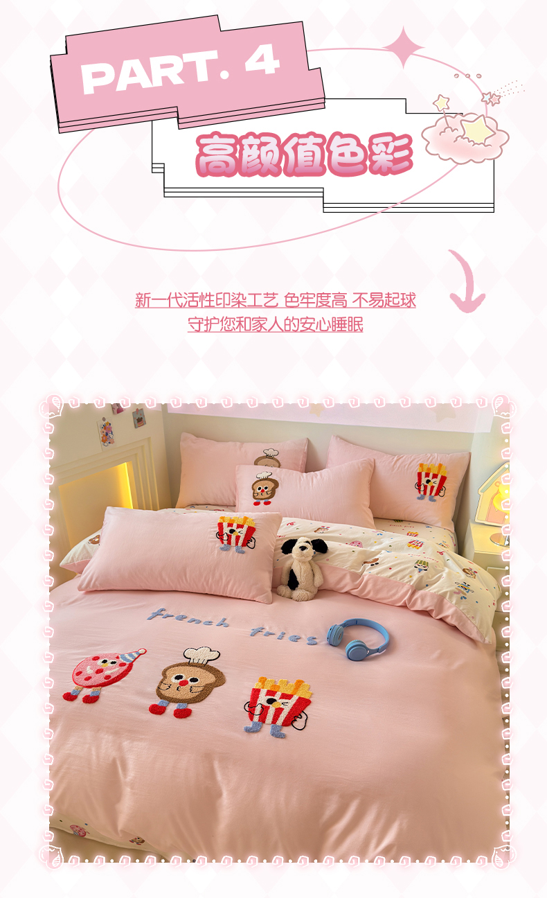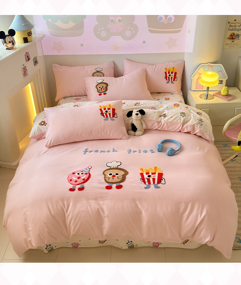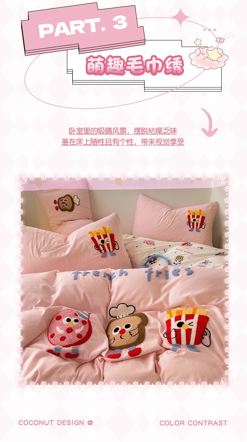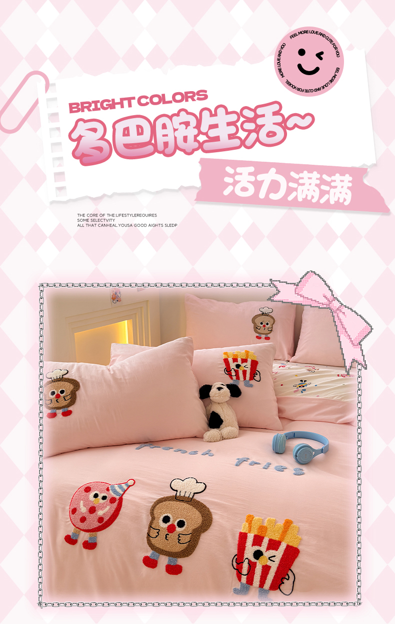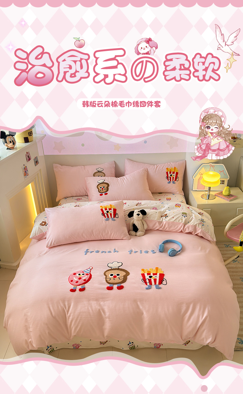 当前位置: 91家纺网 > 商品网购 > 床品套件 > 四件套 > 其它四件套 > 2025新款糯糯棉(110克)大版卡通毛巾绣四件套(提供买家绣)-场景二 多巴胺甜甜圈