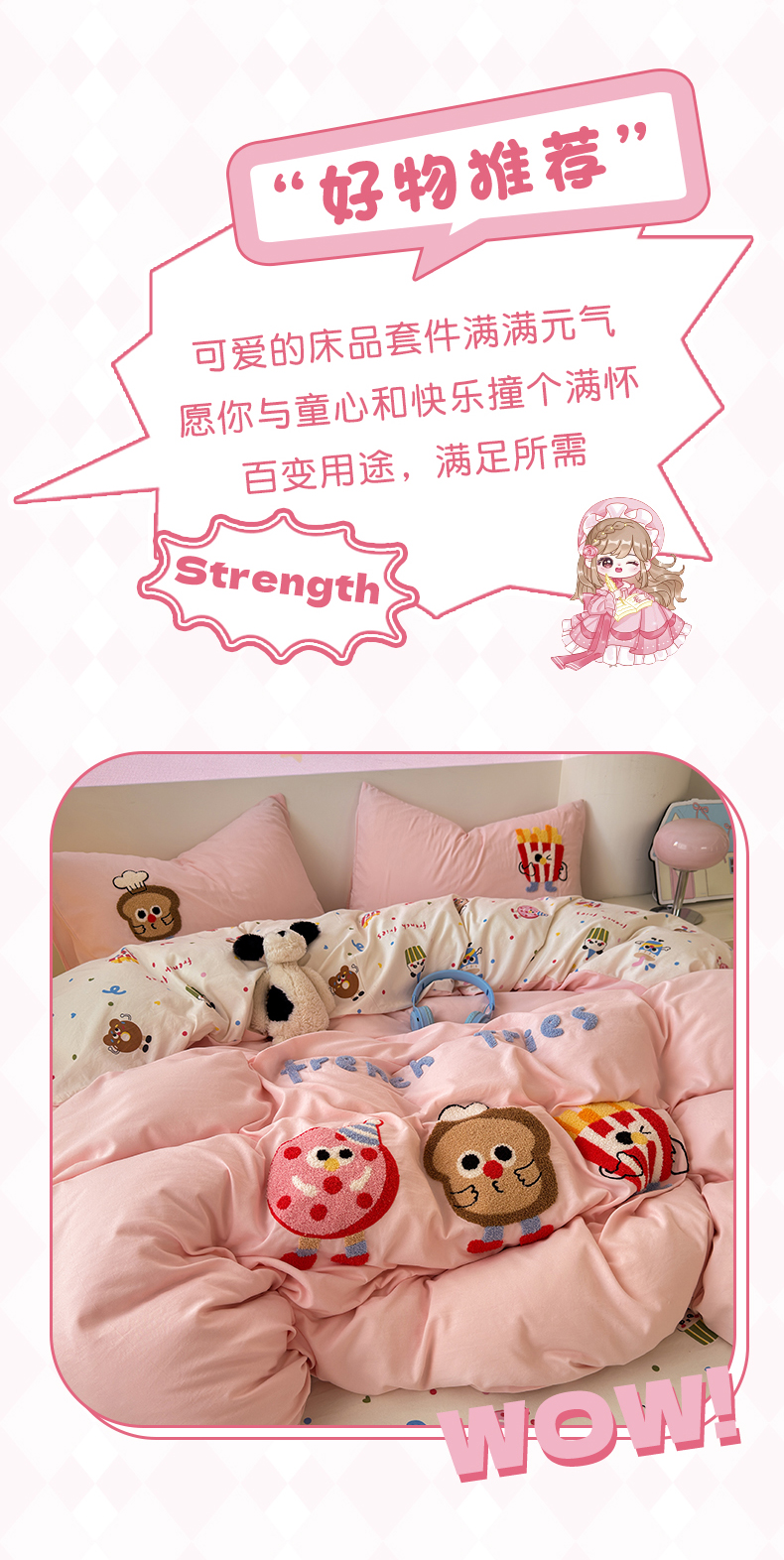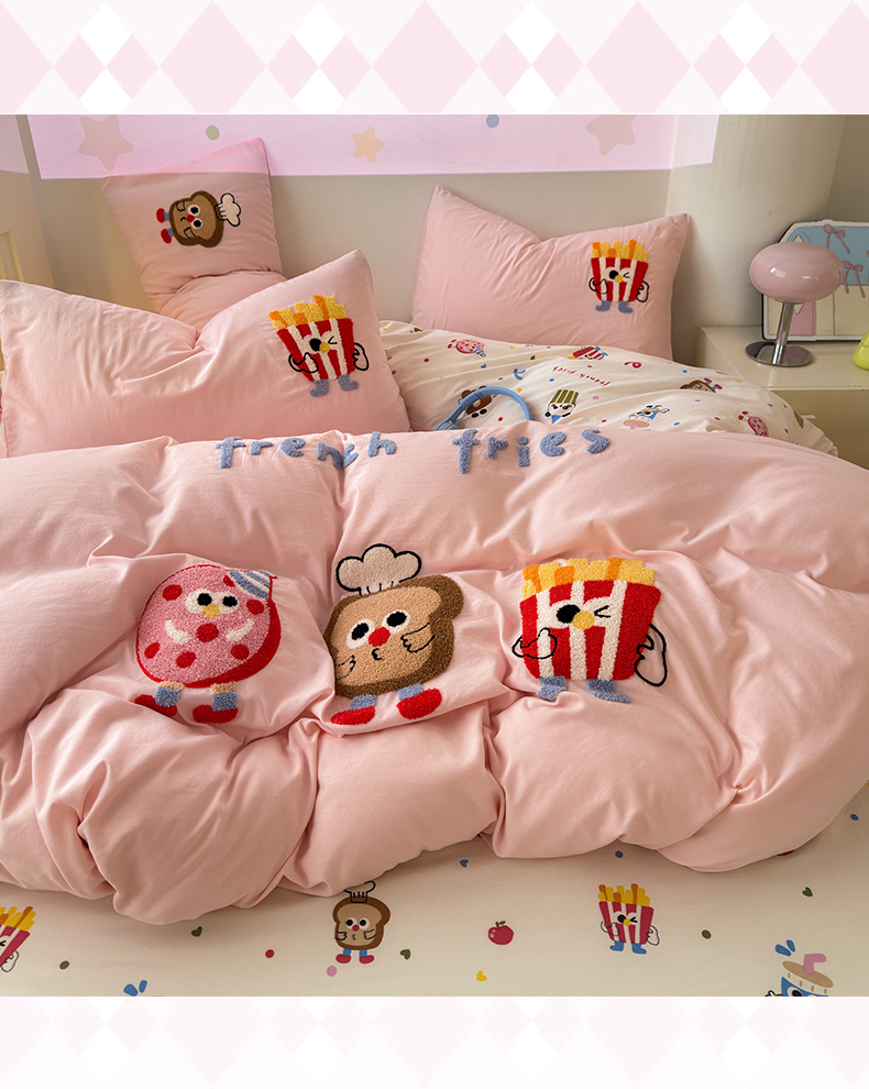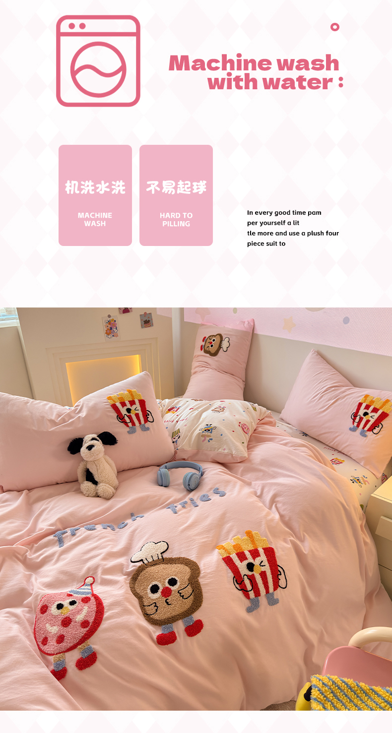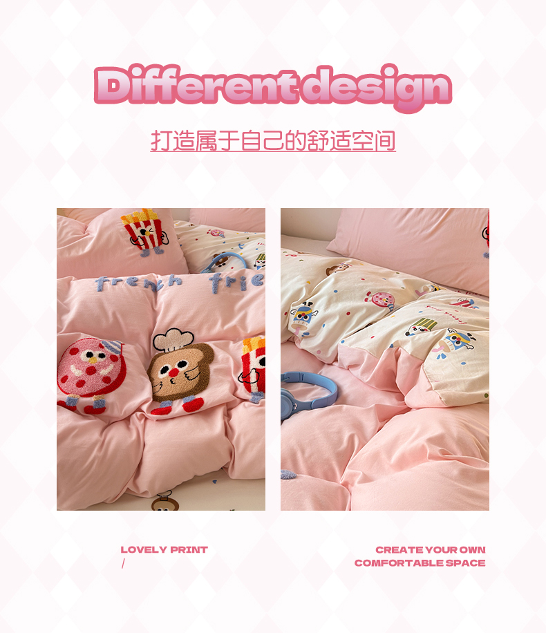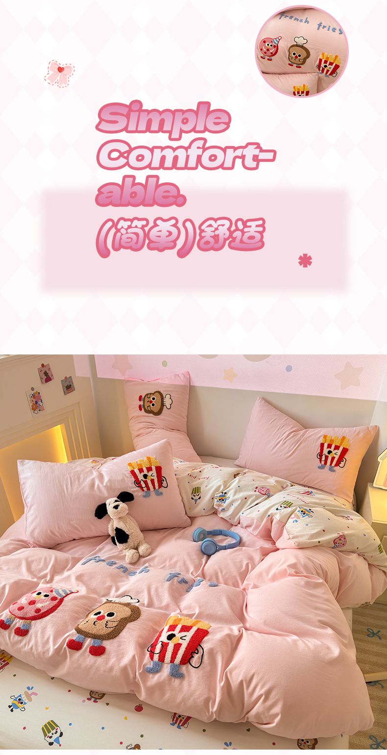 当前位置: 91家纺网 > 商品网购 > 床品套件 > 四件套 > 其它四件套 > 2025新款糯糯棉(110克)大版卡通毛巾绣四件套(提供买家绣)-场景二 多巴胺甜甜圈