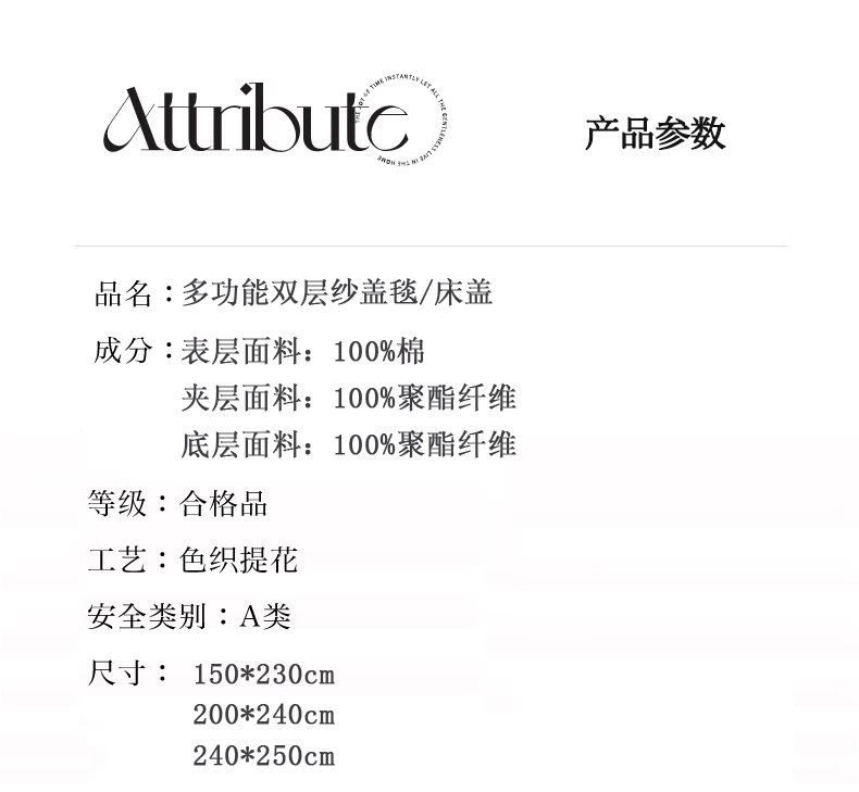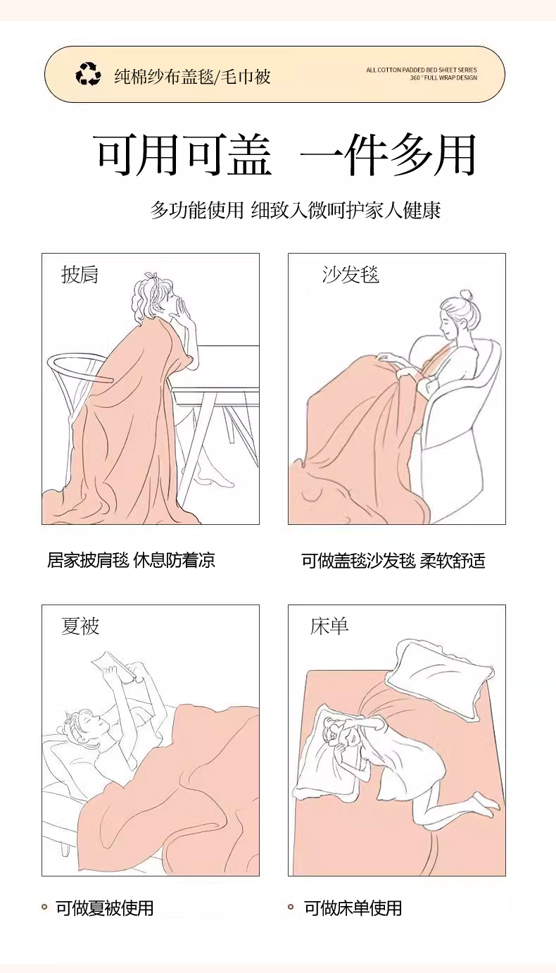 商品名称:(总)棠薇家纺 2025新款四季款加厚复合多功能双层纱盖毯床盖毯子沙发盖巾