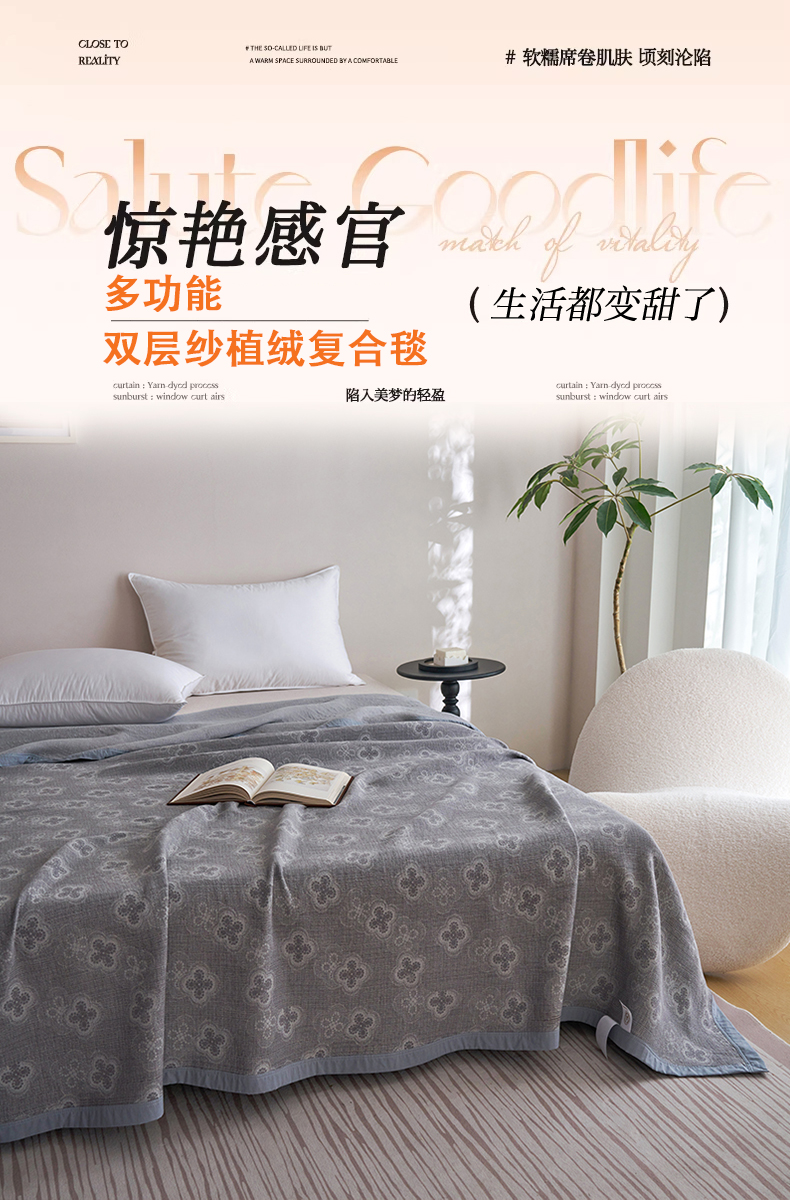 (总)棠薇家纺 2025新款四季款加厚复合多功能双层纱盖毯床盖毯子沙发盖巾