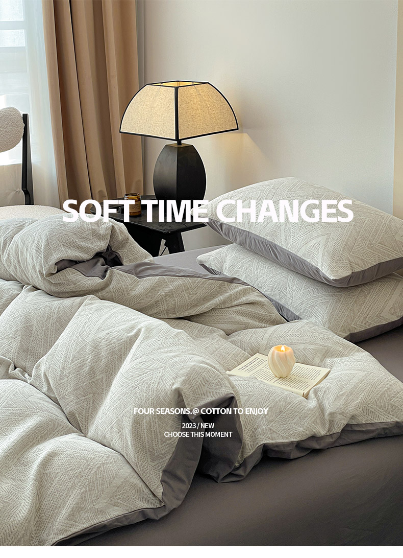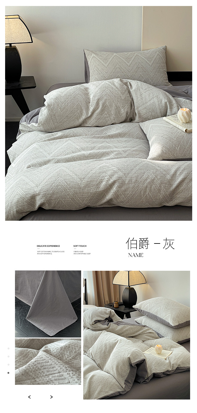 商品名称:ab家纺 2025新款全棉三层纱小提花四件套 伯爵-灰