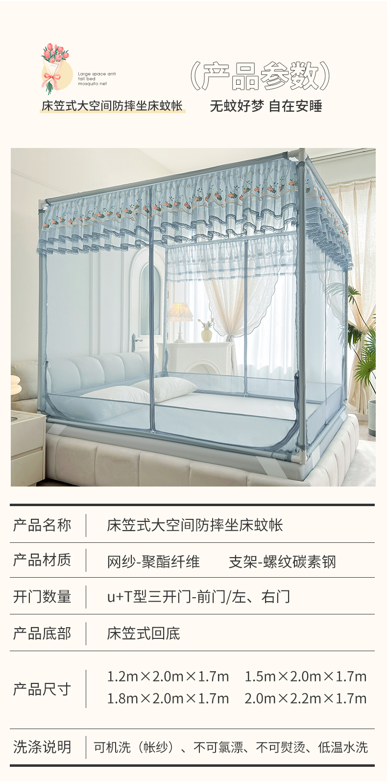 当前位置: 91家纺网 > 商品网购 > 床上用品 > 蚊帐 > 坐床式蚊帐 > 青竹苑 2025新款紫荆花床笠式坐床防摔蚊帐 浅杏色