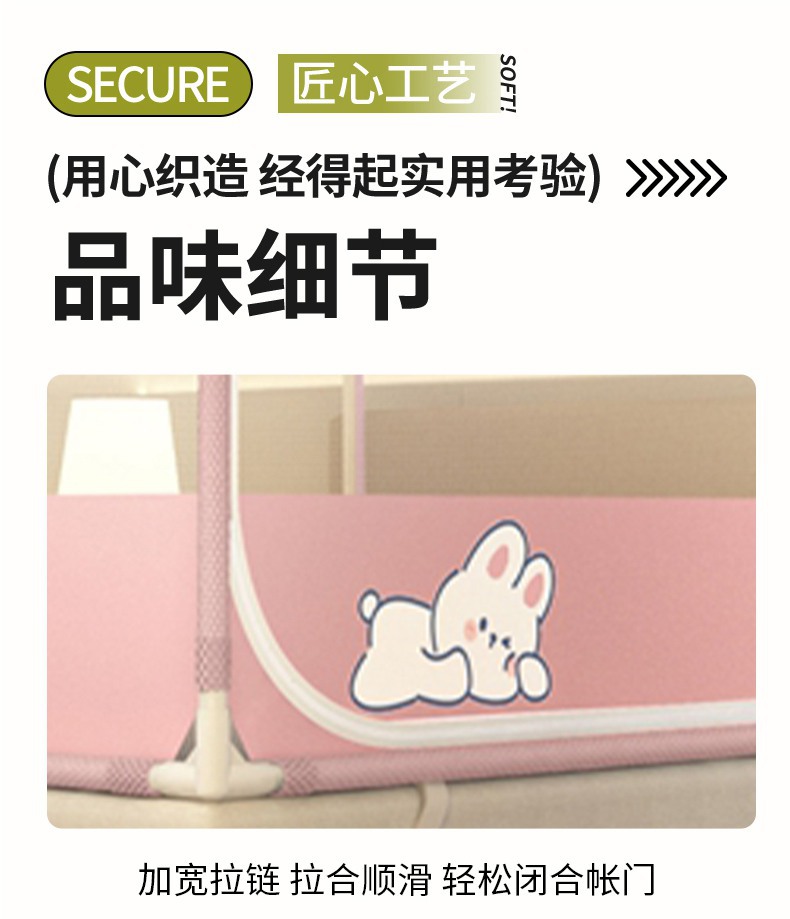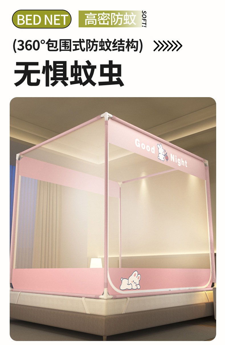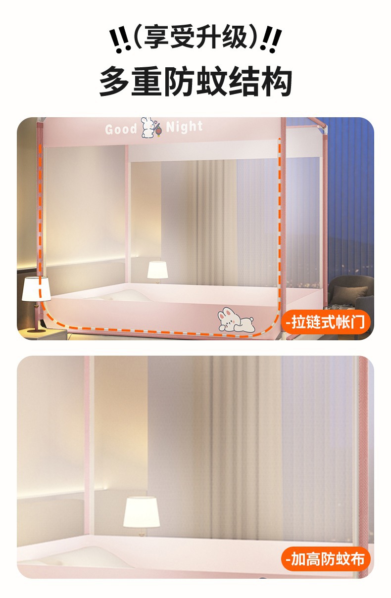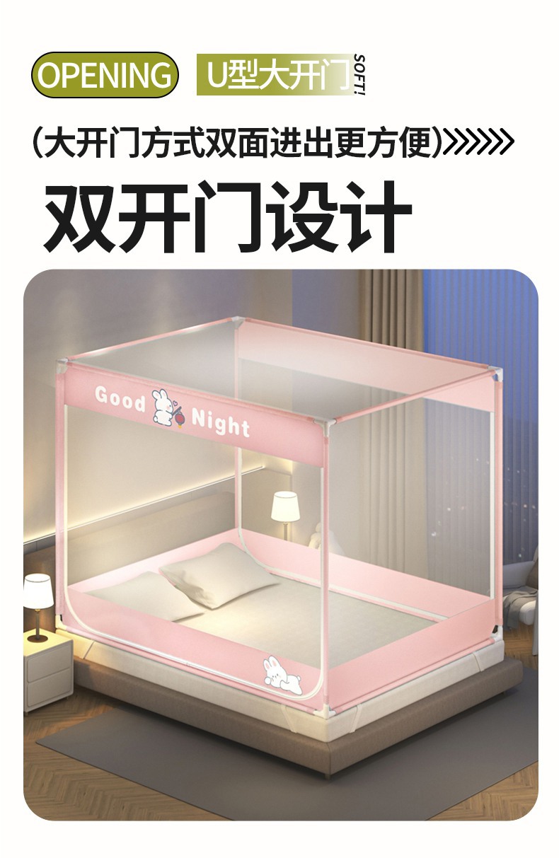 商品名称:青竹苑 2025新款双门全底外穿坐床式蚊帐儿童防摔防蚊拉链方帐 卡通-兔子粉