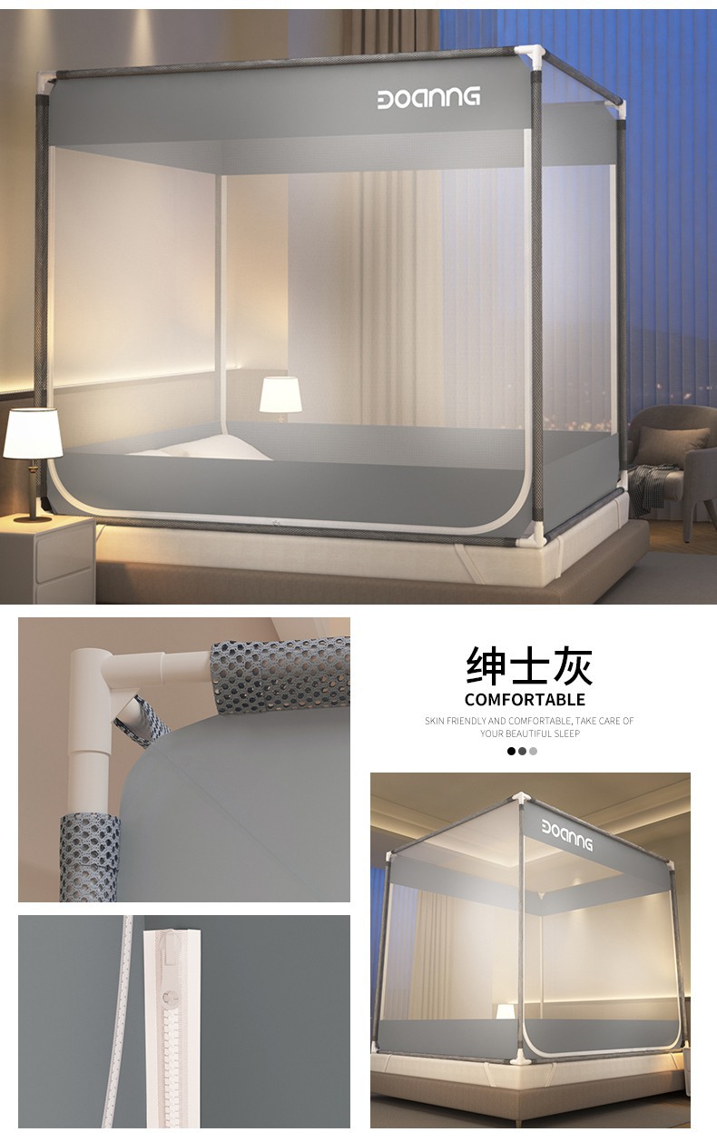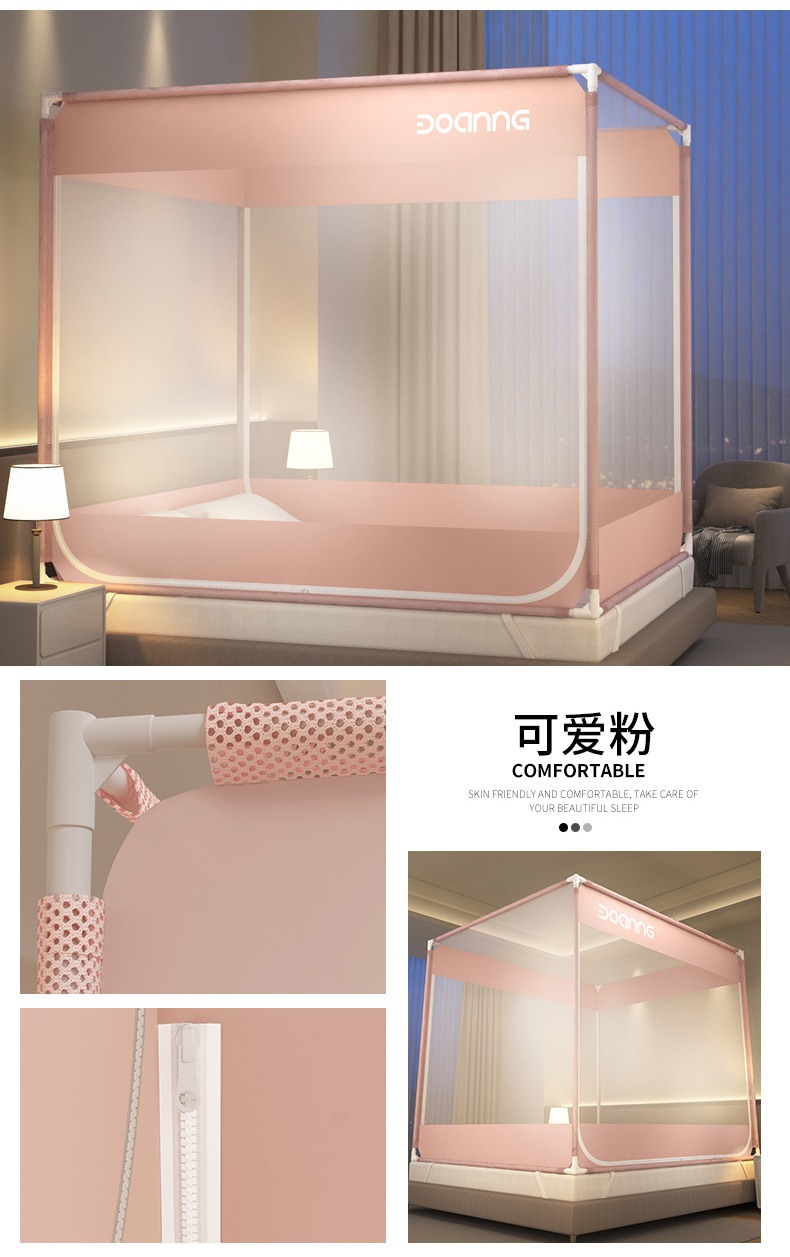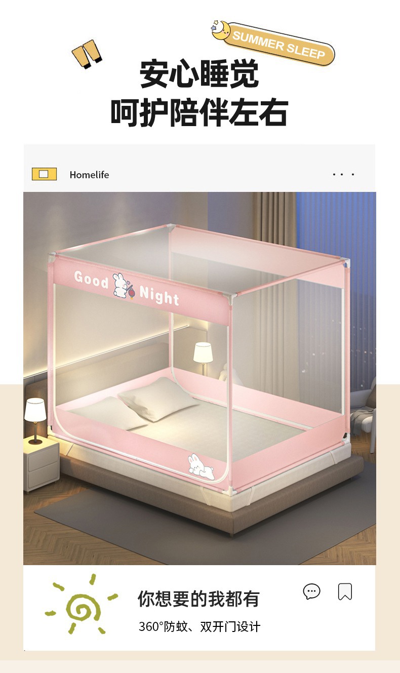 商品名称:青竹苑 2025新款双门全底外穿坐床式蚊帐儿童防摔防蚊拉链方帐 卡通-兔子粉