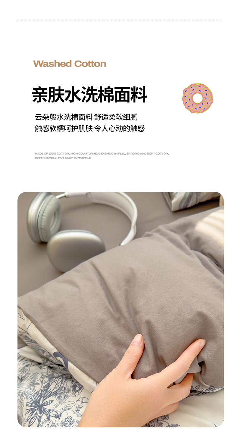 商品名称:宏源家纺 2025新款A类水洗云朵棉单被套 格罗伊