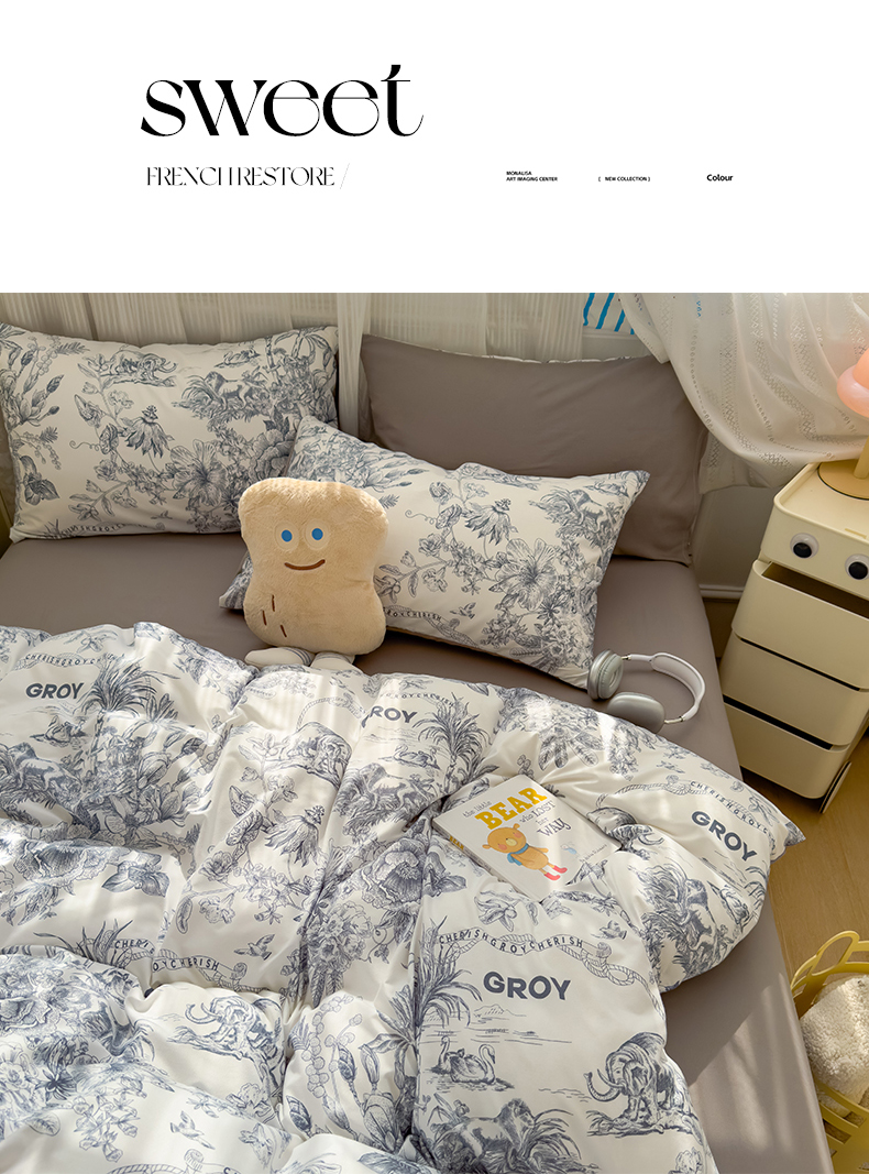 (总)宏源家纺 2025新款A类超柔有氧云感双层纱四件套,爱心咖,爱意浓,赫拉,花枝兔,猫咪恋人,秘密花园,摩卡,奇妙小熊灰,奇妙小熊米,小猫时光蓝,小美冰激凌,玉花园