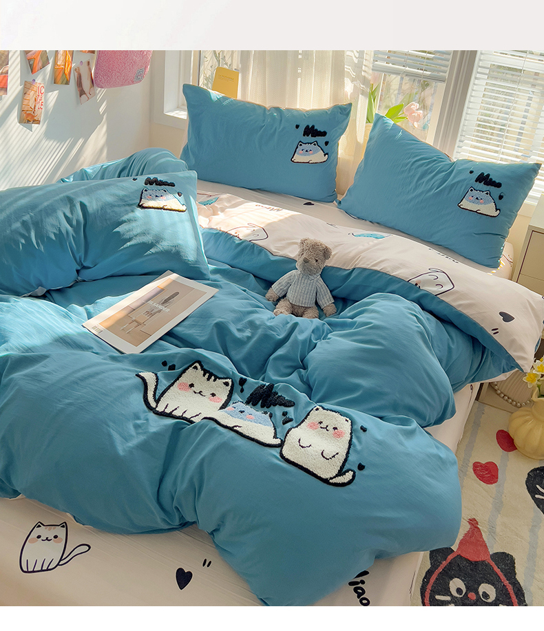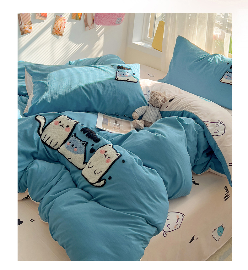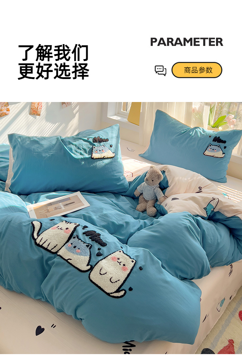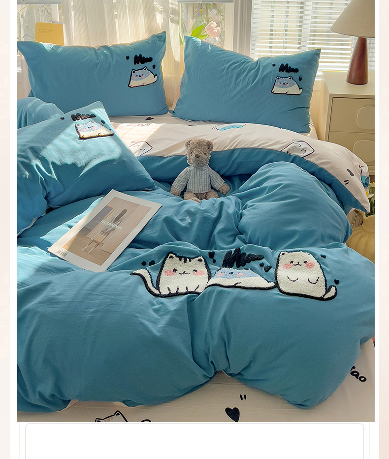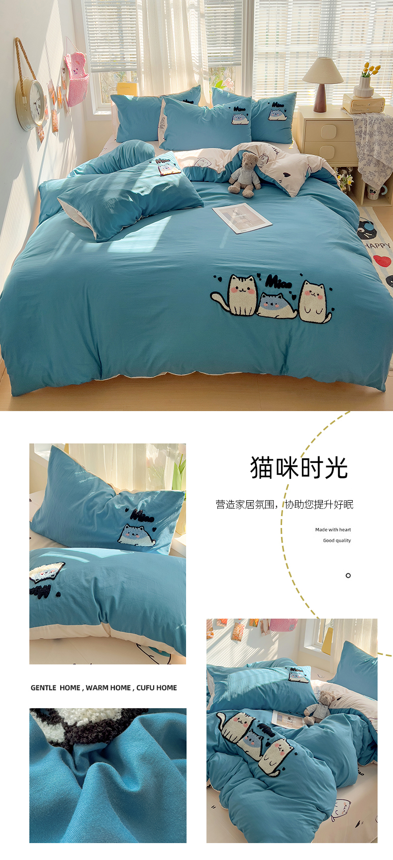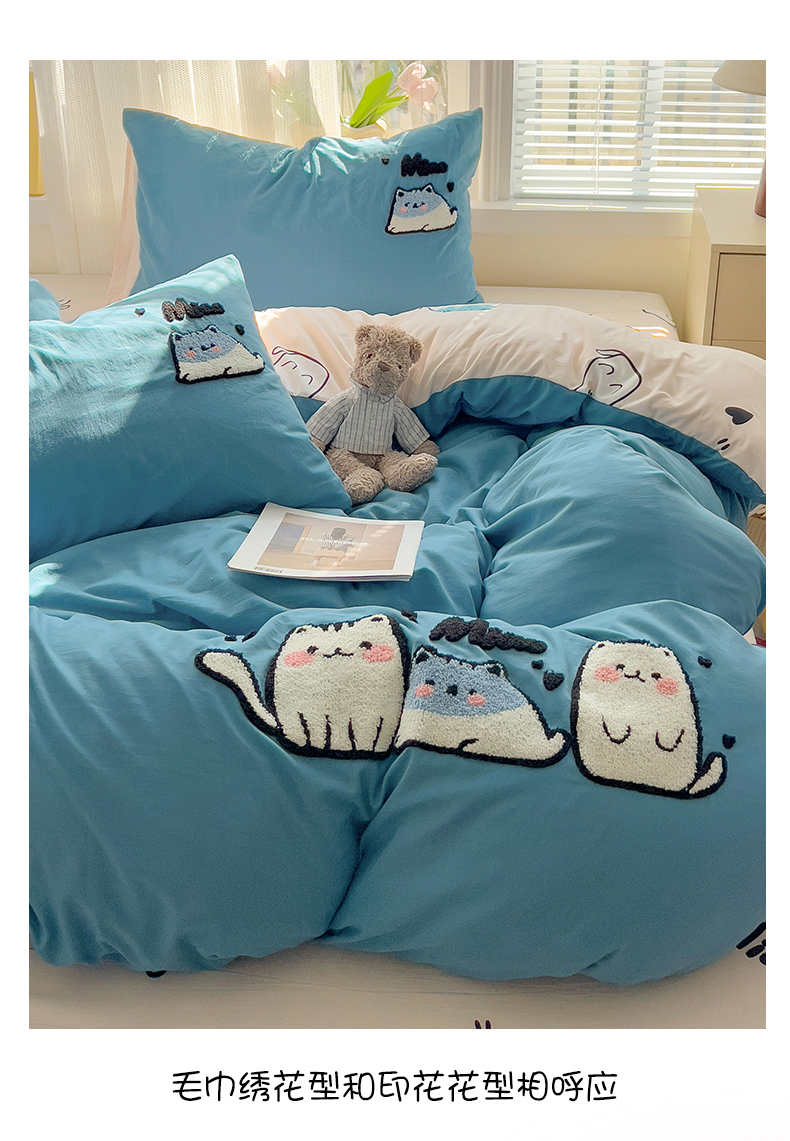 当前位置: 91家纺网 > 商品网购 > 床品套件 > 四件套 > 水洗棉四件套 > 凯洛奇 2025新款1卡通水洗棉印+绣毛巾绣四件套 猫咪时光