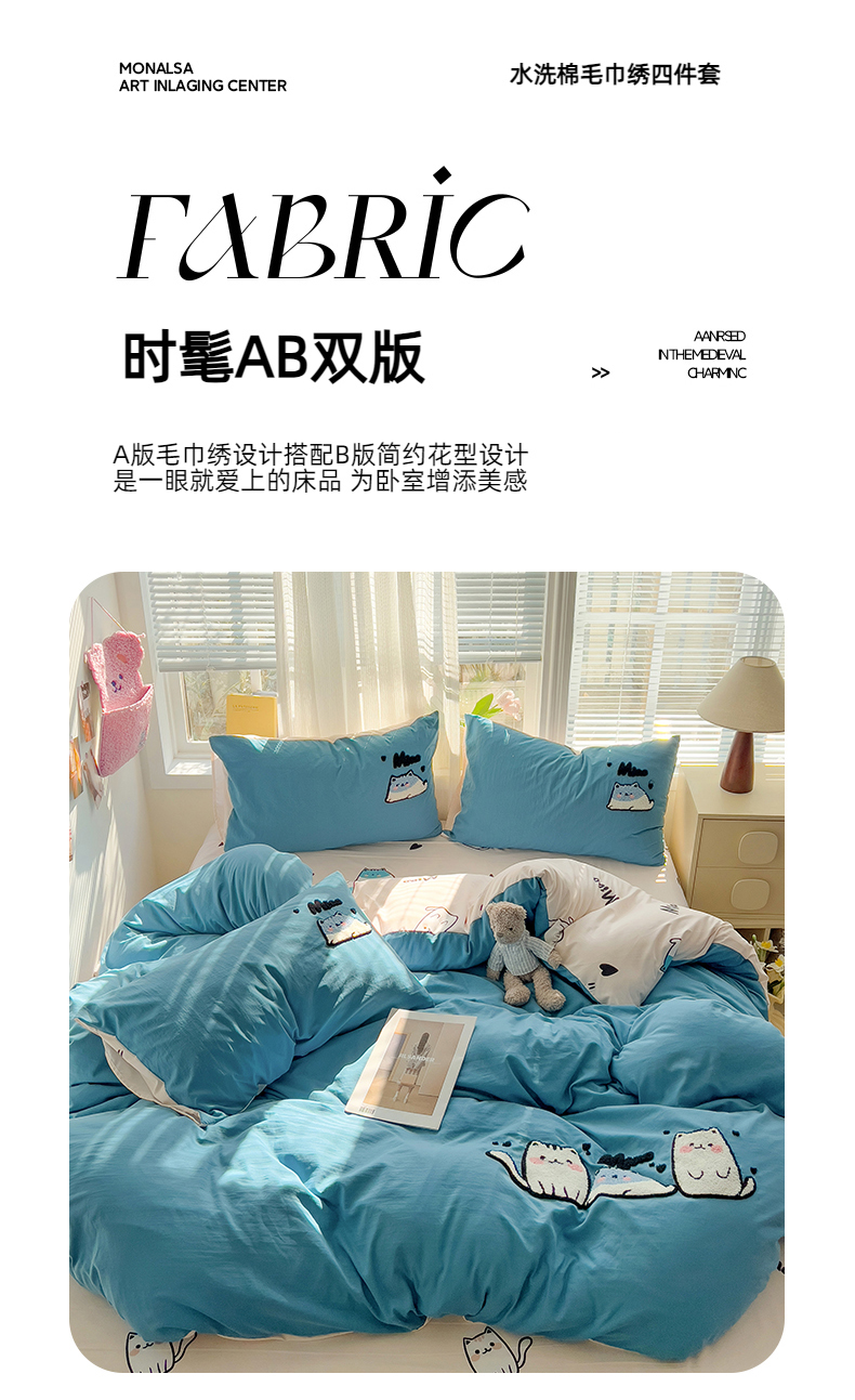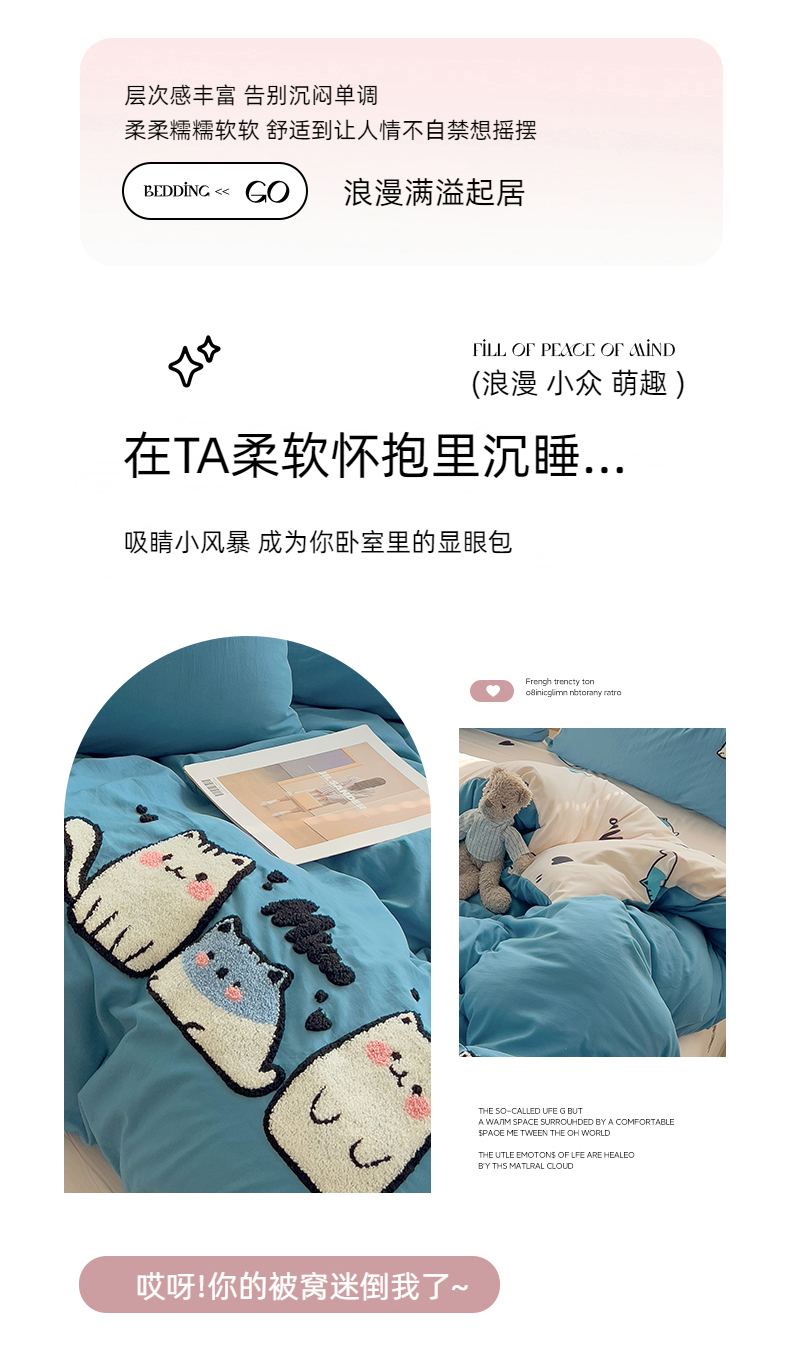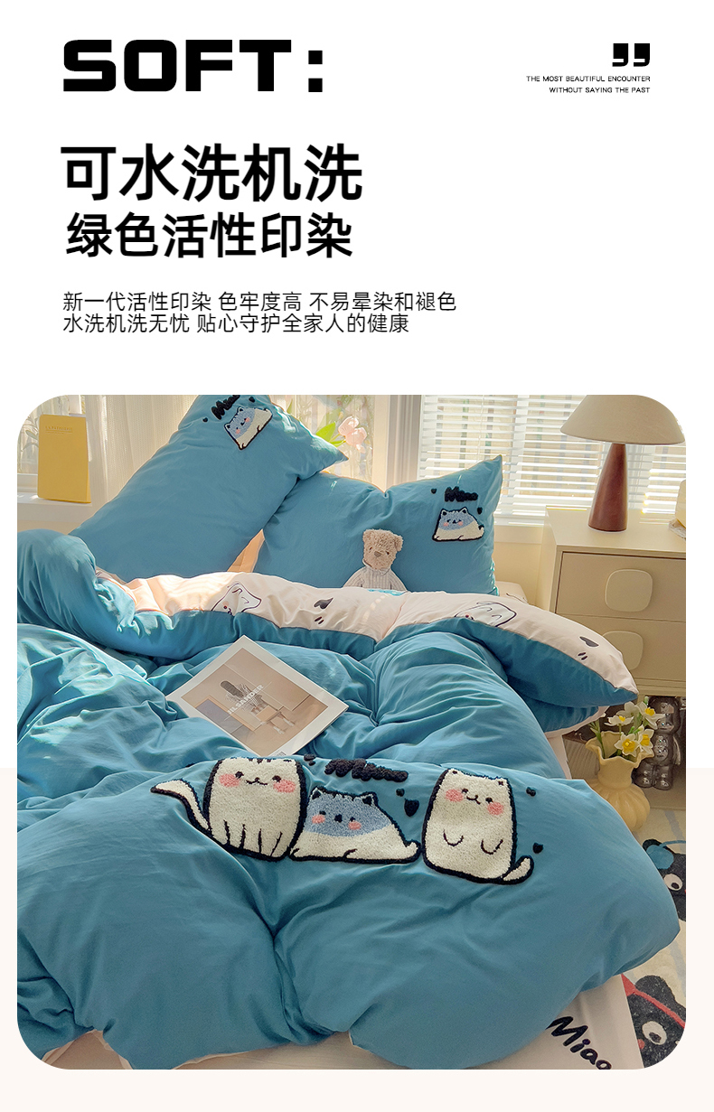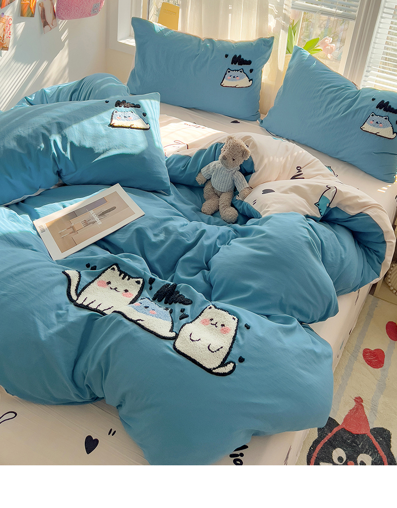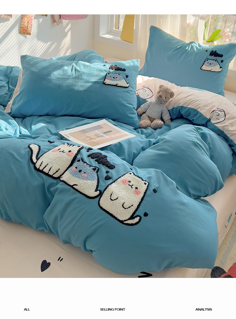 当前位置: 91家纺网 > 商品网购 > 床品套件 > 四件套 > 水洗棉四件套 > 凯洛奇 2025新款1卡通水洗棉印+绣毛巾绣四件套 猫咪时光