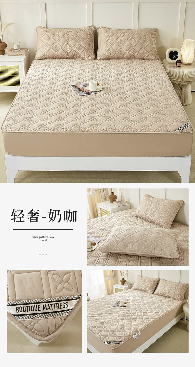 商品名称:买家秀不断货A类母婴级13372斜纹纯棉夹棉床笠三件套全棉床笠三件套纯色全棉床笠纯棉纯色床笠三件套 轻奢-奶咖