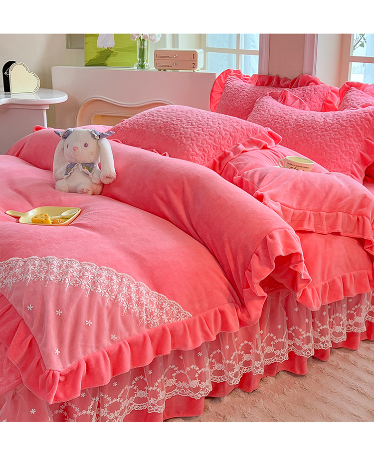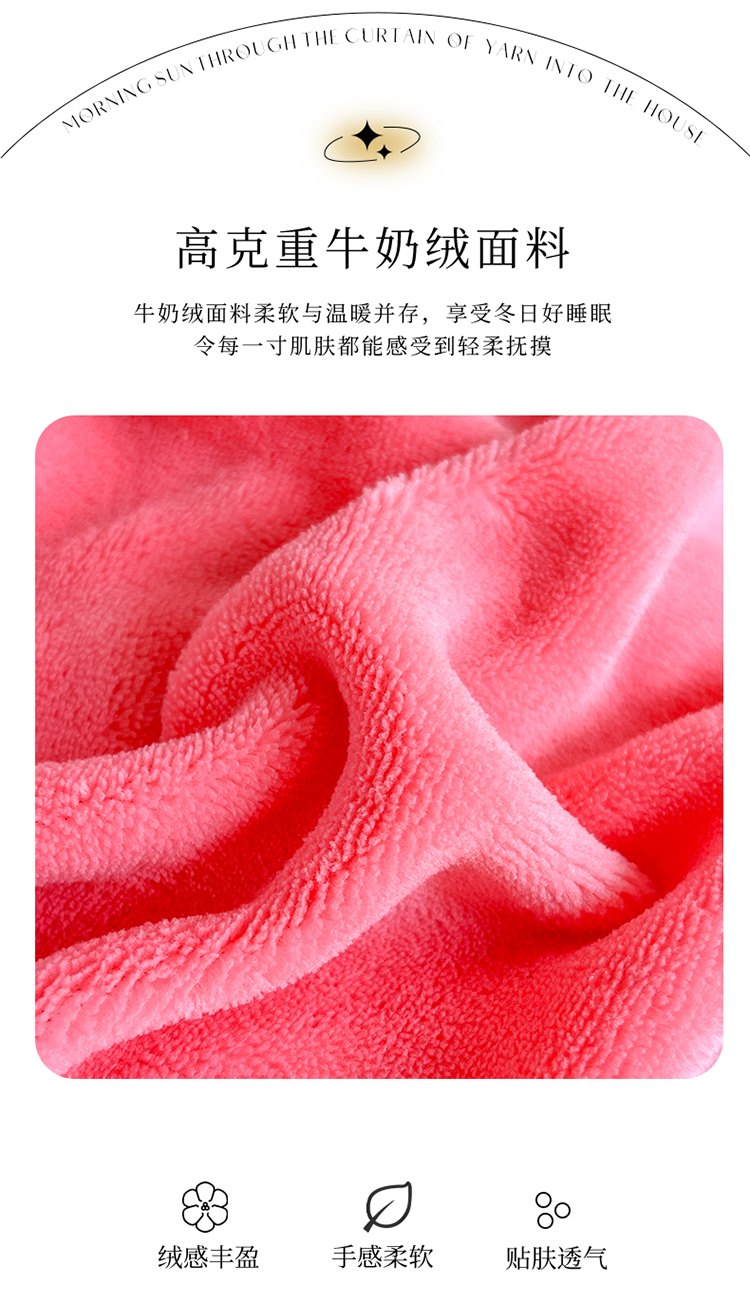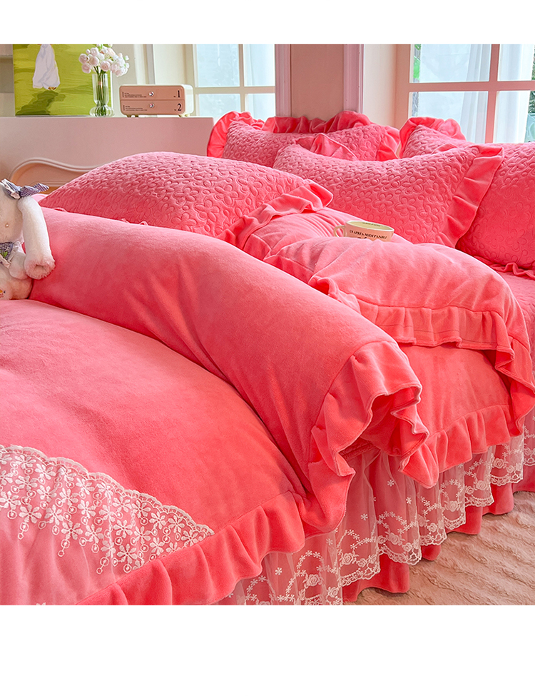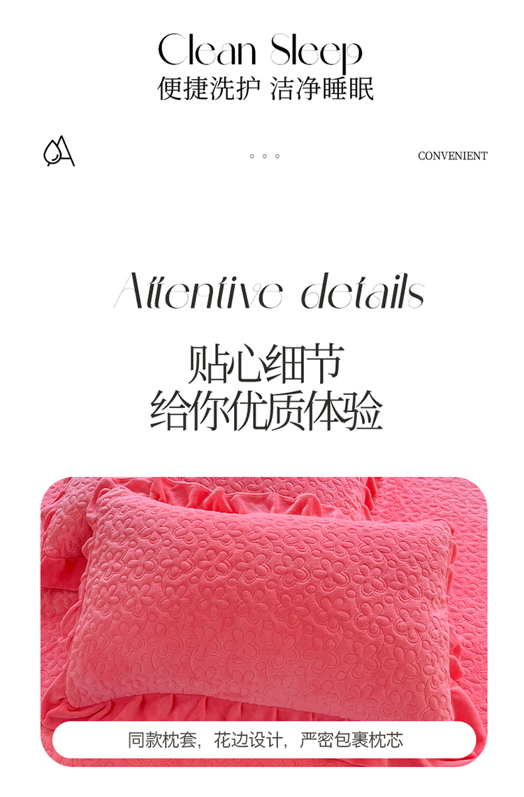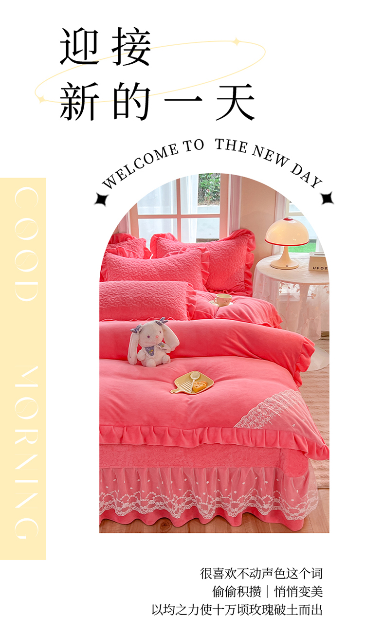 商品名称:2025秋冬新款220g全消光牛奶绒床盖四件套12斤重加厚婴儿绒法莱绒床裙款床盖款四件套 浪漫花语—豆沙红