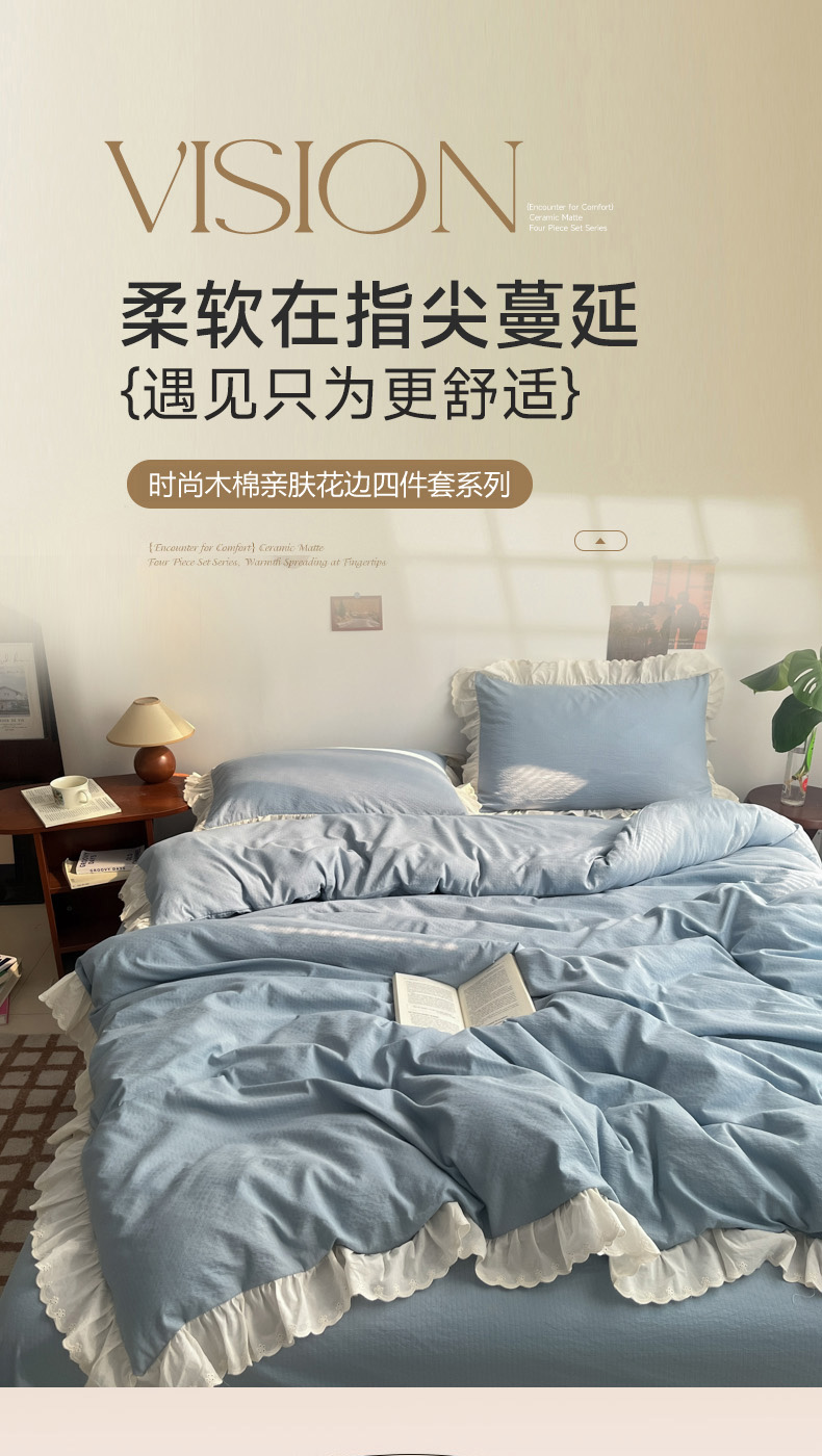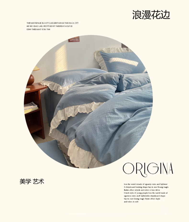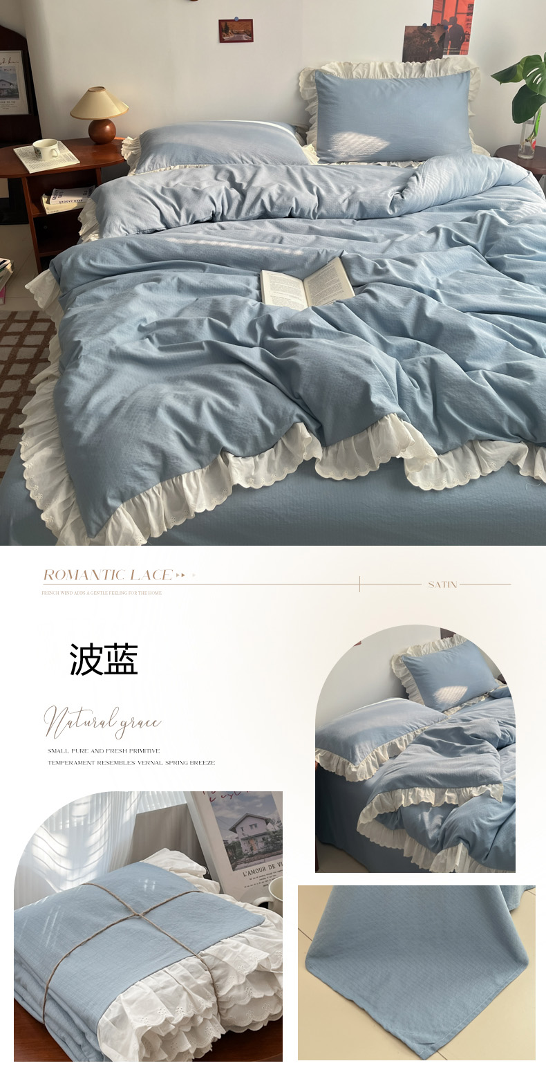 慕澄家纺 2025新款中古风法式蕾丝复古四件套 波蓝