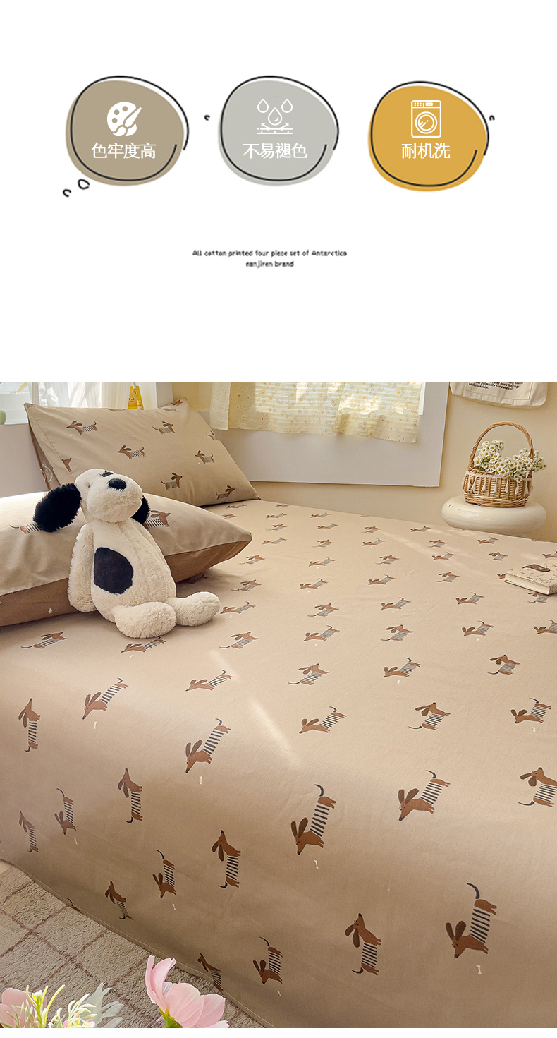 • 91家纺网 家纺一手货源 找家纺 名兮家居 2025新款13372全棉印花四件套单品系列-单床单 弹簧狗