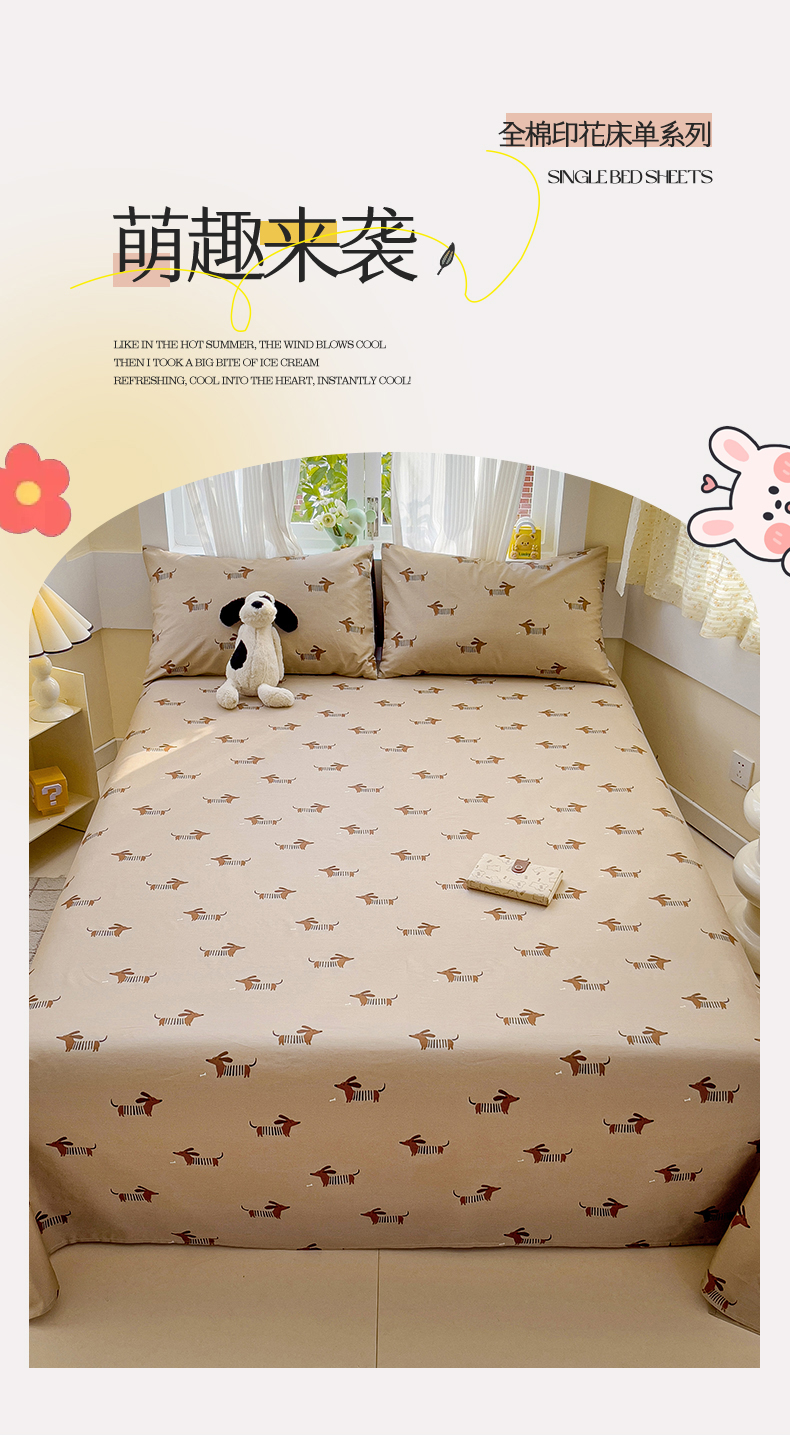 名兮家居 2025新款13372全棉印花四件套单品系列-单床单 弹簧狗
