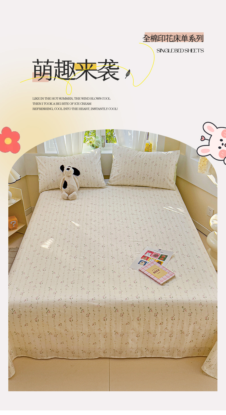 名兮家居 2025新款13372全棉印花四件套单品系列-单床单 栀子花