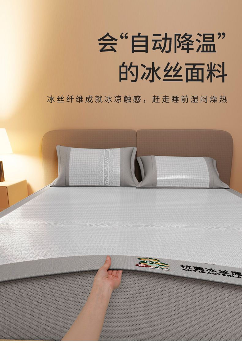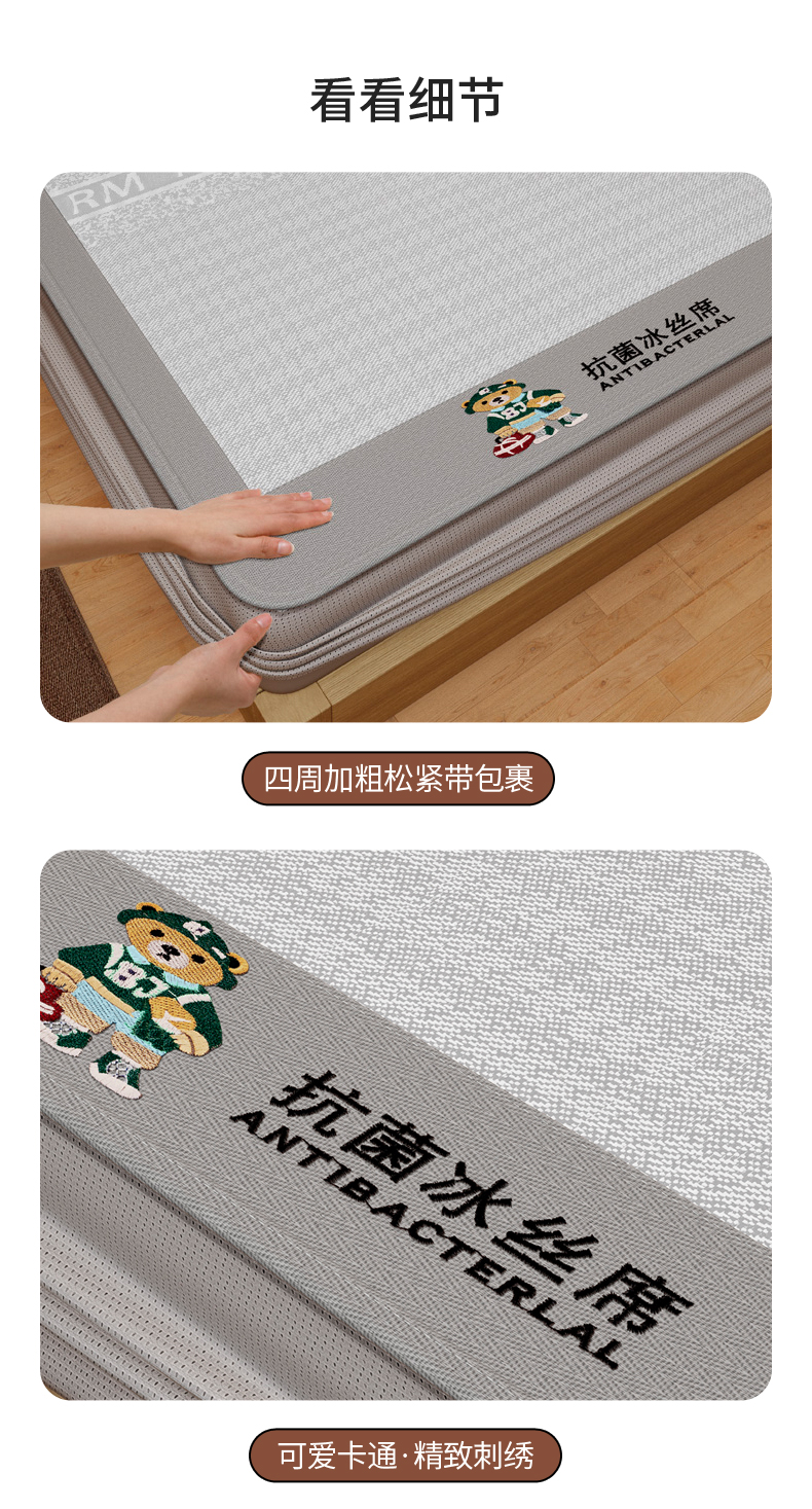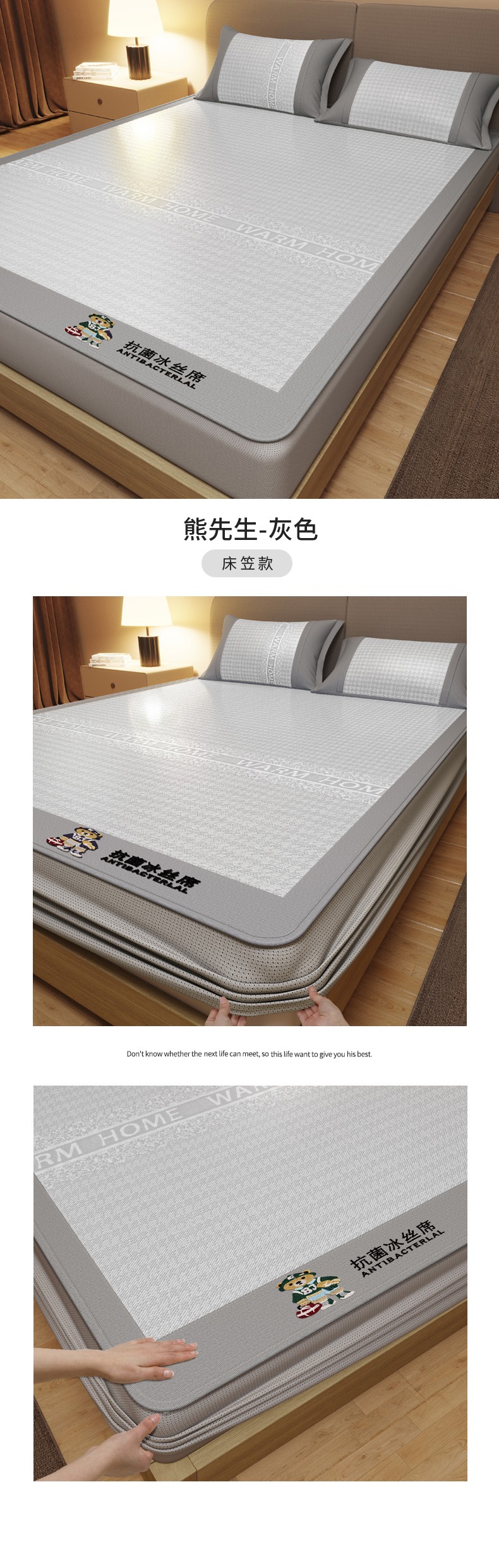 商品名称:阿牛席业 2025新款熊先生凉感冰丝系列凉席 熊先生-灰床笠款