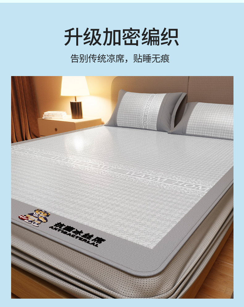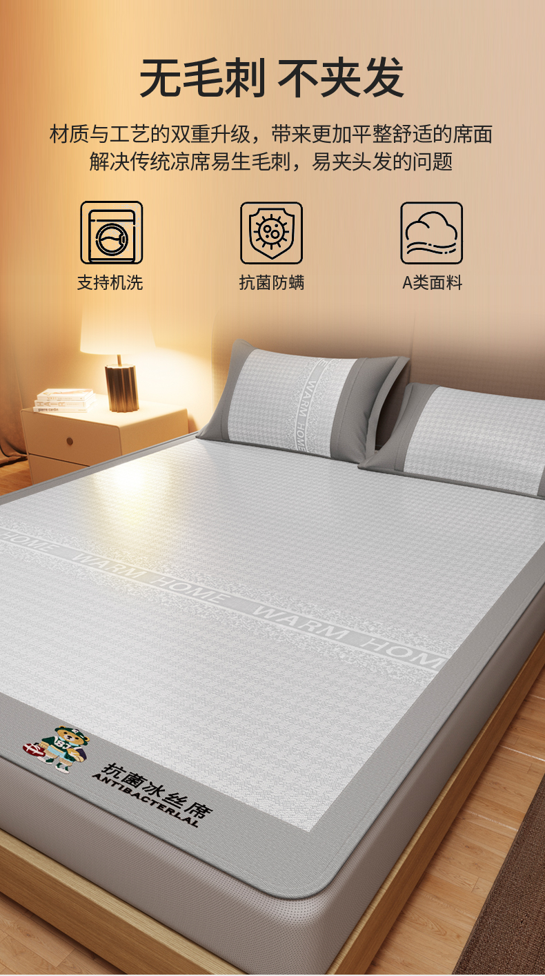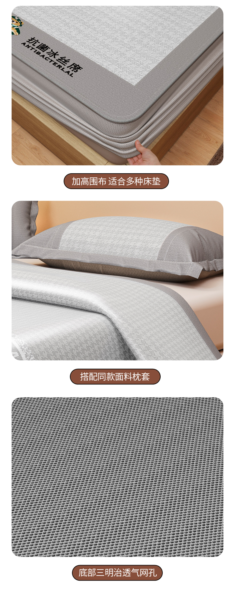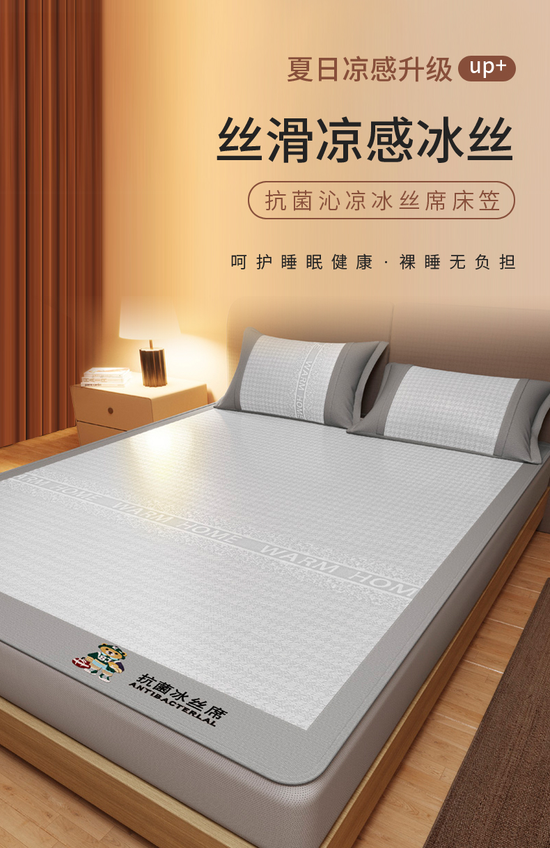 商品名称:阿牛席业 2025新款熊先生凉感冰丝系列凉席 熊先生-灰床笠款