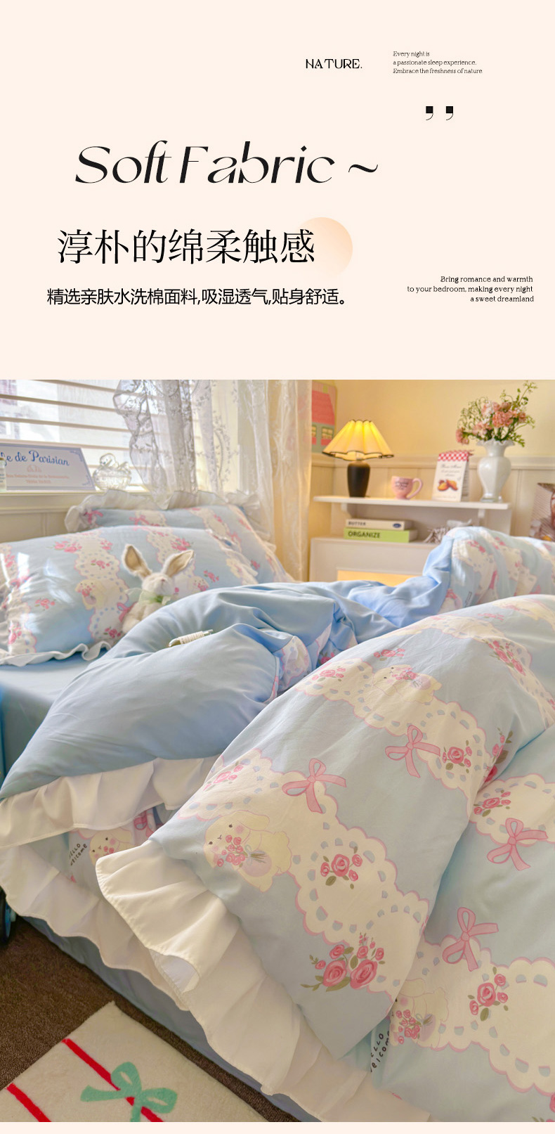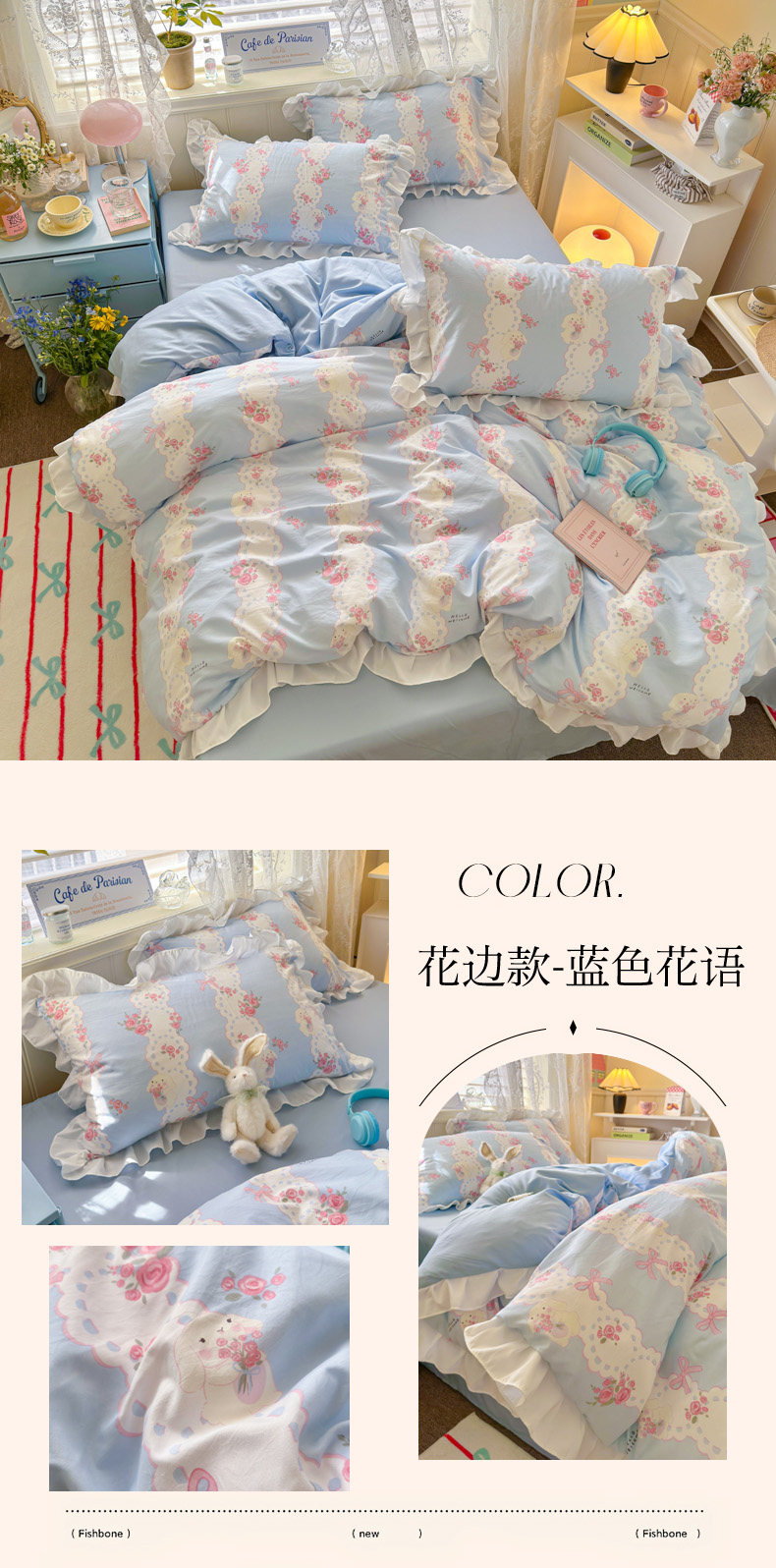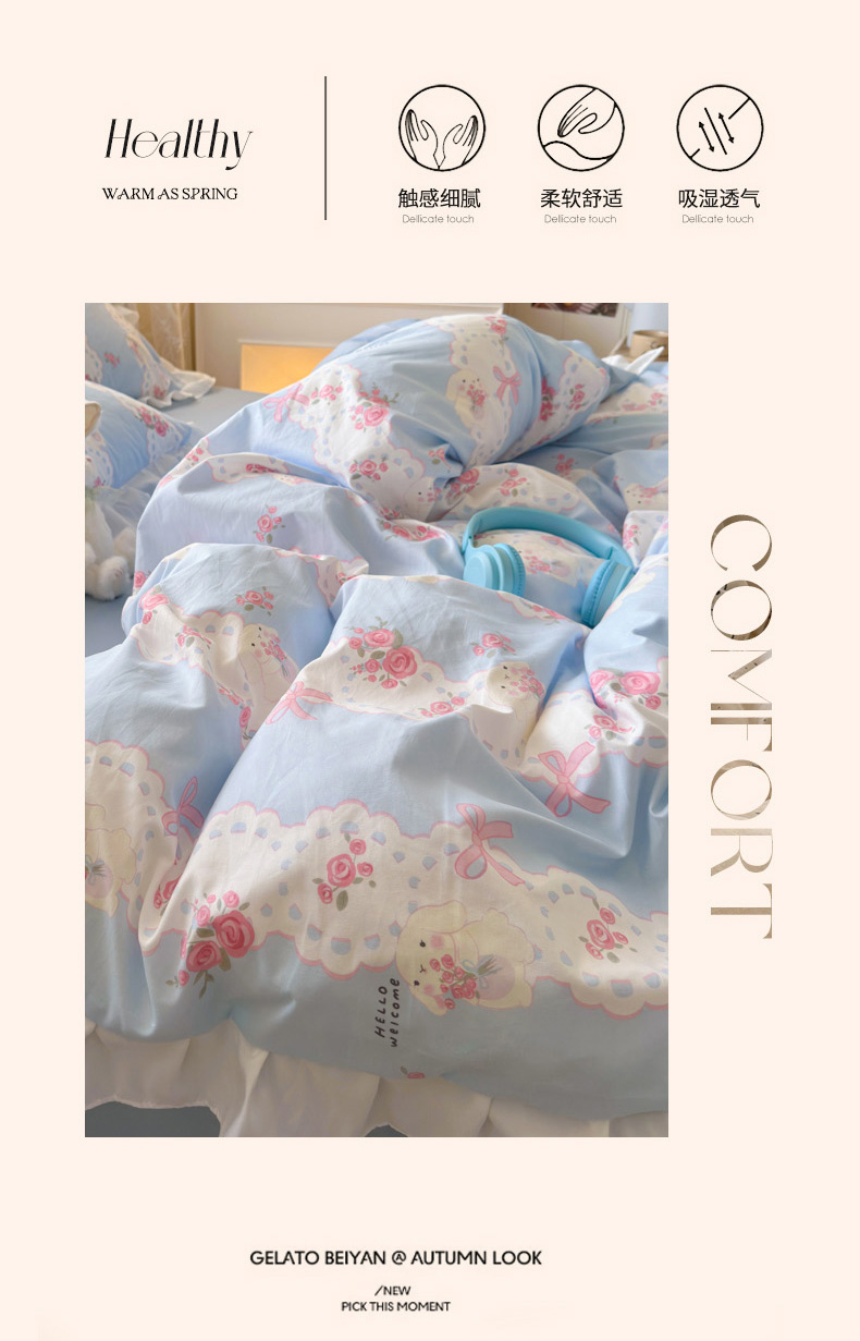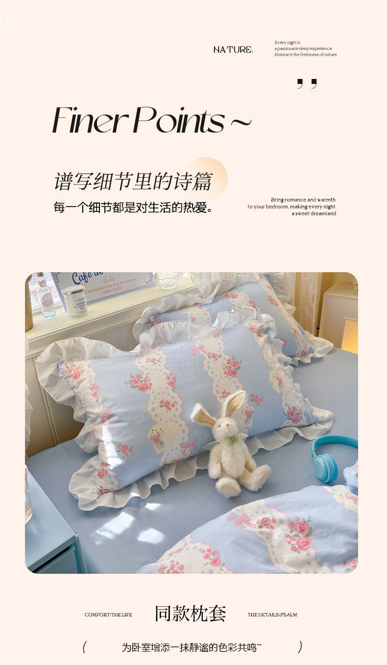 当前位置: 91家纺网 > 商品网购 > 床品套件 > 四件套 > 水洗棉四件套 > 慕澄家纺 2025新款法式浪漫风花边款水洗棉四件套 花边款-蓝色花语