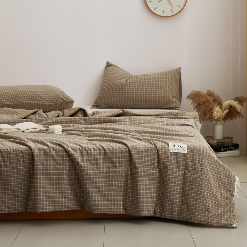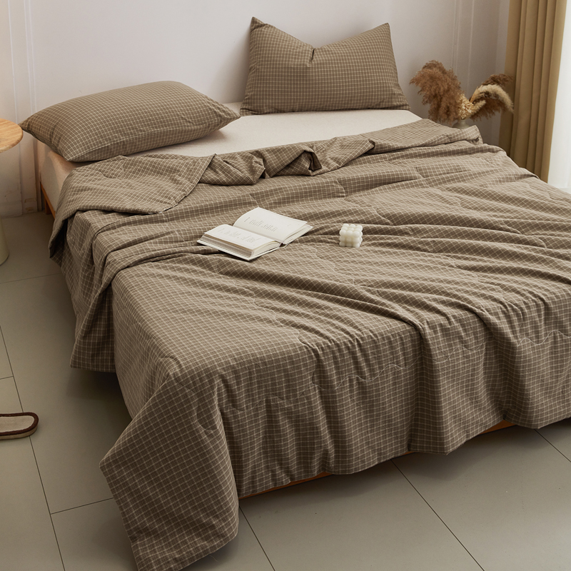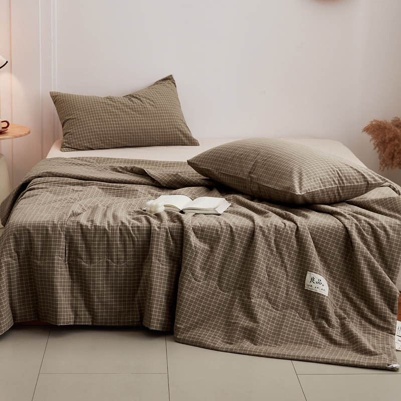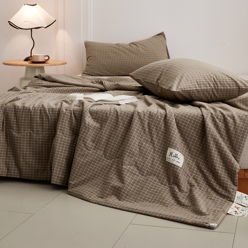 • 91家纺网 家纺一手货源 找家纺 尊妙被业 2025新款全棉色织水洗棉夏被 晚晴-咖