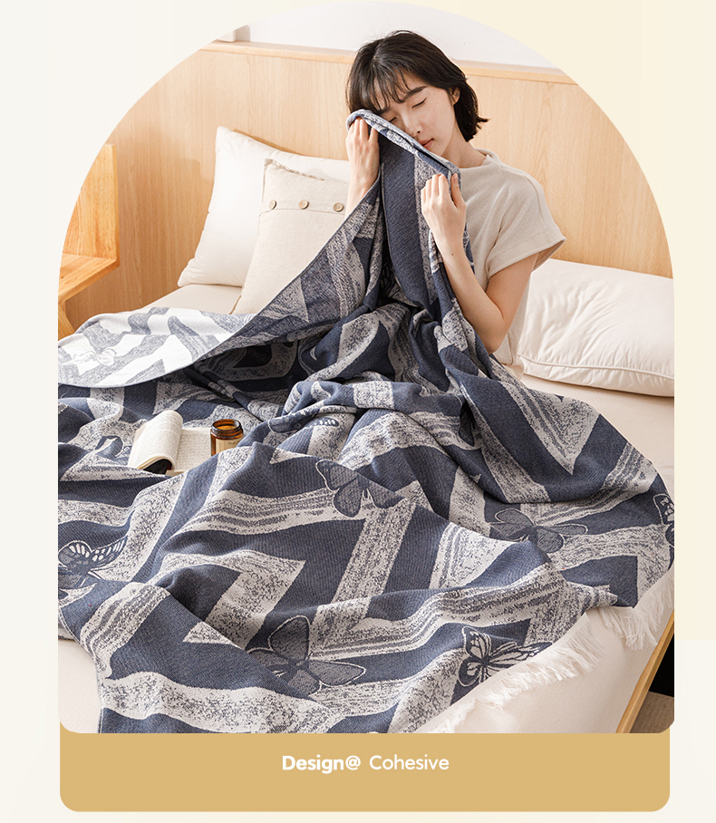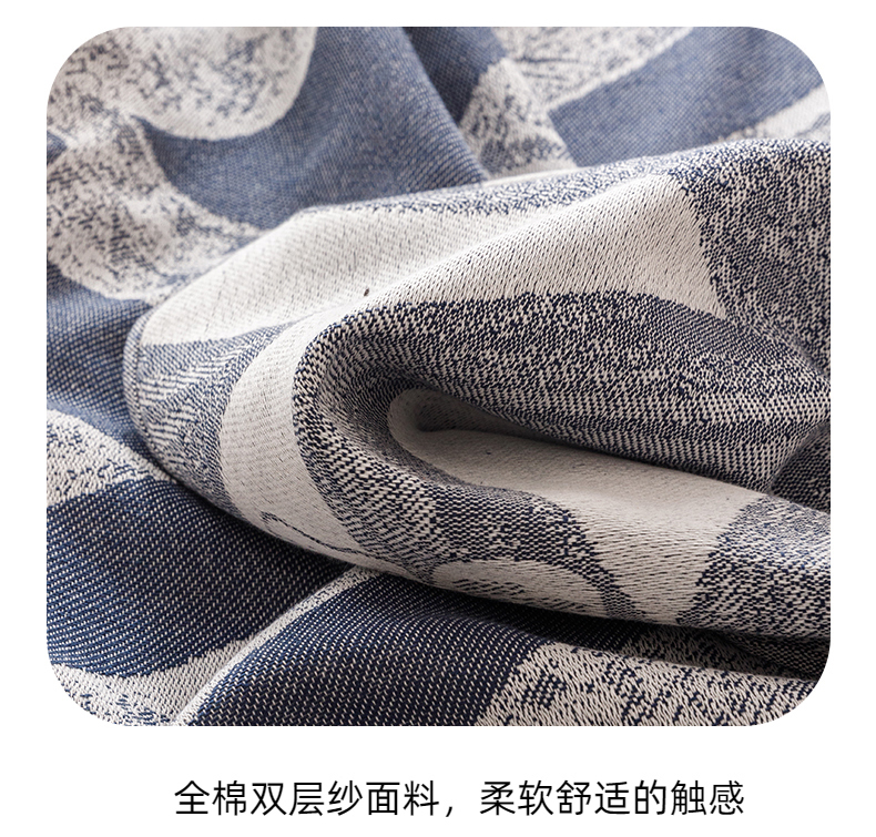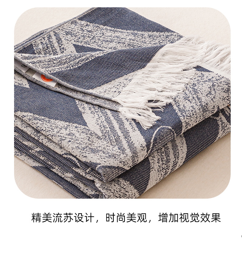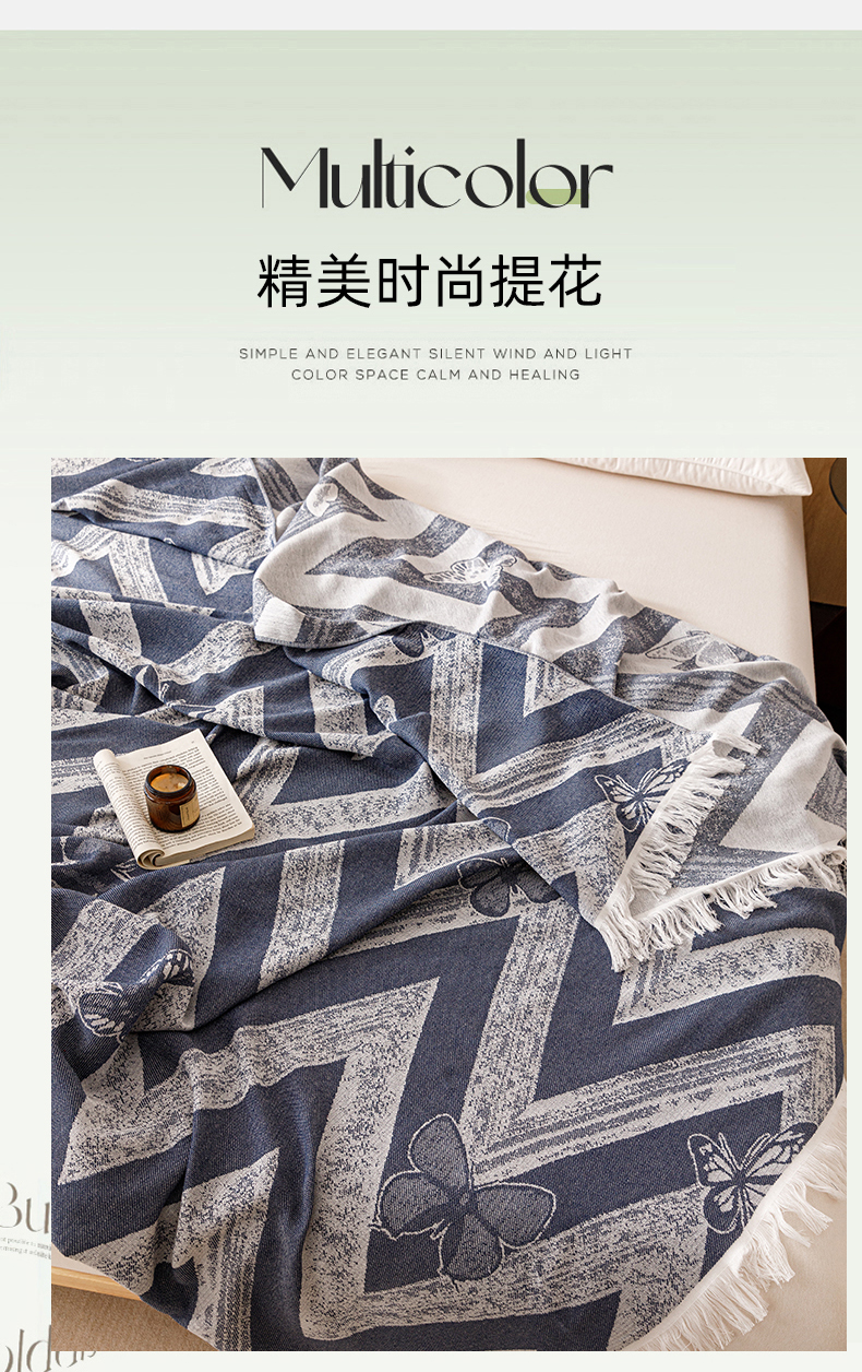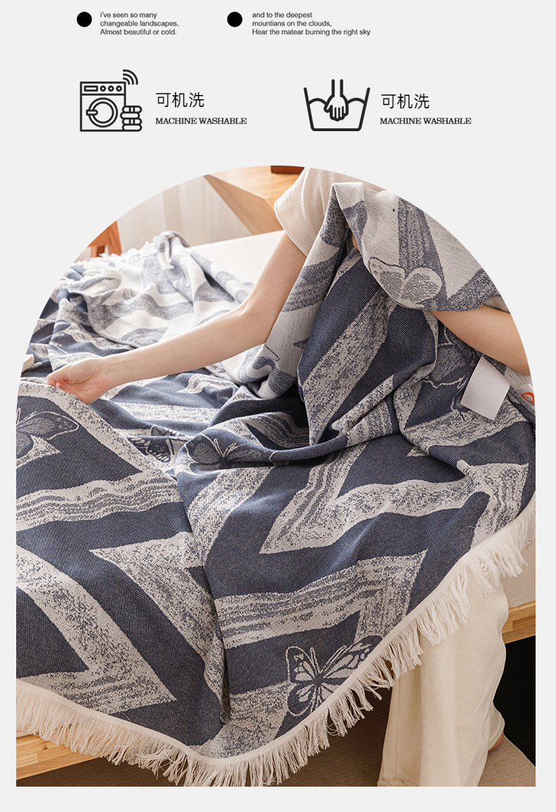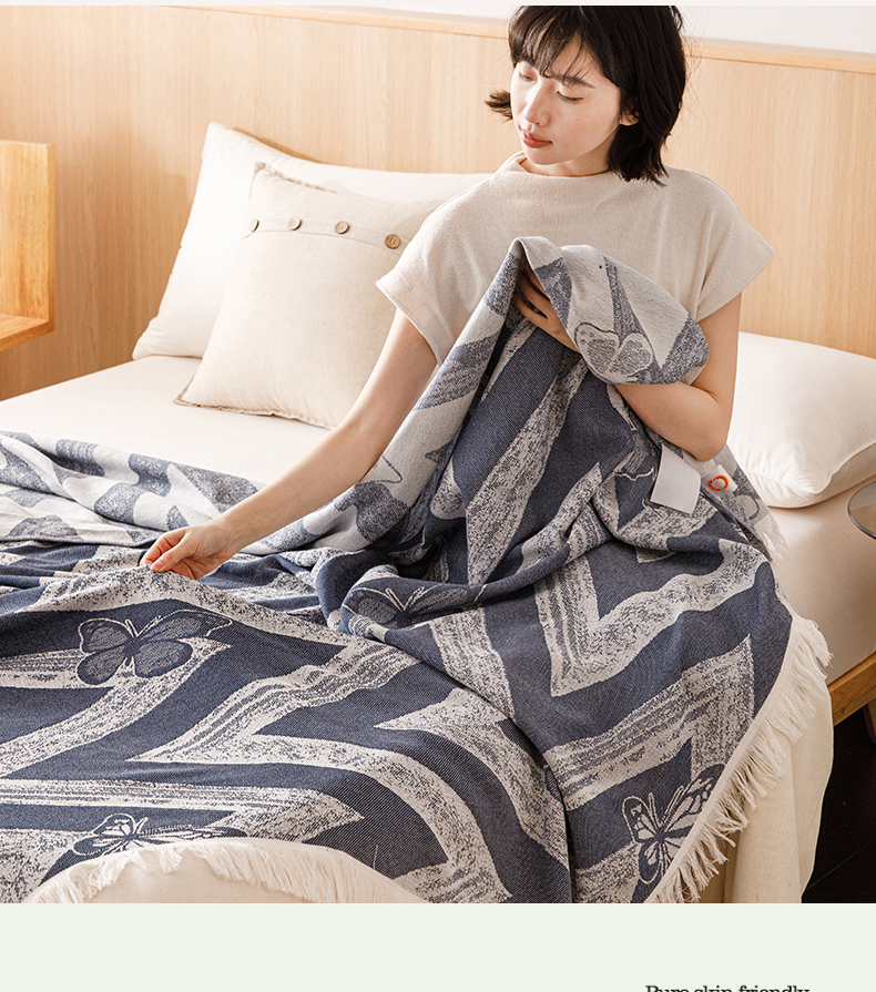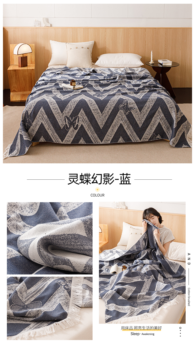 商品名称:悦然毛巾被 2025新款全棉双层纱流苏款盖毯 灵蝶幻影蓝