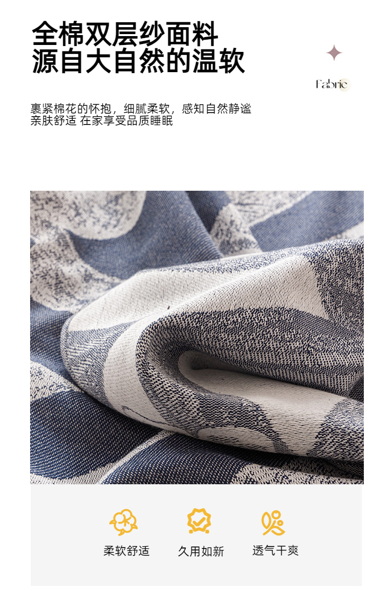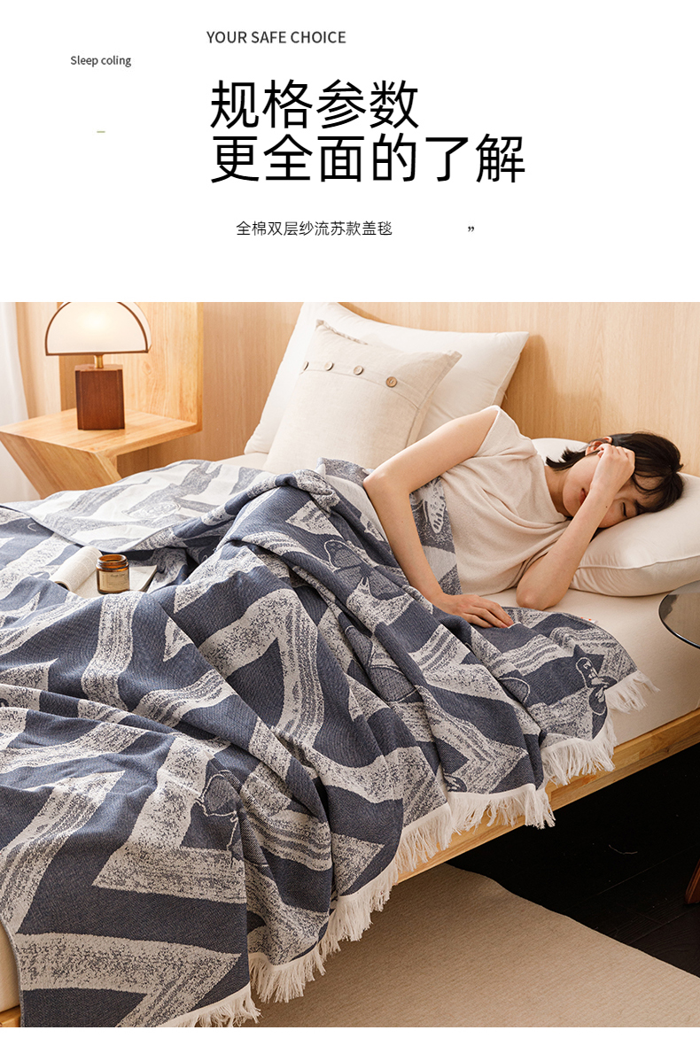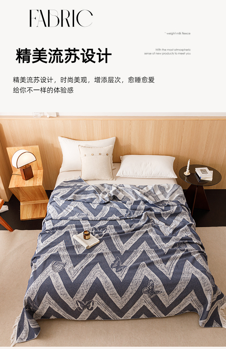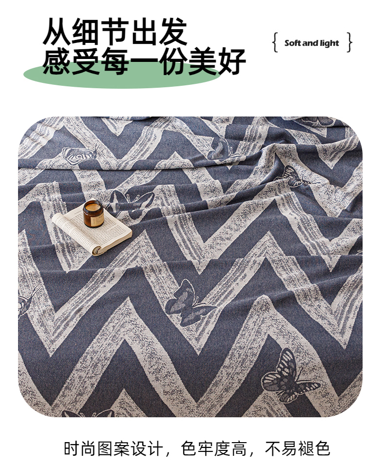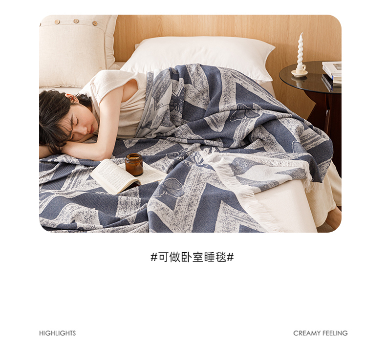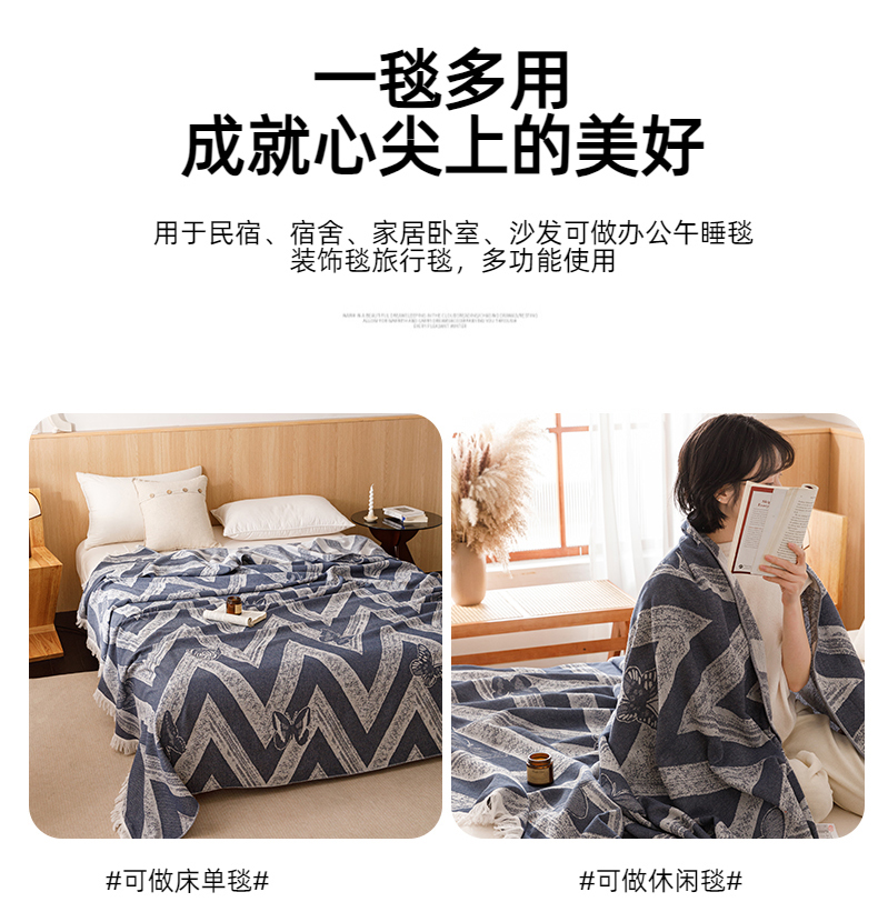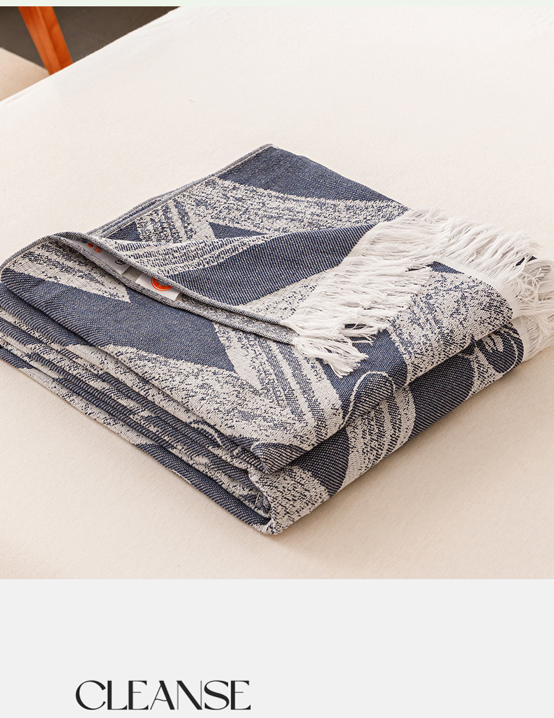 商品名称:悦然毛巾被 2025新款全棉双层纱流苏款盖毯 灵蝶幻影蓝