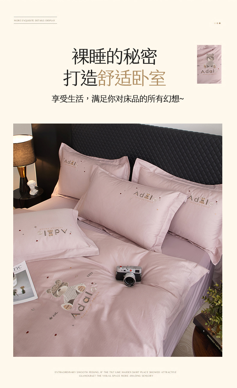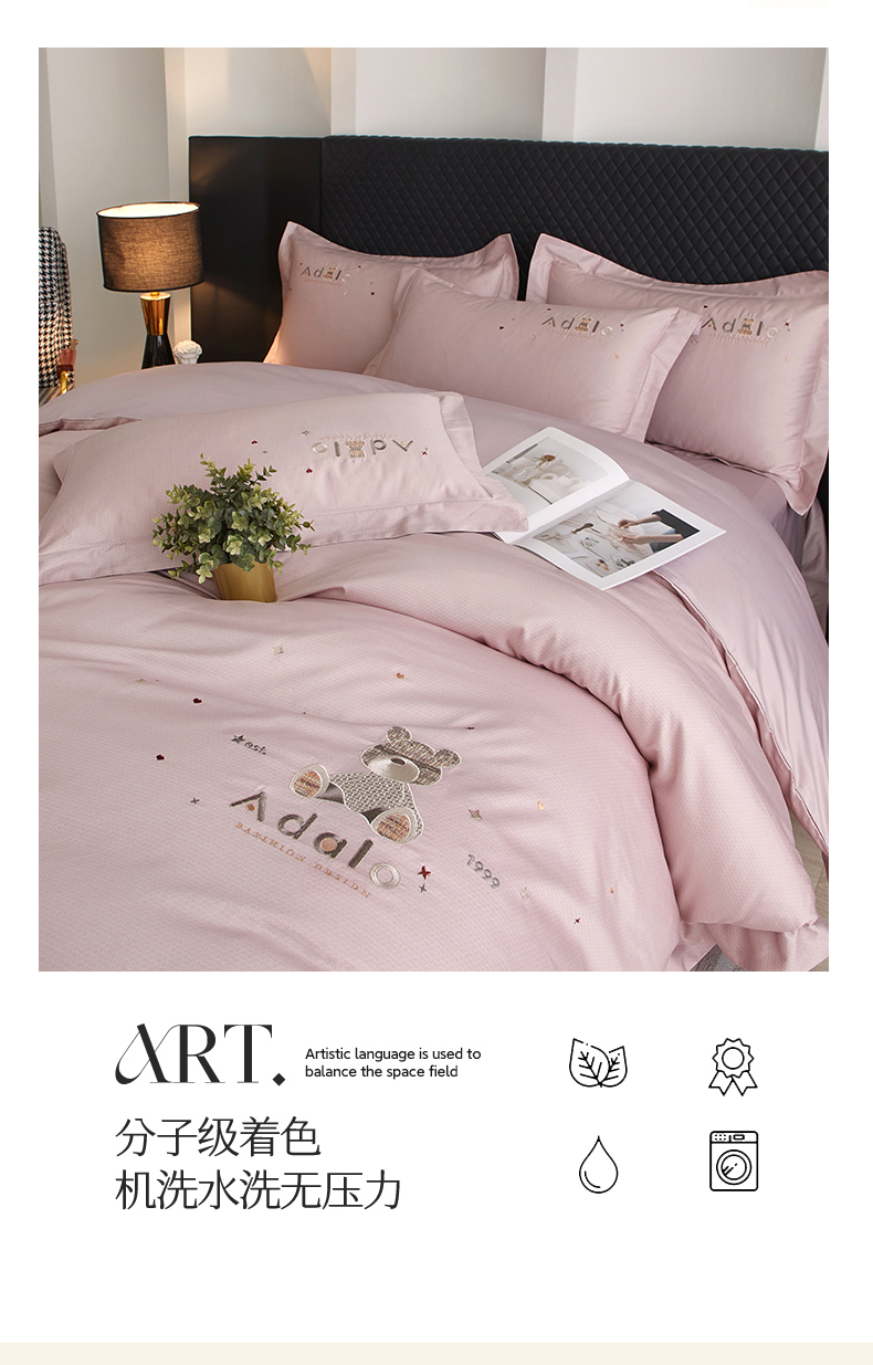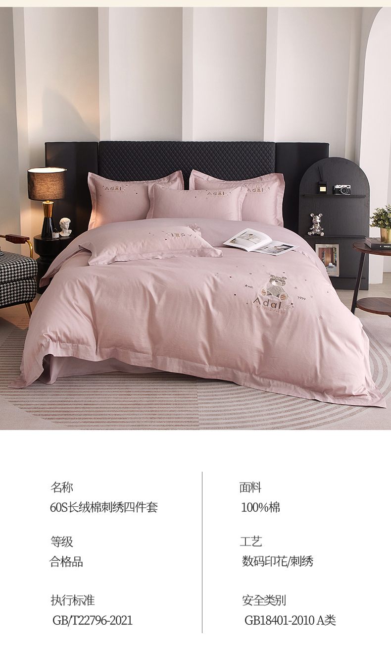 曼秀琳家纺 2025新款A类60s新疆长绒棉刺绣款四件套 维尼 豆沙粉