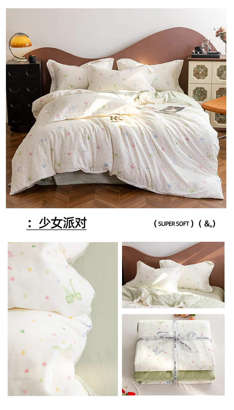 当前位置: 91家纺网 > 商品网购 > 床品套件 > 四件套 > 全棉普通四件套 > 锦罗绣2025新款A类母婴全棉有氧印花双层纱四件套可定制任意尺寸 好奇小狗
