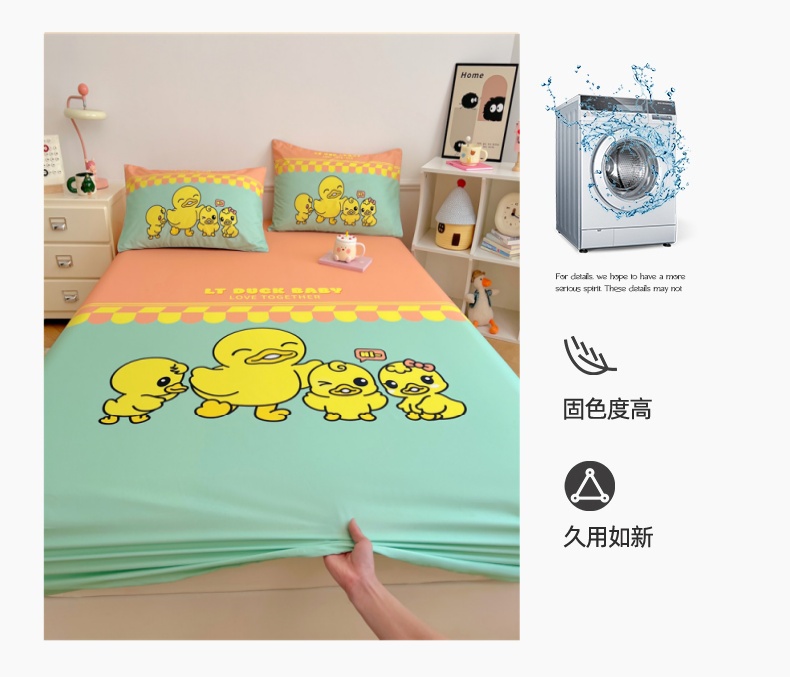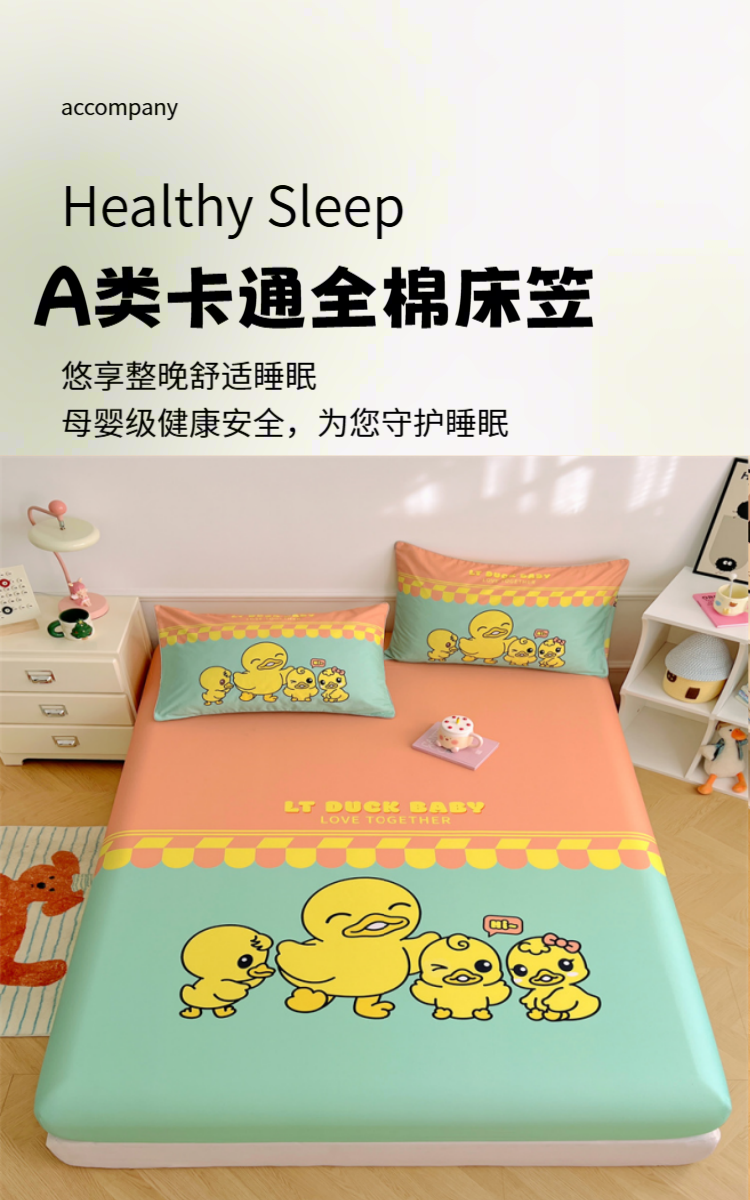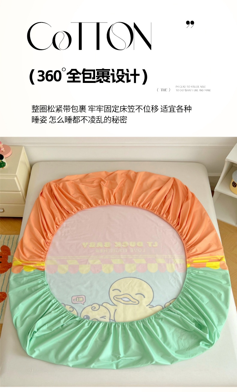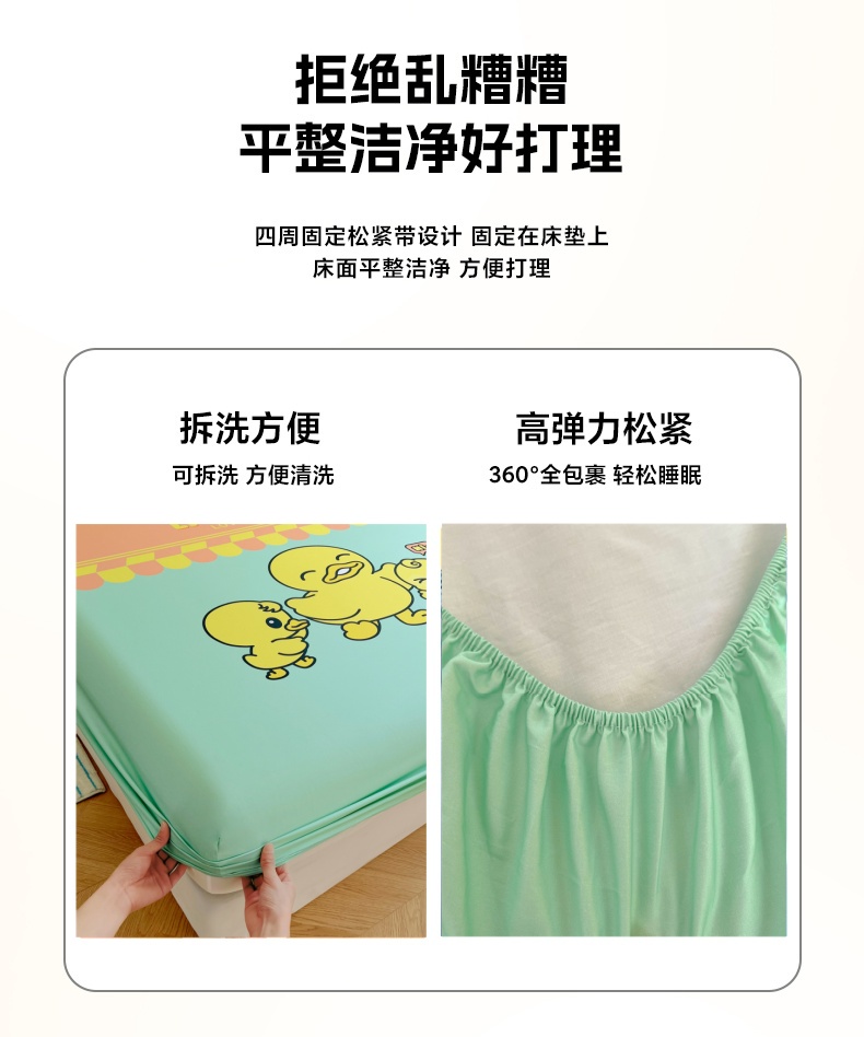 • 91家纺网 家纺一手货源 找家纺 梦舒羽 2025新款正版全棉床笠卡通床笠罩全包席梦思床垫保护罩 萌鸭一族-绿