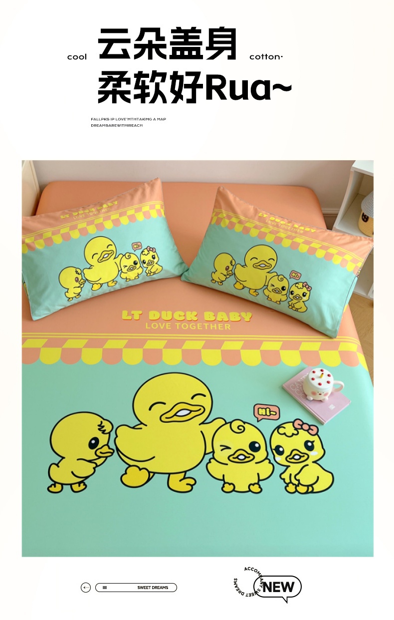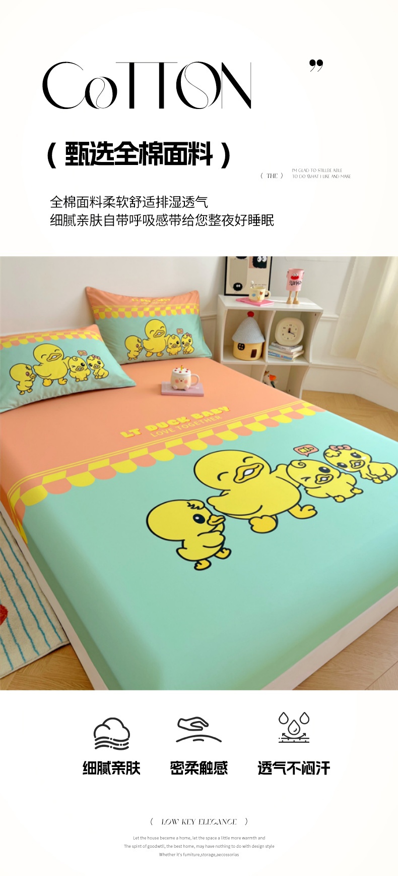 梦舒羽 2025新款正版全棉床笠卡通床笠罩全包席梦思床垫保护罩 萌鸭一族-绿