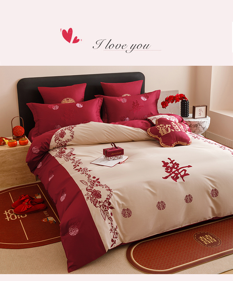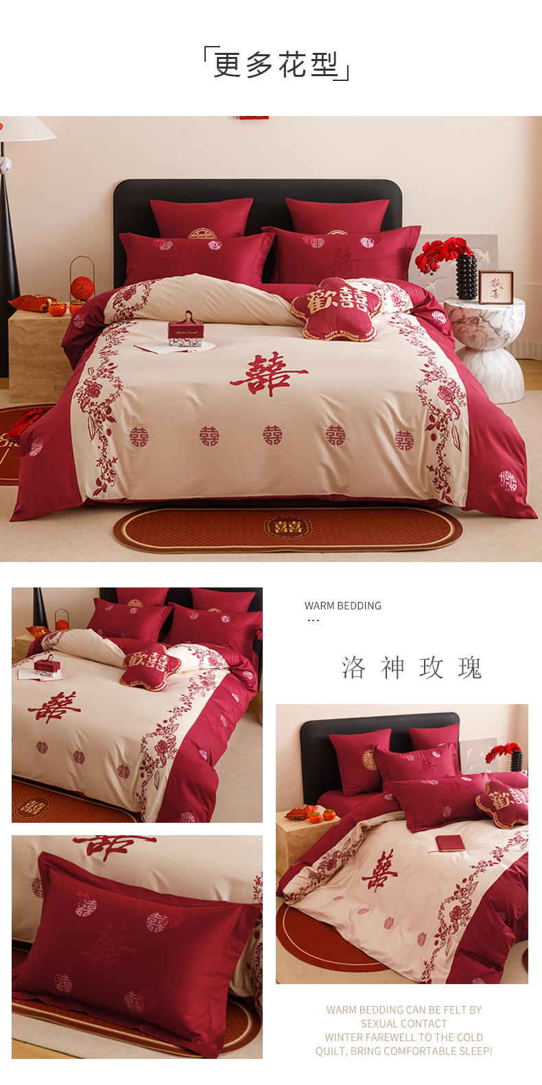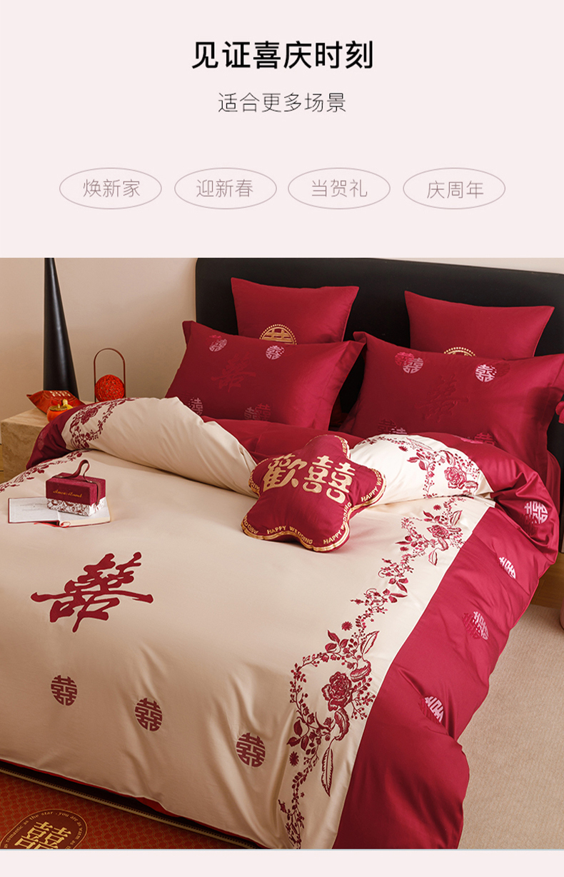(总)甜咪咪婚庆 2025新款50支长绒棉全棉婚庆床单床盖四件套多件套刺绣工艺,洛可可,爱恋小熊,爱意久久,多子多福,花田喜事,节节高升,克拉恋人,浪漫情怀,怦然心动红,怦然心动玉,甜心玫瑰,温莎公主,伊甸园,醉红妆