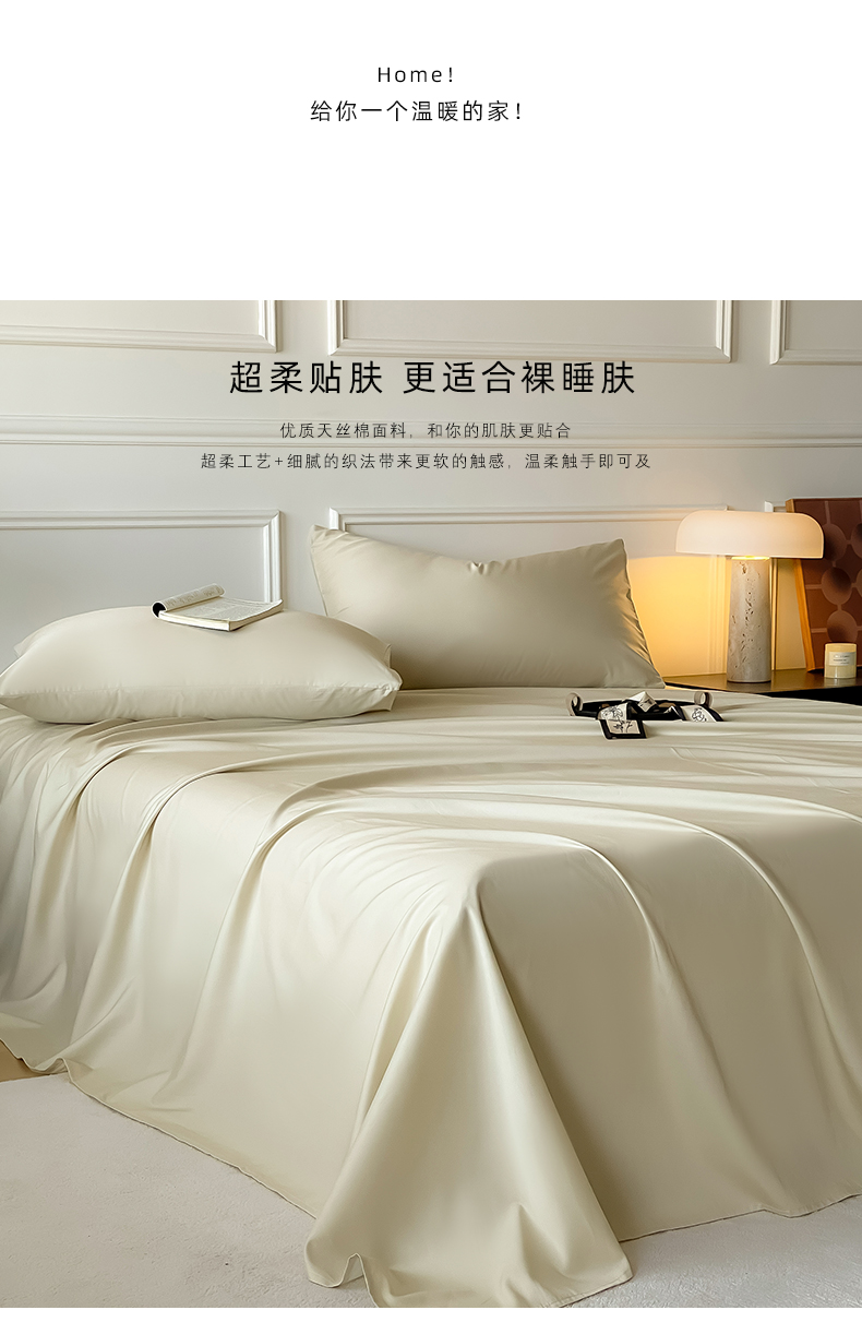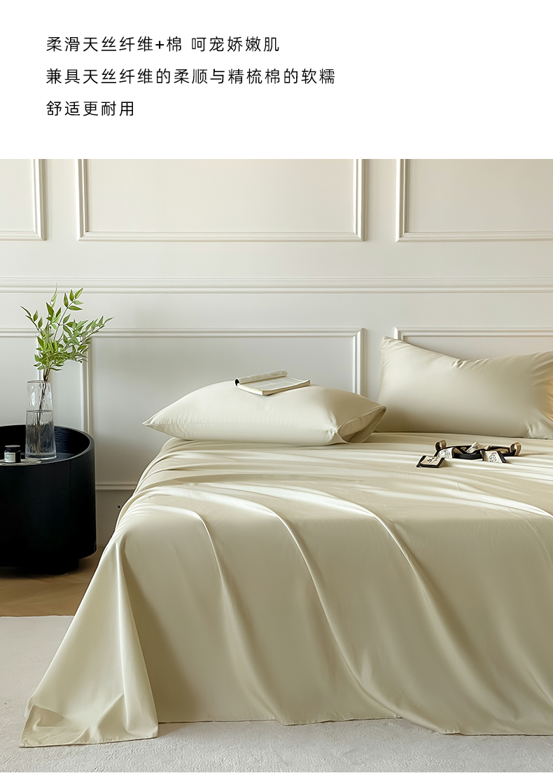 Mr.pig猪先生水洗棉 2025新款A类超柔天丝棉纯色单床单 燕麦奶
