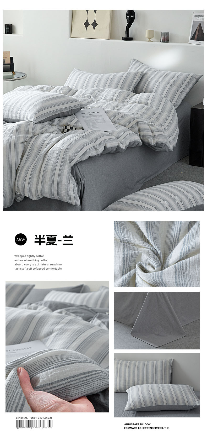 商品名称:(总)AB家纺 2025新款三层款皱皱纱条纹四件套