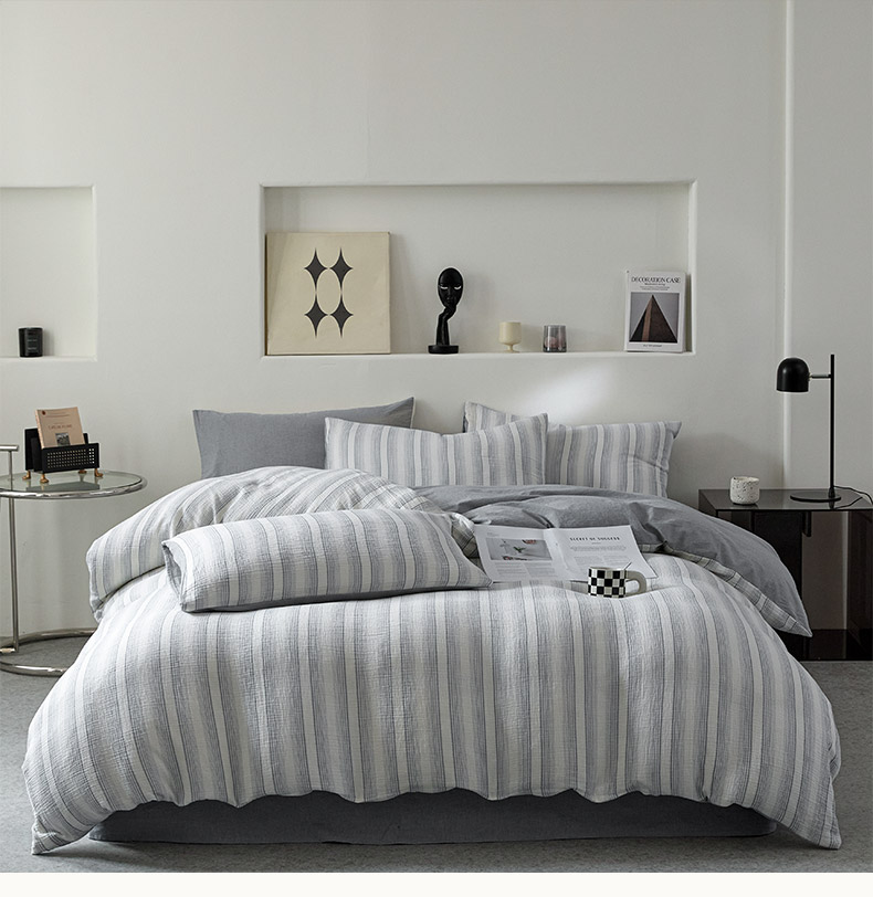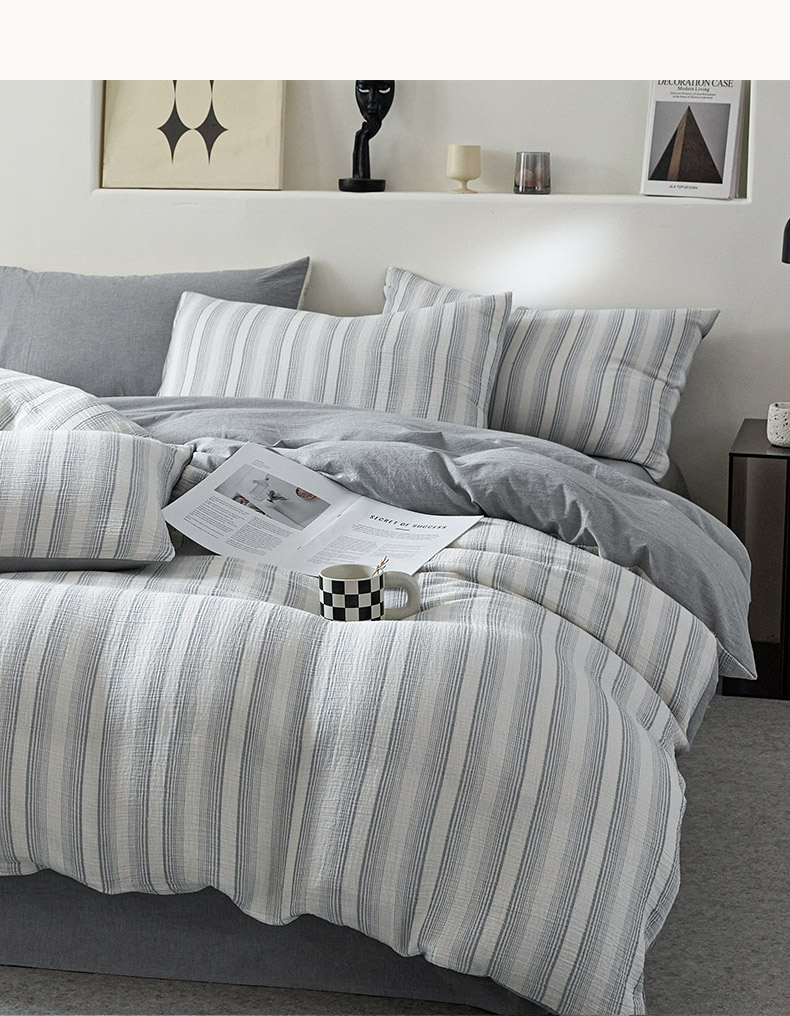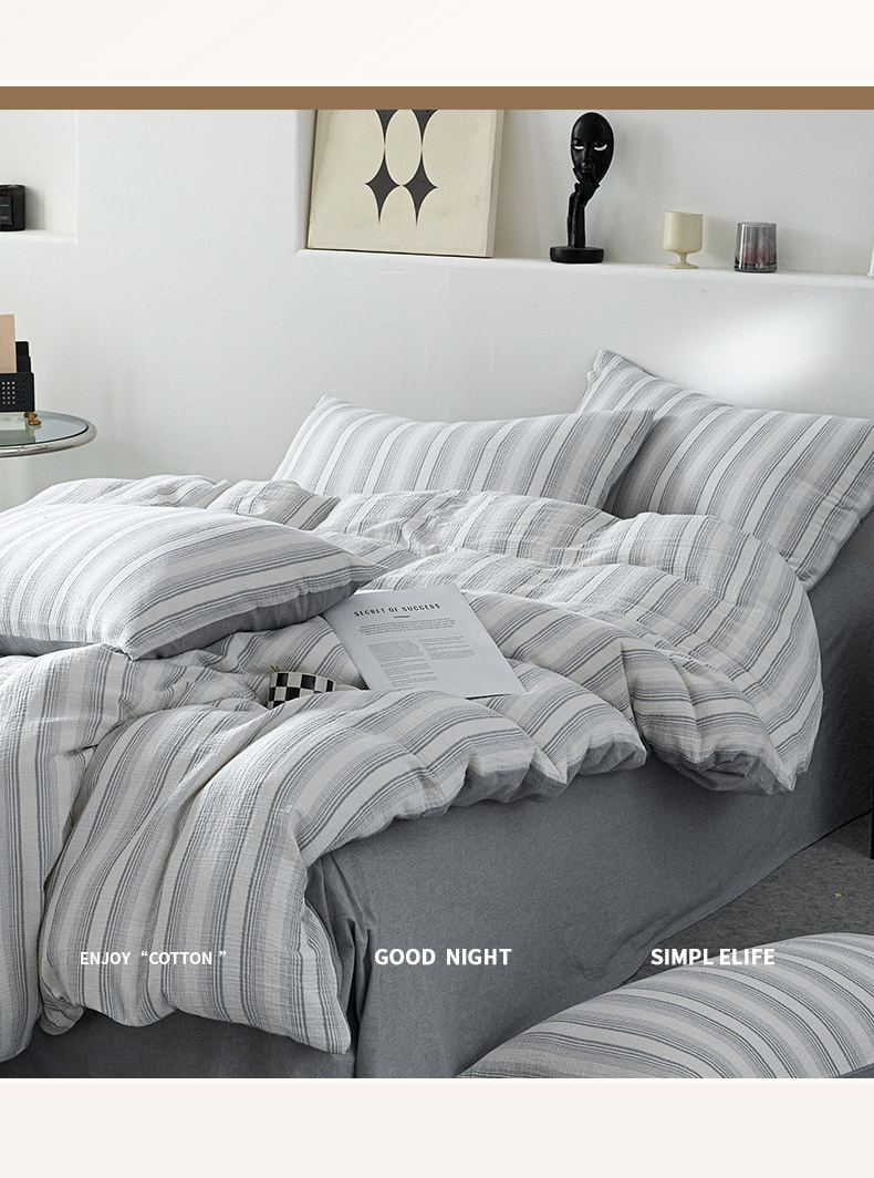(总)AB家纺 2025新款三层款皱皱纱条纹四件套