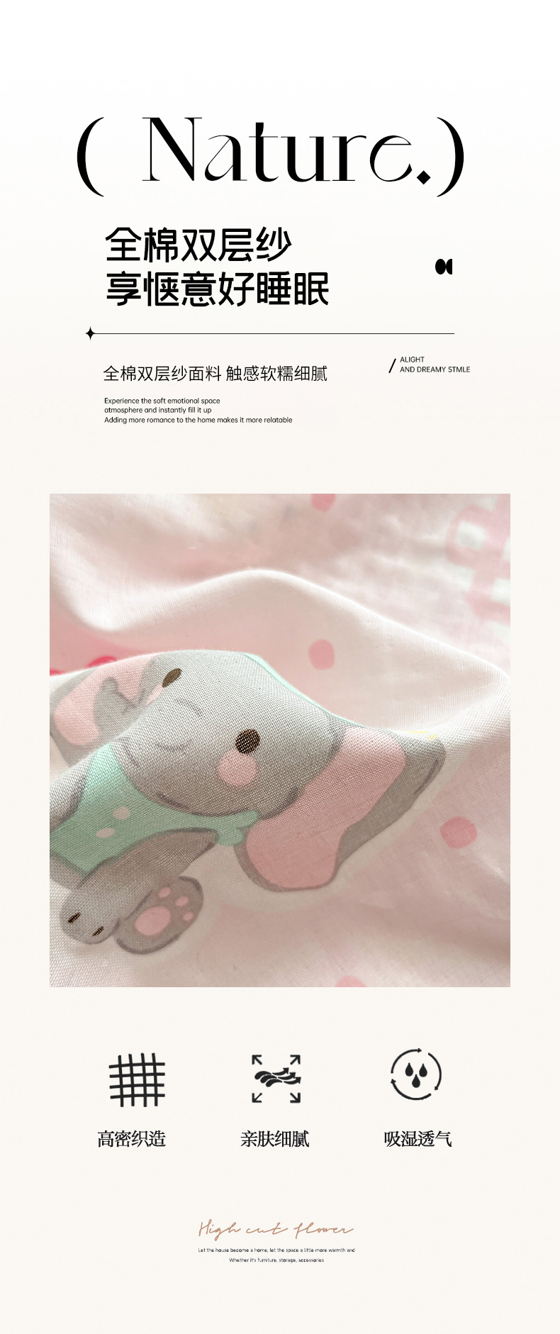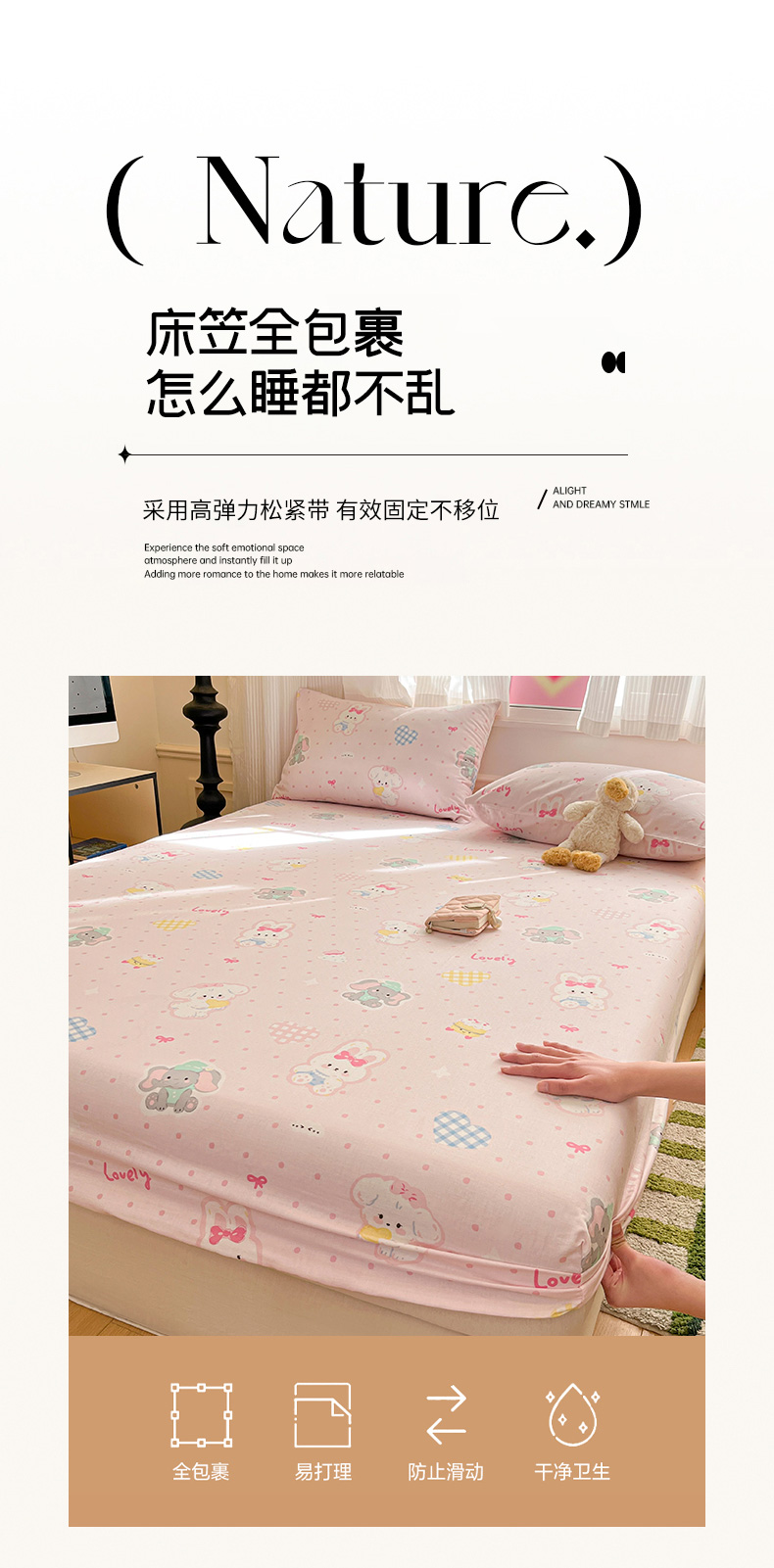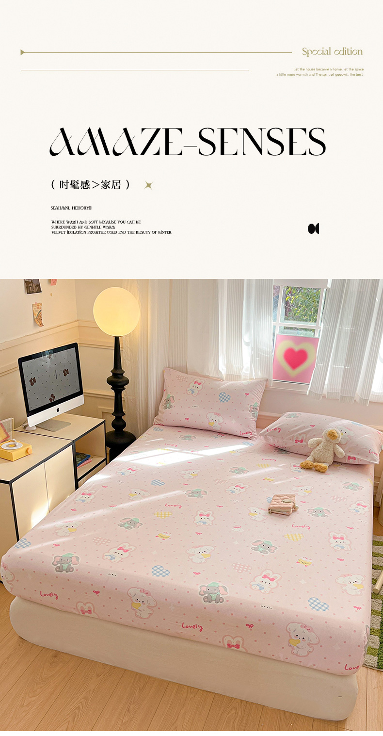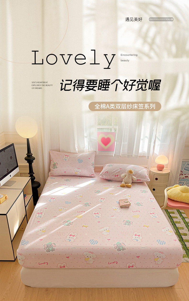 • 91家纺网 家纺一手货源 找家纺 博雅 2025新款全棉A类双层纱床笠 甜宠派对