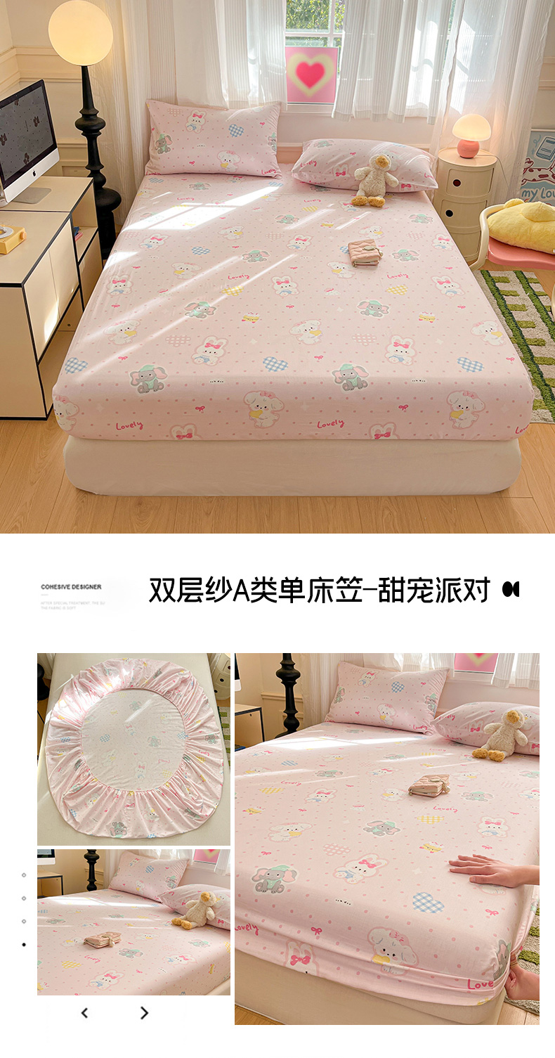 博雅 2025新款全棉A类双层纱床笠 甜宠派对