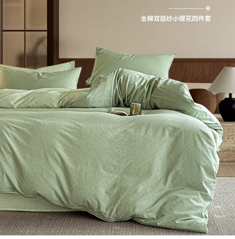 当前位置: 91家纺网 > 商品网购 > 床品套件 > 四件套 > 全棉普通四件套 > ab家纺 2025新款小碎花三层纱 波尔卡-绿