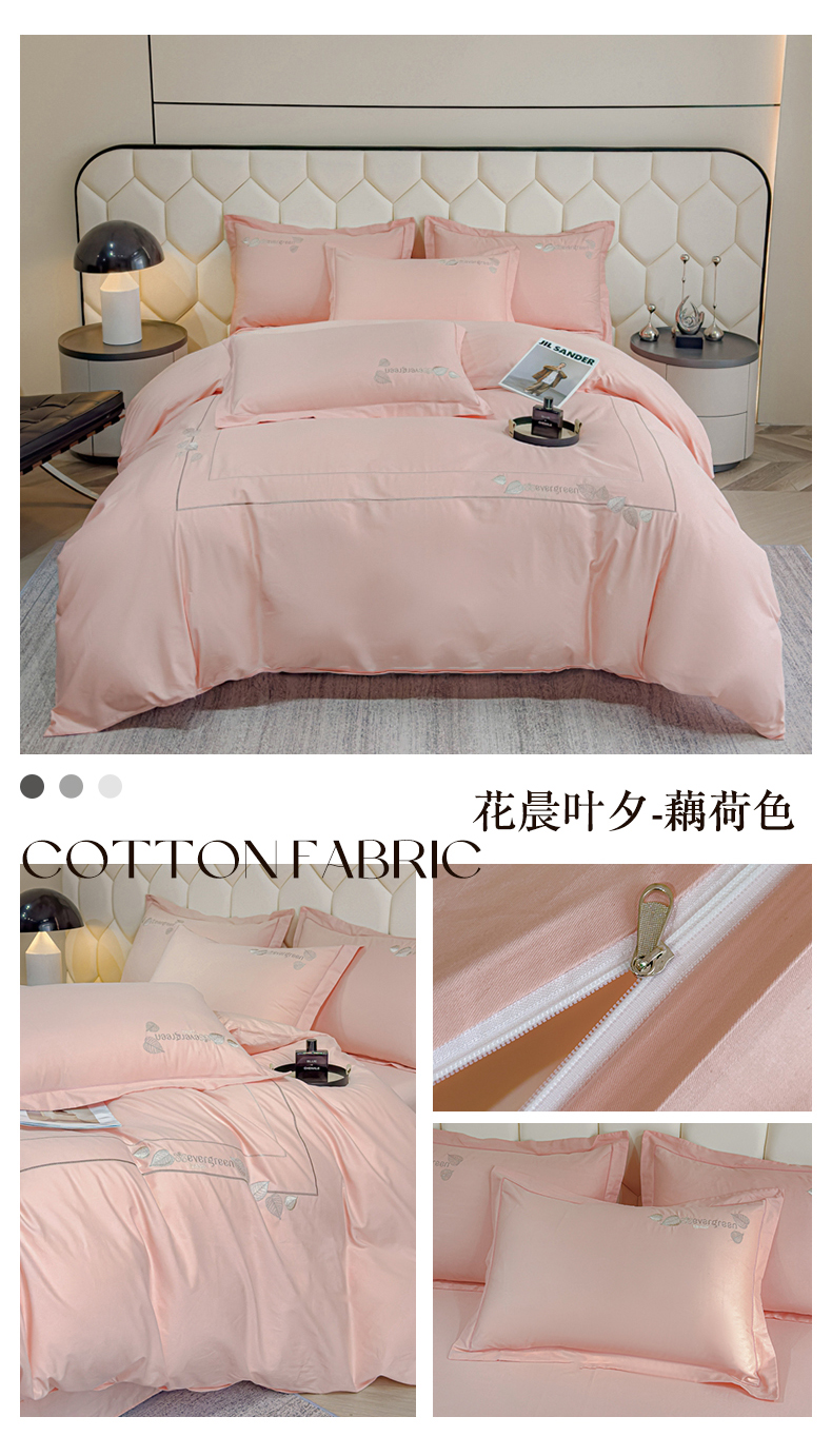 商品名称:U品汇 2025新款纯棉全棉长绒棉刺绣绣花高端礼盒四件套-叶夕 花晨叶夕-藕荷色