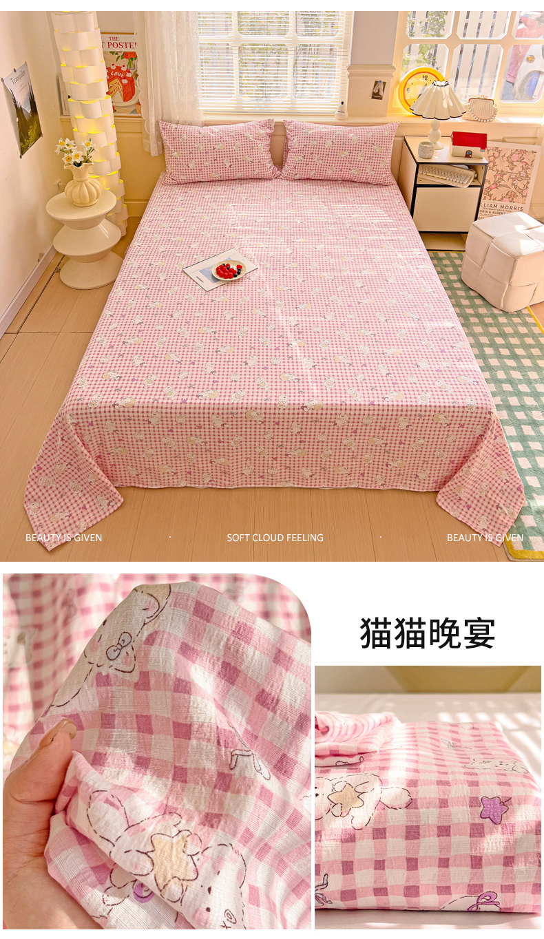 (总)纽缦家纺 2024水洗双层纱床单,半眠日记,南岛小镇,嗨皮狗,夹心果冻,小兔堡,小南瓜,小橘子,小熊猫,小熊院长,小绿鸭,小黑球,心动兔兔,捉迷藏,撞进晚风,日记小姐,旧岛望海,曼塔玫瑰,桃你喜欢,甜茶日记,甜酥少女,童话小熊,素颜捧花,莓天开心,蓝小鸭,蓝海玫瑰,遇见米,遇见紫,香草薄荷