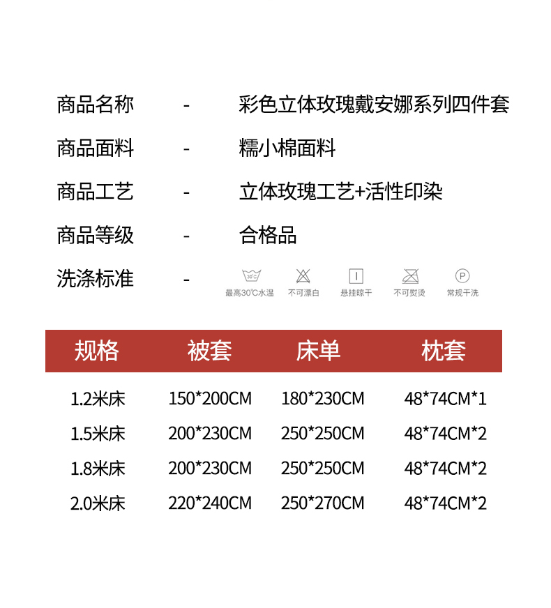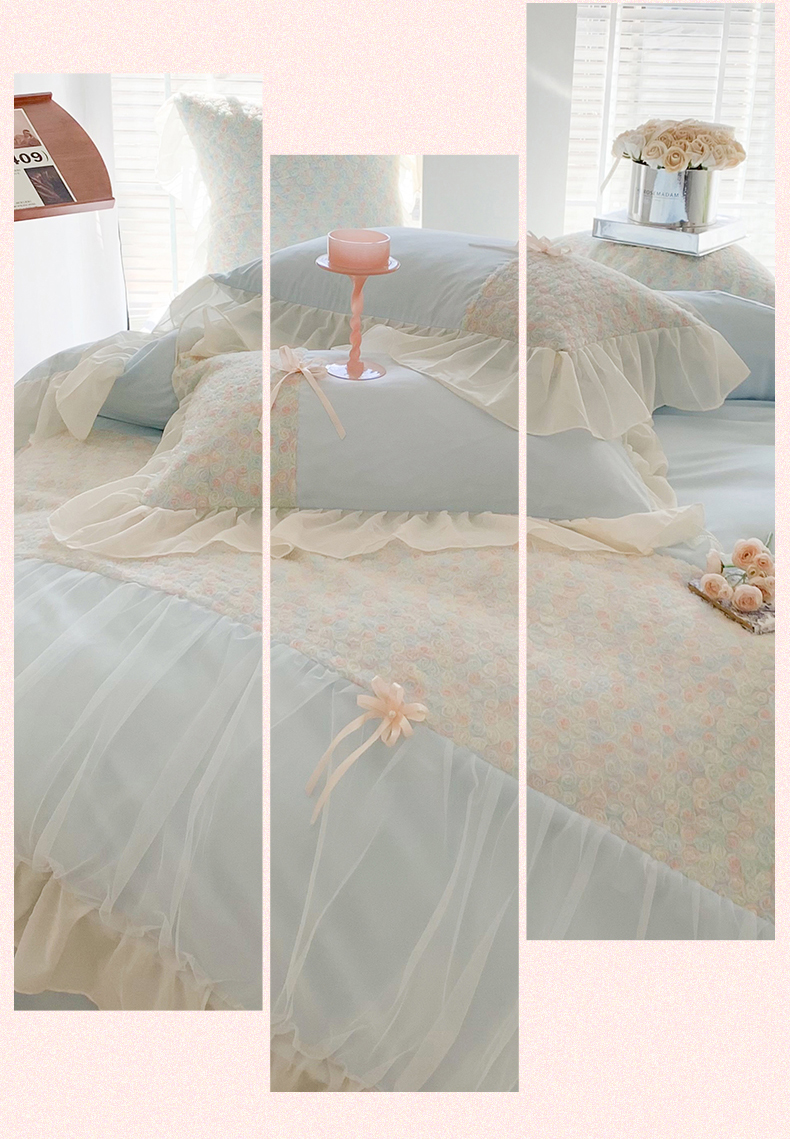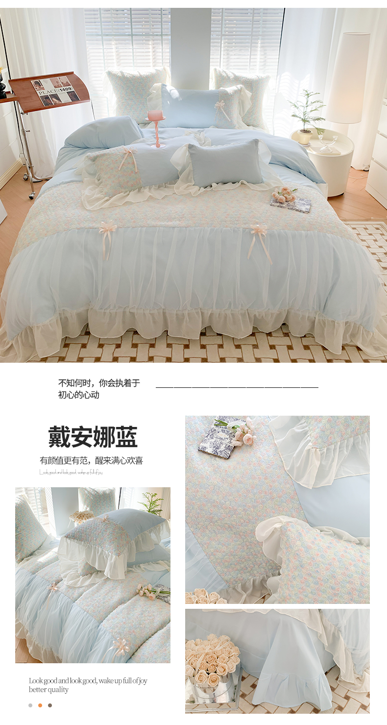 商品名称:吾欢心2025新款彩色立体玫瑰戴安娜系列四件套 戴安娜蓝