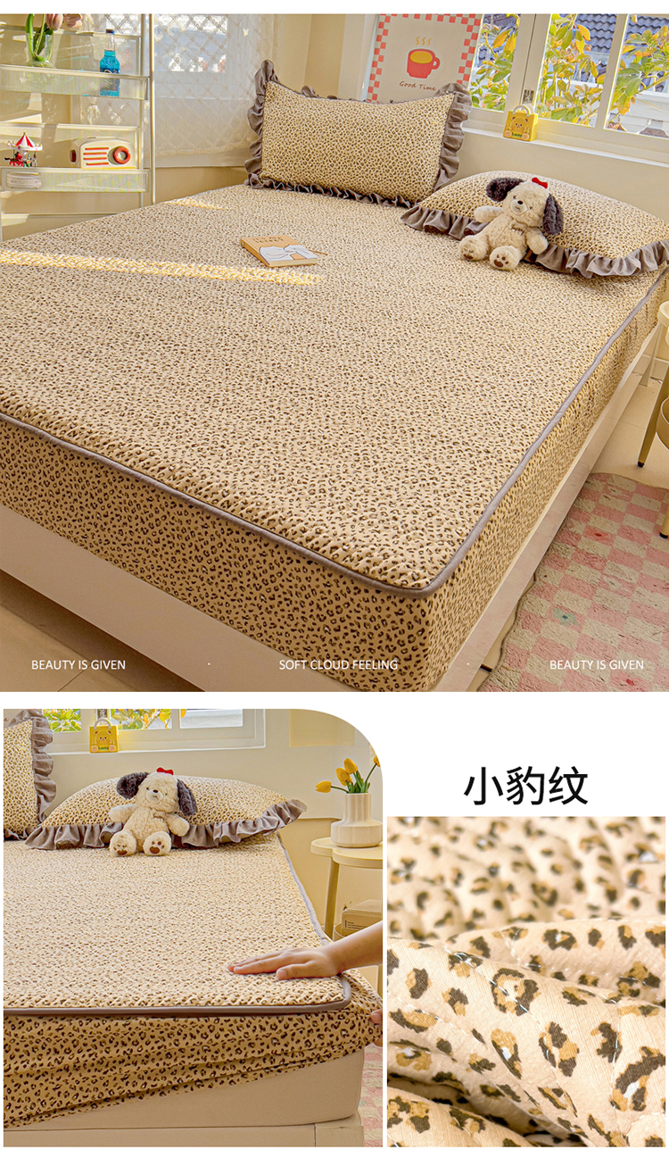 纽缦家纺 2025新款云朵提花双层纱夹棉绗缝床笠 小豹纹