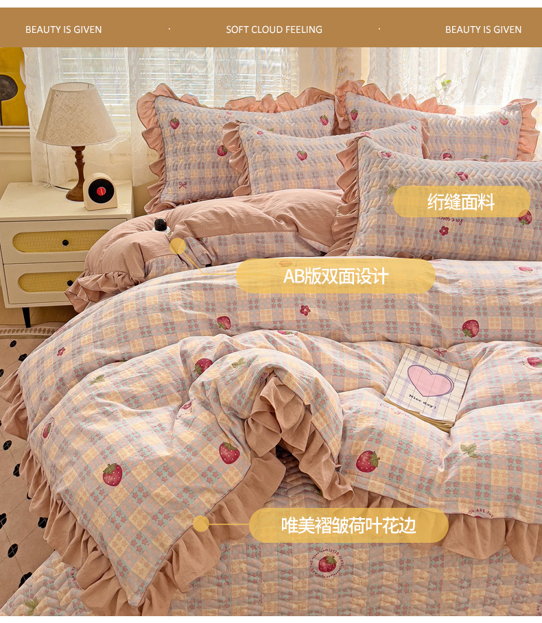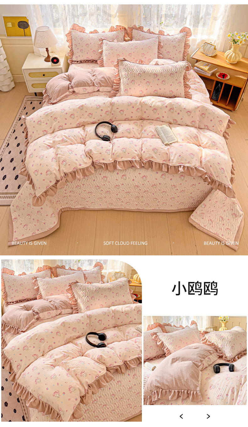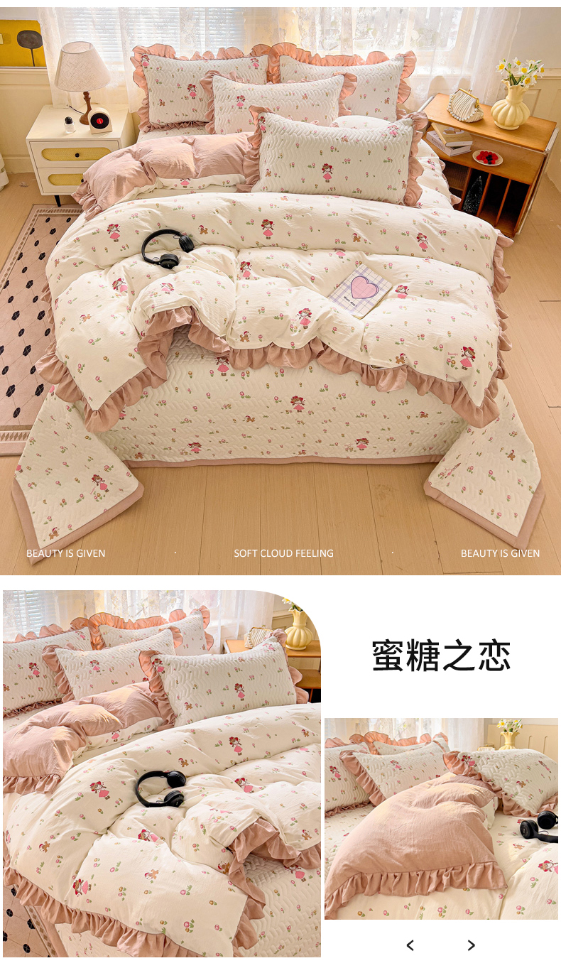 (总)纽缦家纺 2024水洗双层纱加厚加棉韩版床盖,半眠日记,南岛小镇,嗨皮兔,夹心果冻,小兔堡,小南瓜,小橘子,小熊猫,小熊院长,小绿鸭,小黑球,心动兔兔,捉迷藏,撞进晚风,日记小姐,旧岛望海,曼塔玫瑰,桃你喜欢,甜茶日记,甜酥少女,童话小熊,素颜捧花,莓天开心,蓝小鸭,蓝海玫瑰,遇见-米,遇见-紫,香草薄荷