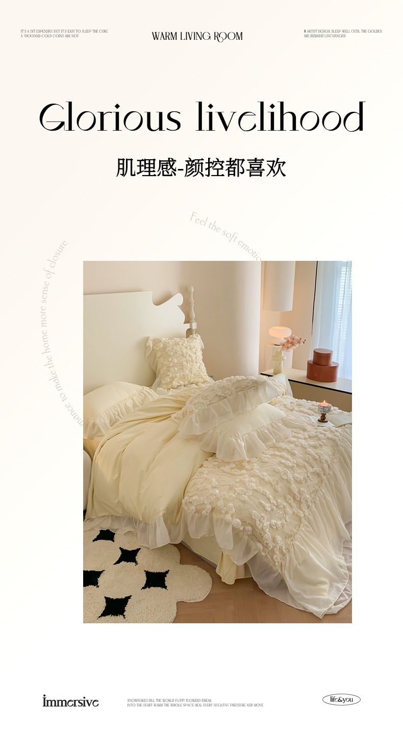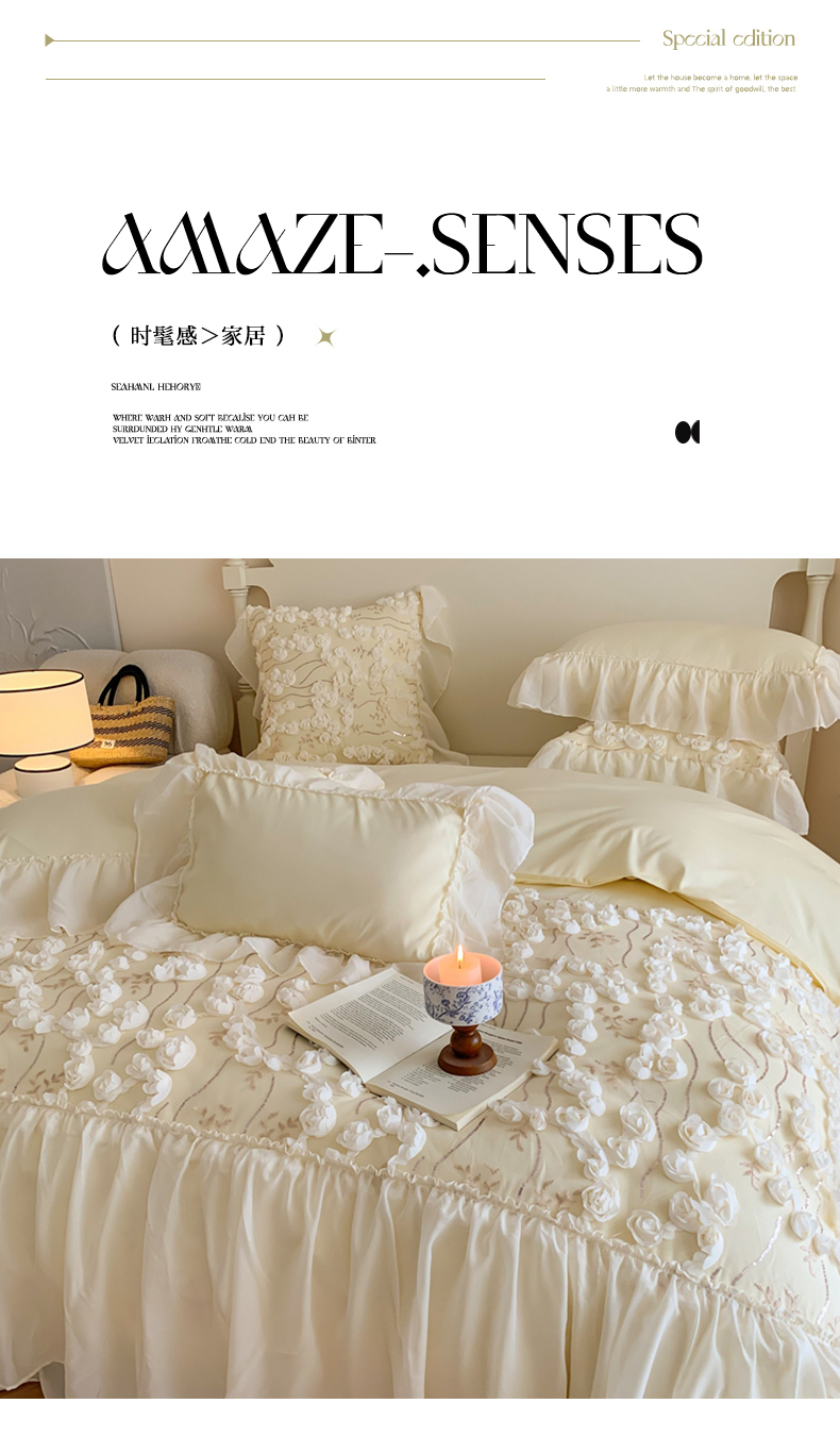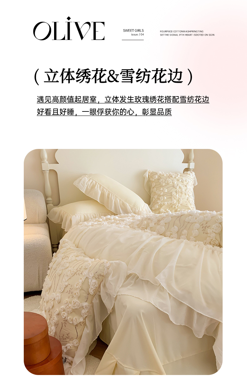 当前位置: 91家纺网 > 商品网购 > 床品套件 > 四件套 > 其它四件套 > 吾欢心2025新款 A类糯小棉立体绣花雪纺花边四件套(玫瑰故事系列) 玫瑰故事黄