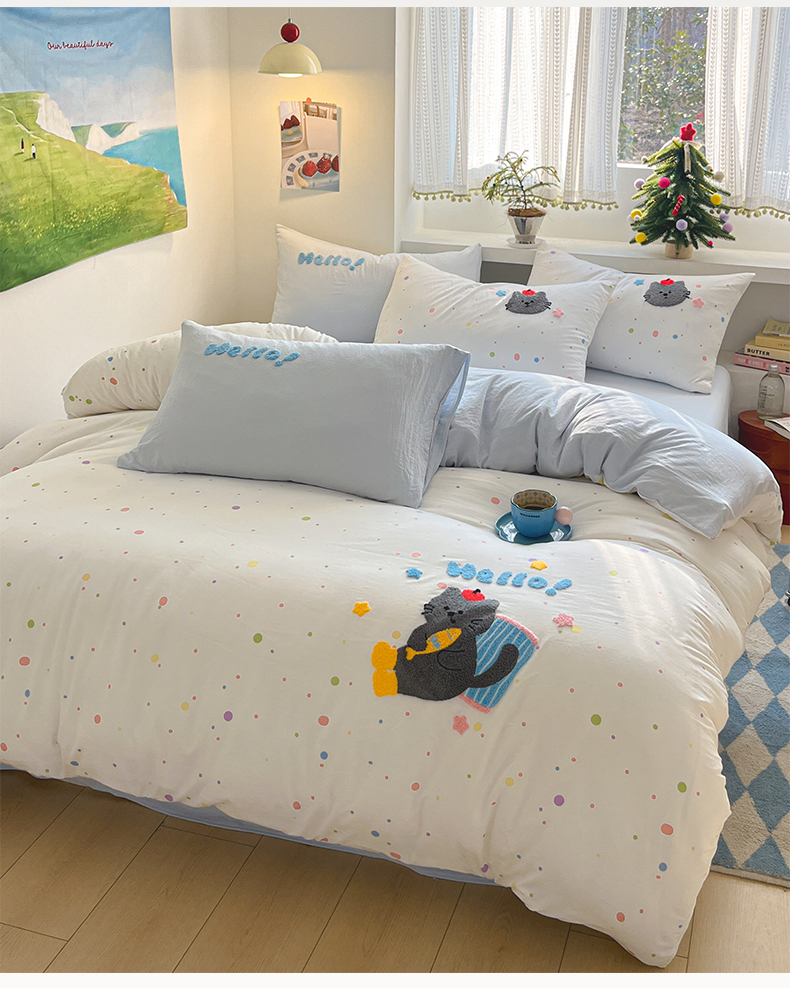 当前位置: 91家纺网 > 商品网购 > 床品套件 > 四件套 > 水洗棉四件套 > 桃心家居 2025新款A类亲肤舒适软糯云柔水洗棉印加绣卡通毛巾绣水洗棉系列 云柔水洗棉-印加绣爱吃鱼
