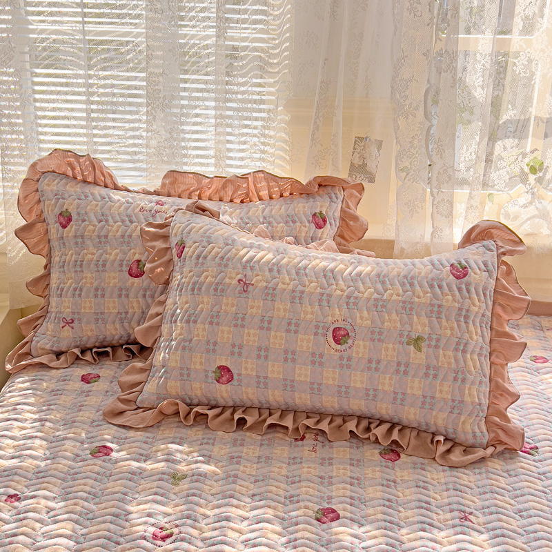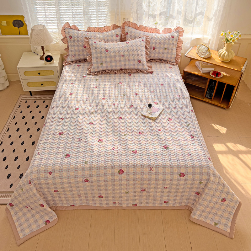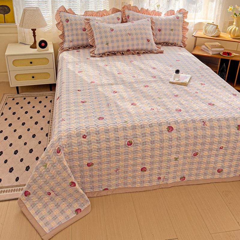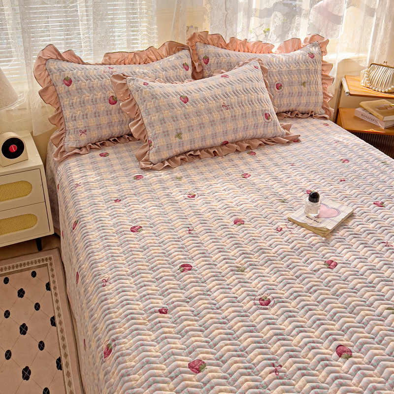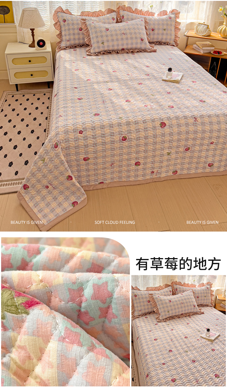 纽缦家纺 2025云感提花双层纱加厚夹棉绗缝床盖 有草莓的地方