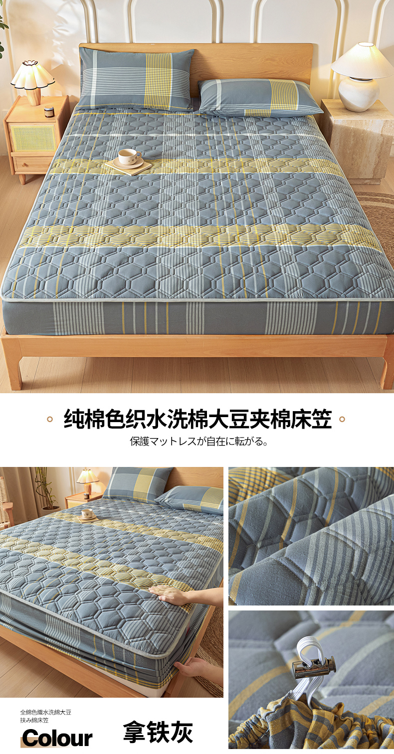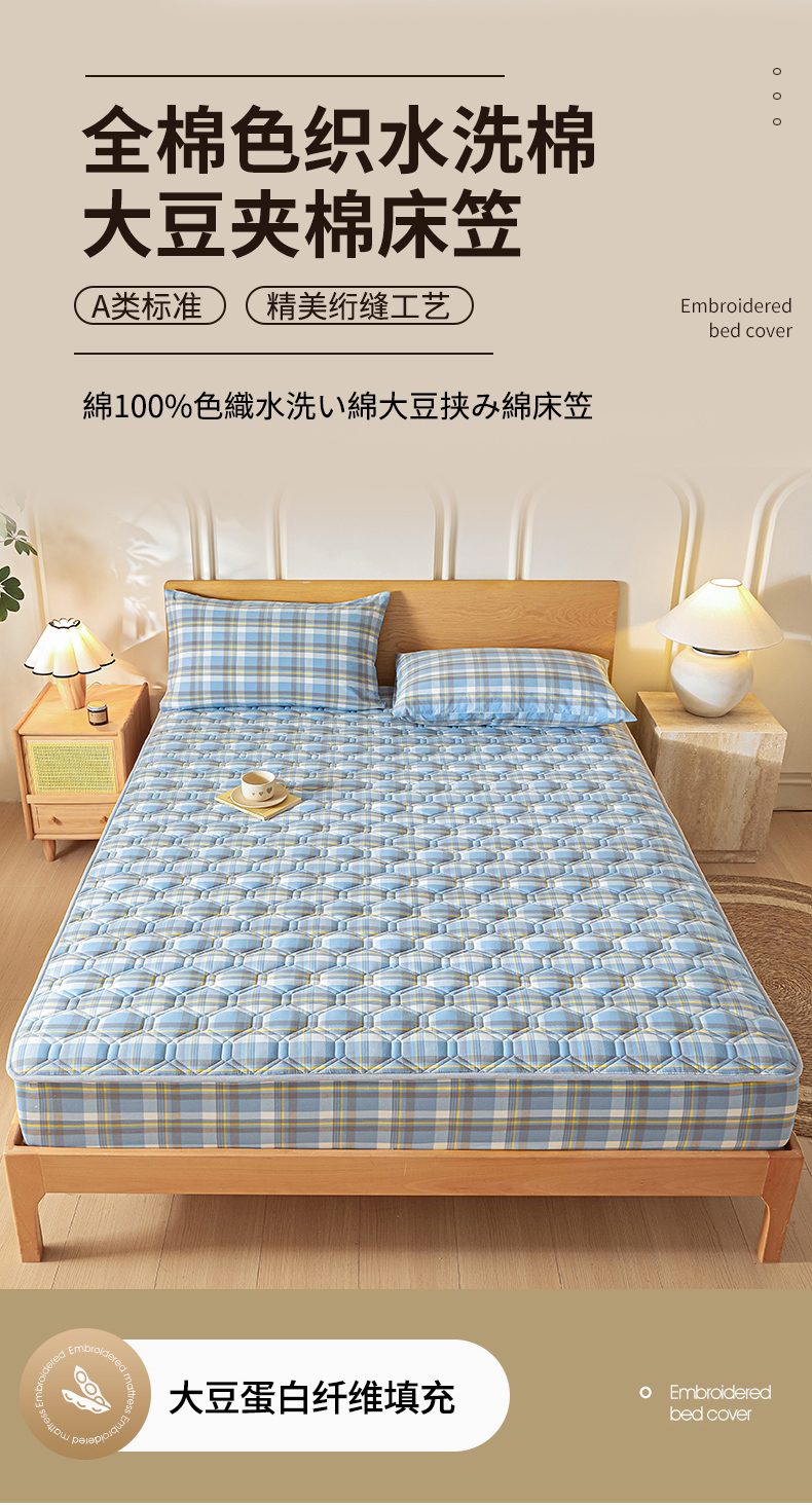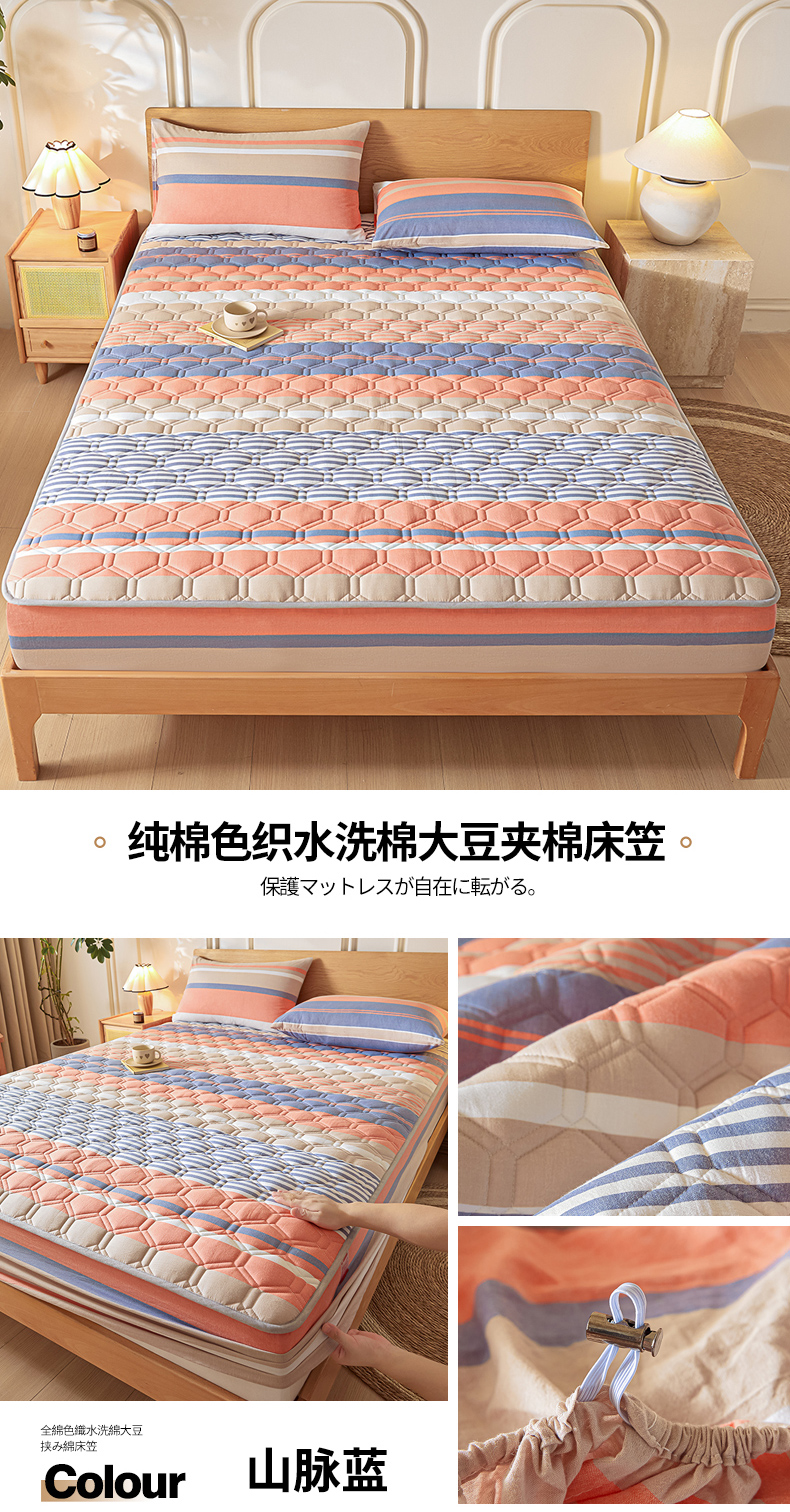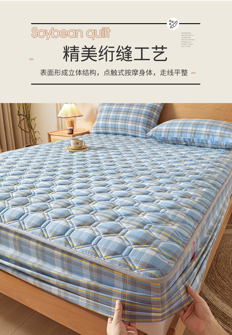 (总)雪云美2025新款A类全棉色织水洗棉夹棉床笠大豆床罩床垫保护套可定制