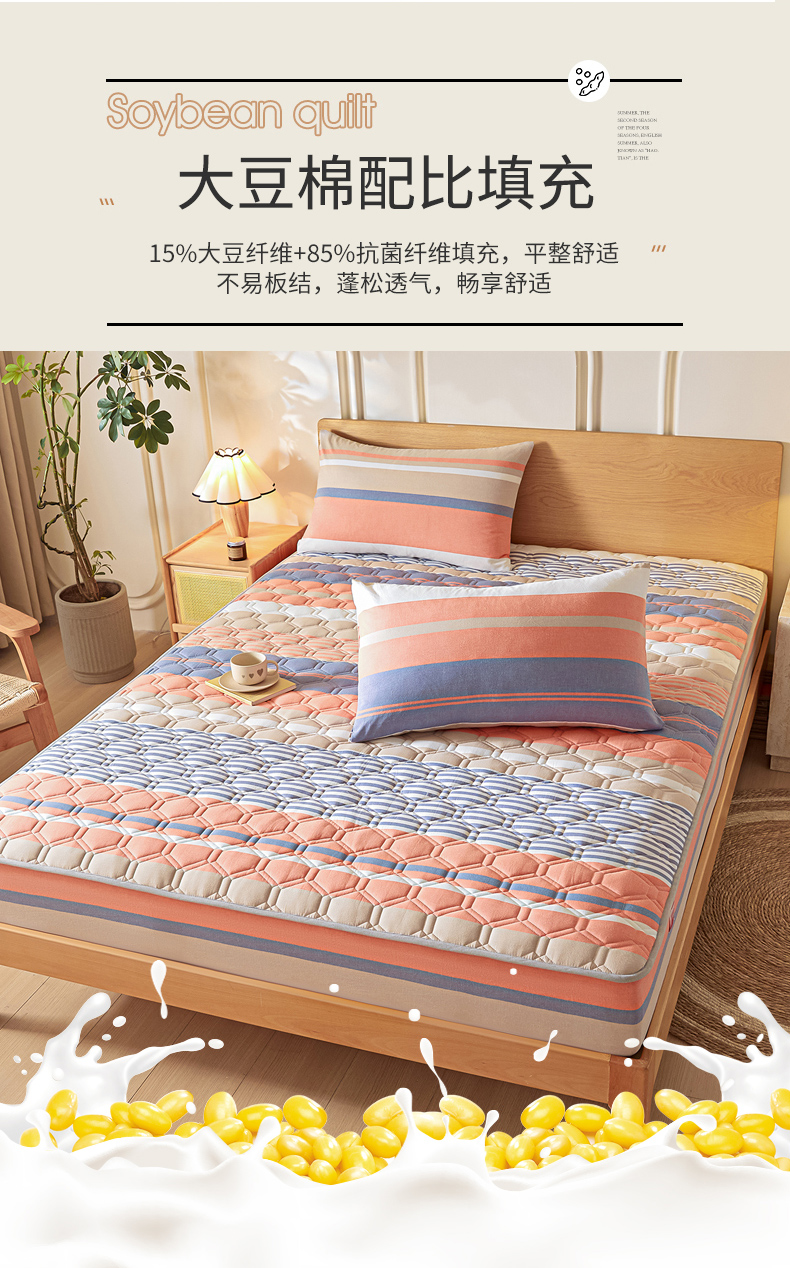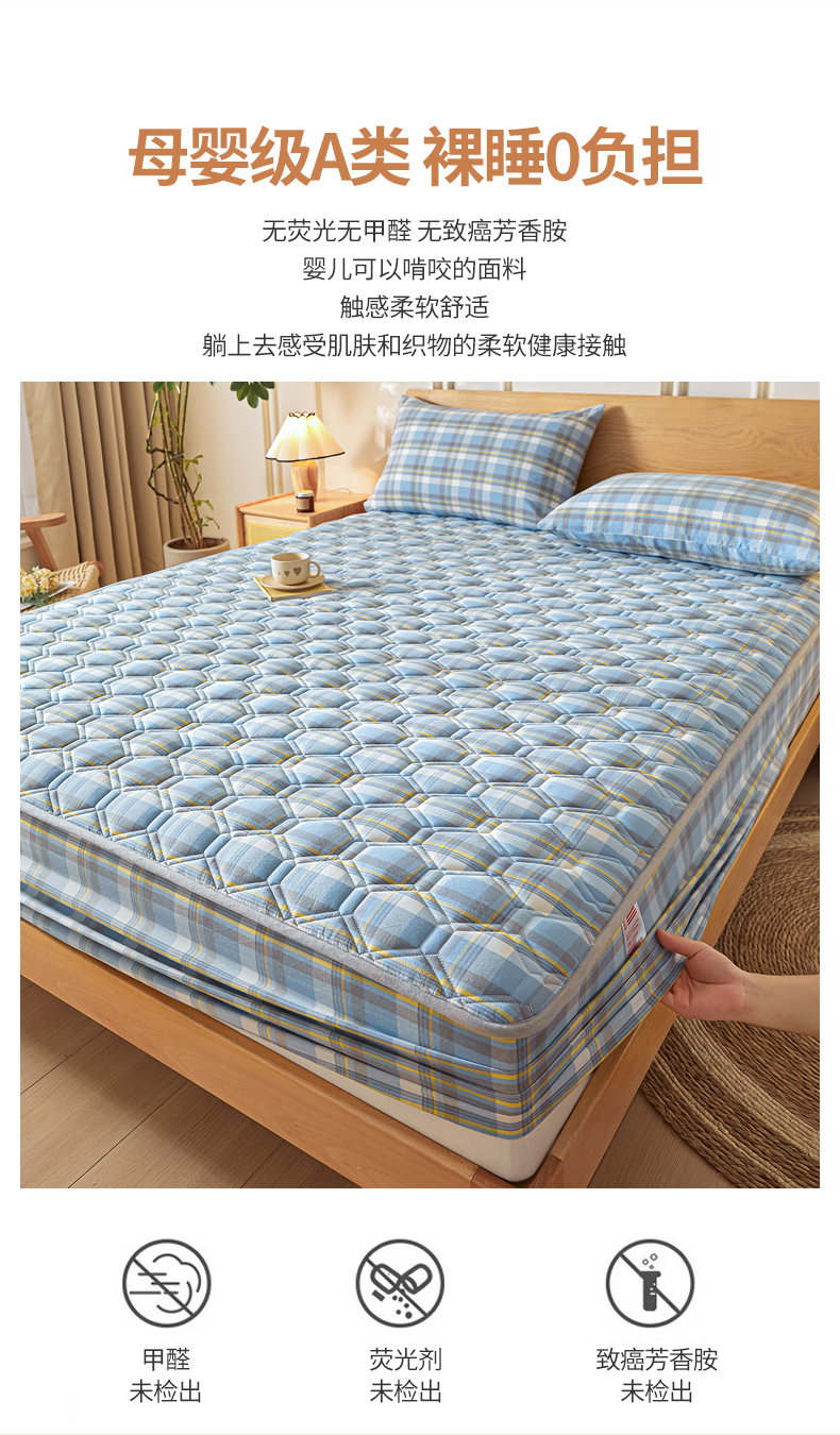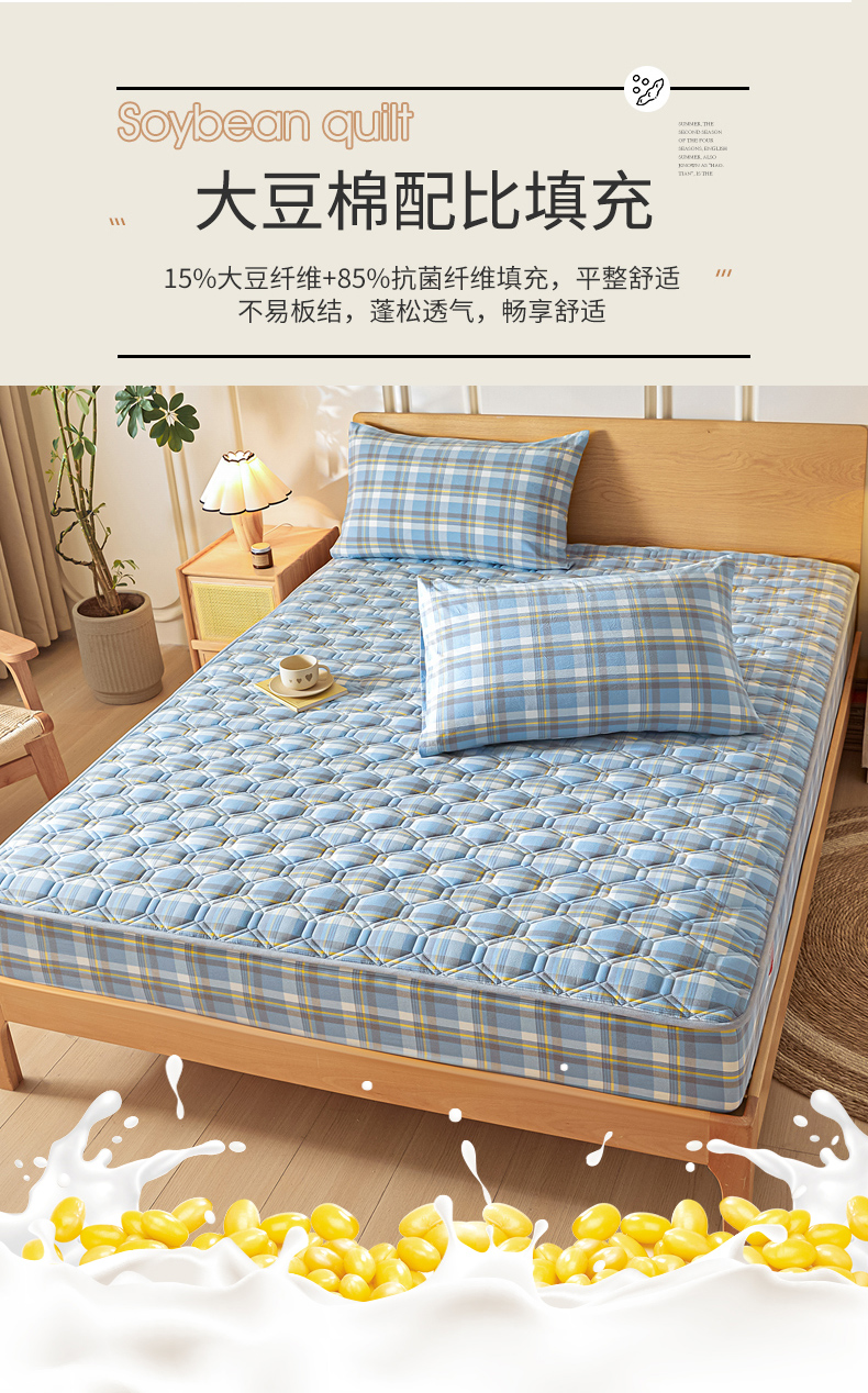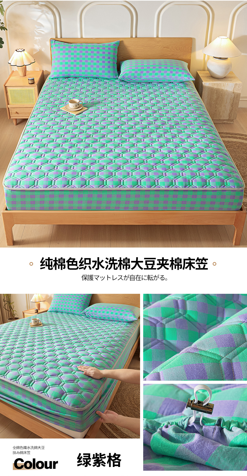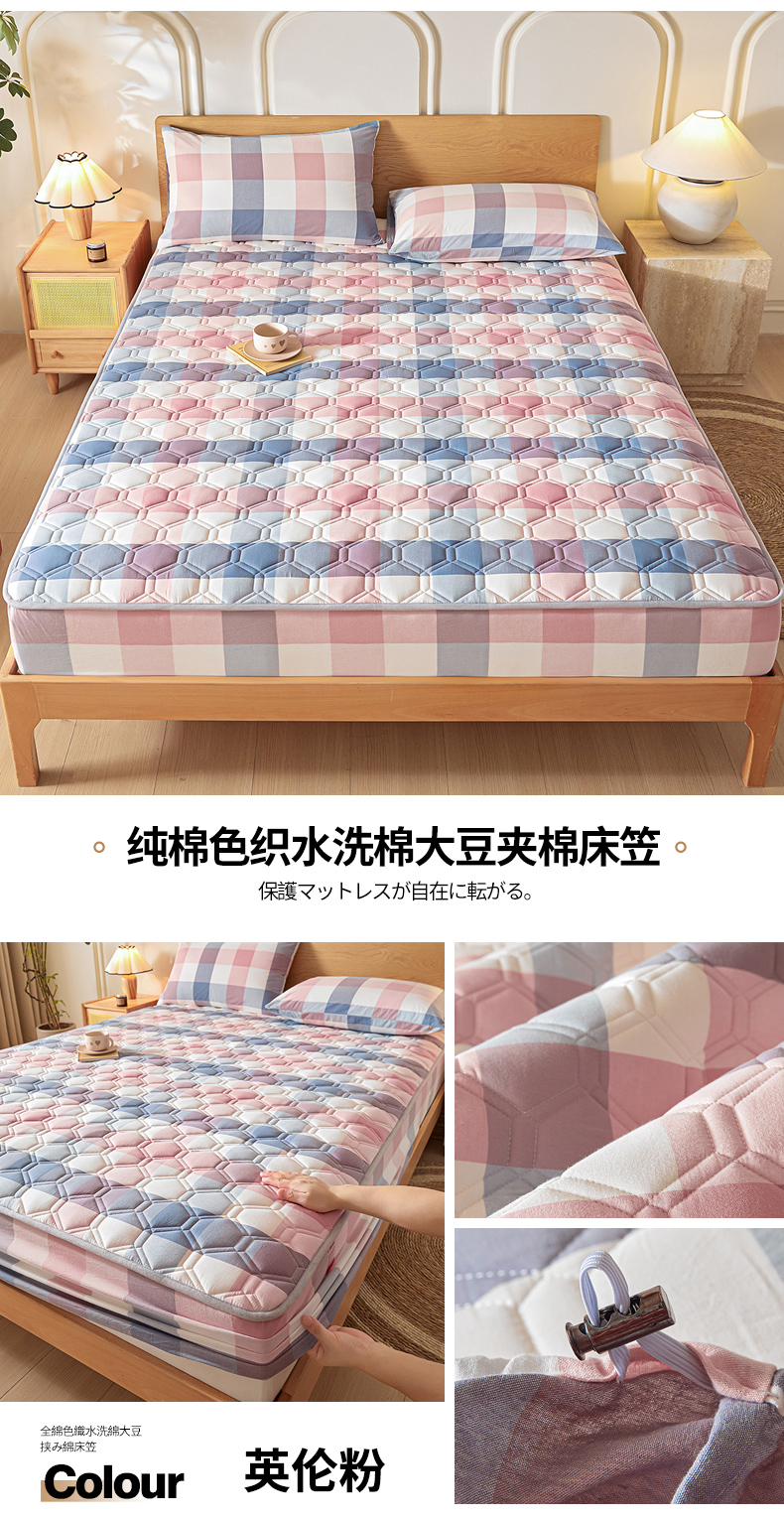 (总)雪云美2025新款A类全棉色织水洗棉夹棉床笠大豆床罩床垫保护套可定制